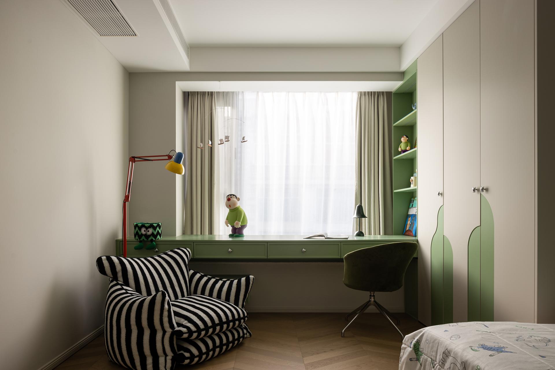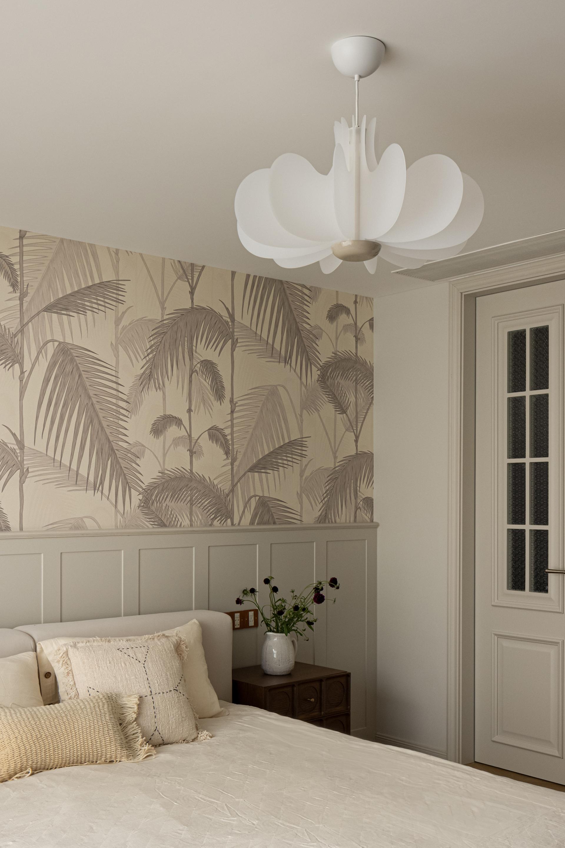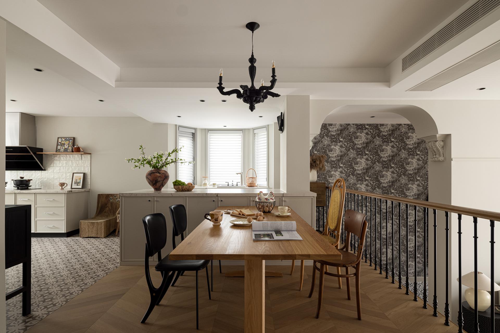 The design concept draws inspiration from "Holiday." In today's fast-paced urban lifestyle, people find themselves caught in a cycle of work and stress, perpetually yearning for their next escape - a chance to shed the weight of daily pressures and reconnect with their calm, unhurried selves. When a home transforms into a personal retreat that quietly answers the soul's longing for sanctuary, it becomes what we envision as a utopia within the real world. The split-level structure cleverly separates the living room from the dining area while creating a vaulted ceiling effect. Instead of a television, the living room features cozy textiles and decor, natural views framed by sheer curtains, and spaces thoughtfully designed for family interactions that celebrate the warmth of shared moments. The triple-aspect window design allows the fully open-concept kitchen-dining area to bask in the lingering natural glow even as the sun sets. Replacing conventional sideboards, the octagonal bay window of the house now exudes a unique charm. The designer has encased the structural column within a kitchen island, seamlessly blending aesthetics with functionality to create a crucial storage hub. Bottles and jars of various flavors, along with collectible cups and dishes, now occupy dedicated spaces – here, functionality itself embodies harmonious order and beauty. The master bedroom embraces a more pronounced getaway vibe compared to public areas. Muted tones soothe weary eyes while sunlight filters through sheer curtains, bathing the space in curated serenity. With no forced color contrasts or material juxtapositions, allowing every element to exist inorganic harmony. For the homeowners' two children of different ages, the designer guarded their little world through design. The boy's room burst with playful whimsy, while the girl's room features a crystal chandelier and castle-like vaulted ceilings that spark imagination. It is love that transforms a house into a home - carving out a hidden, beautiful utopia amidst the world's chaos, where living spaces become infused with a passion for life and an imaginative approach to living. Perhaps this is where the true meaning of design lies.