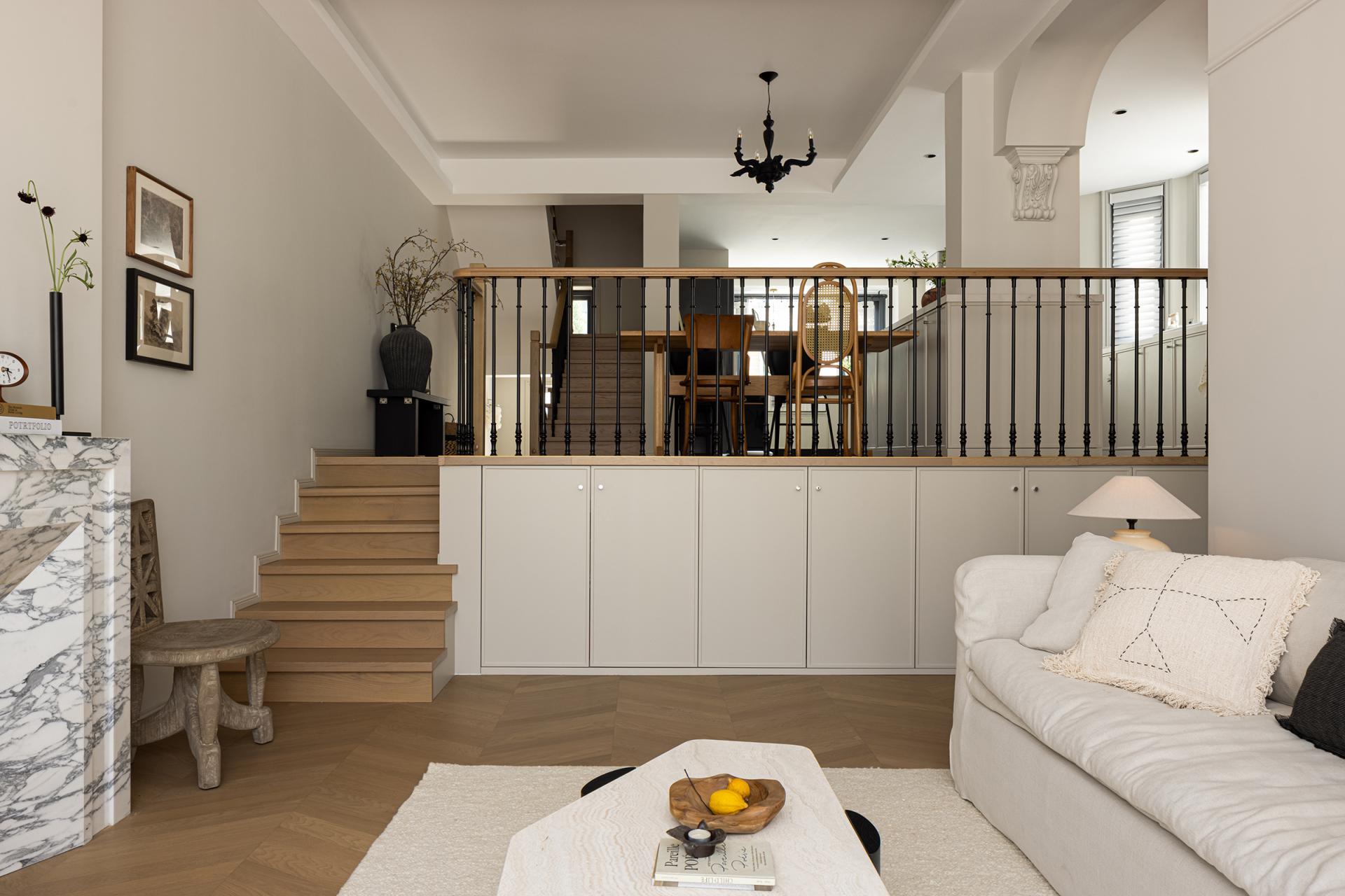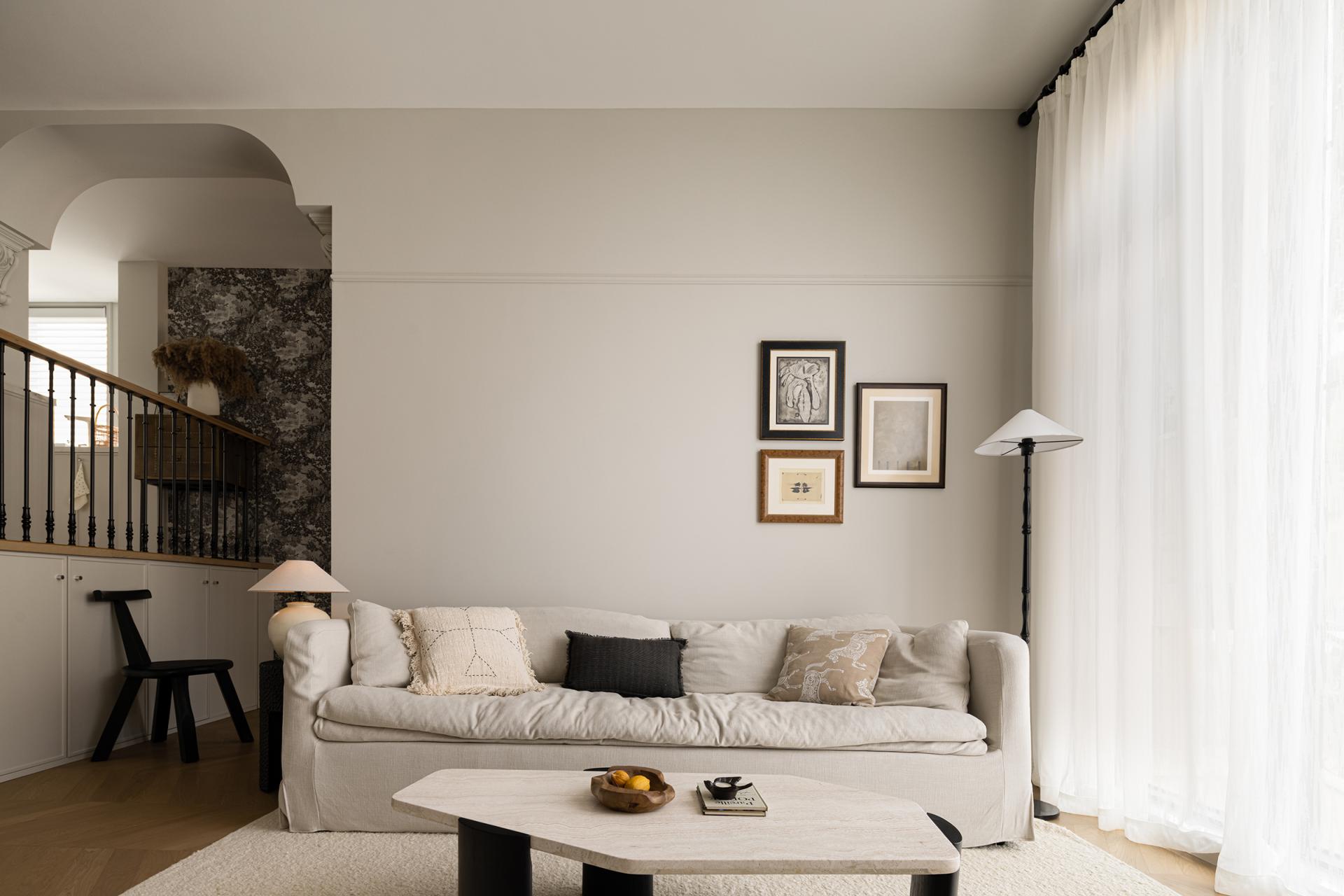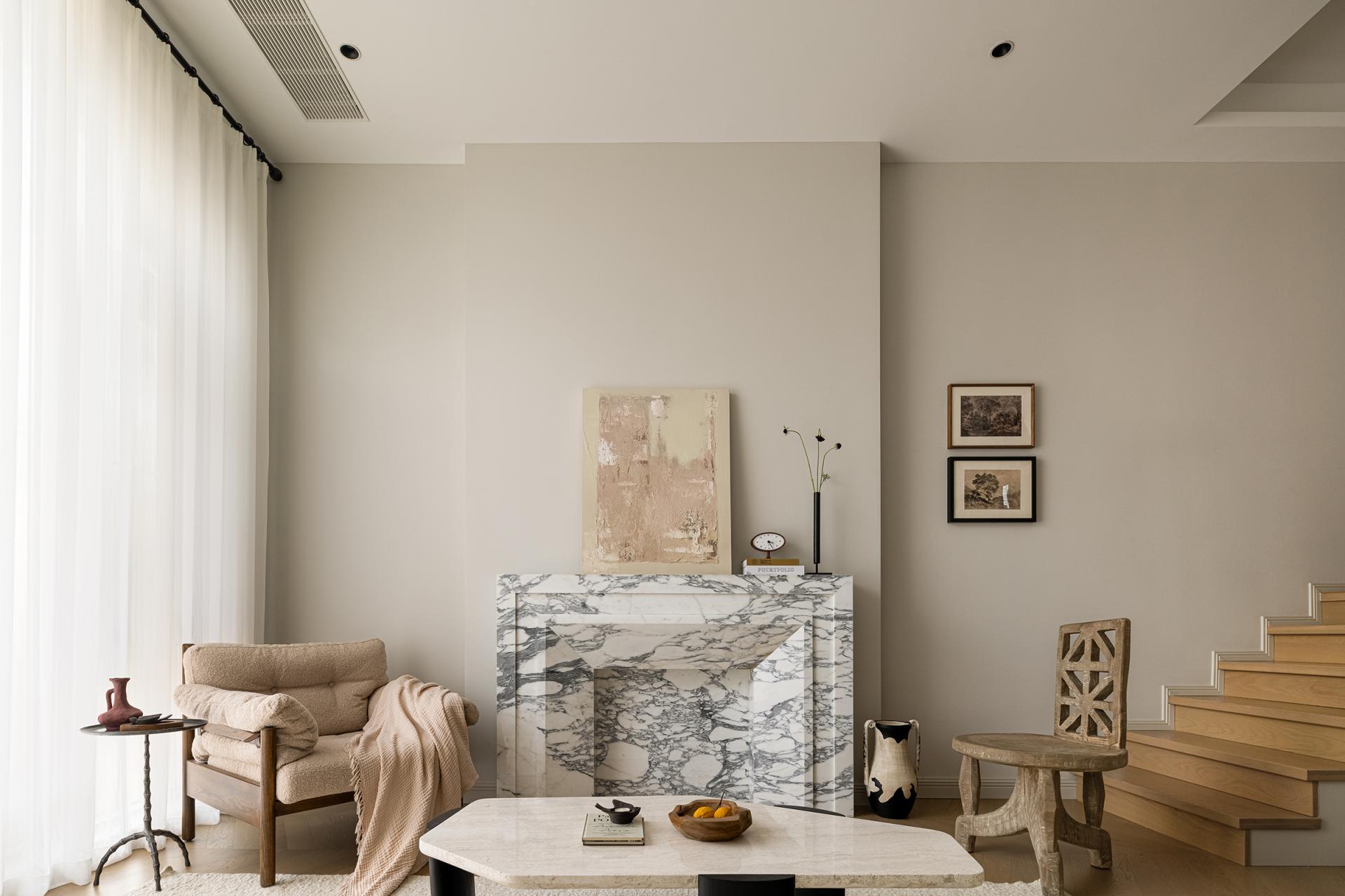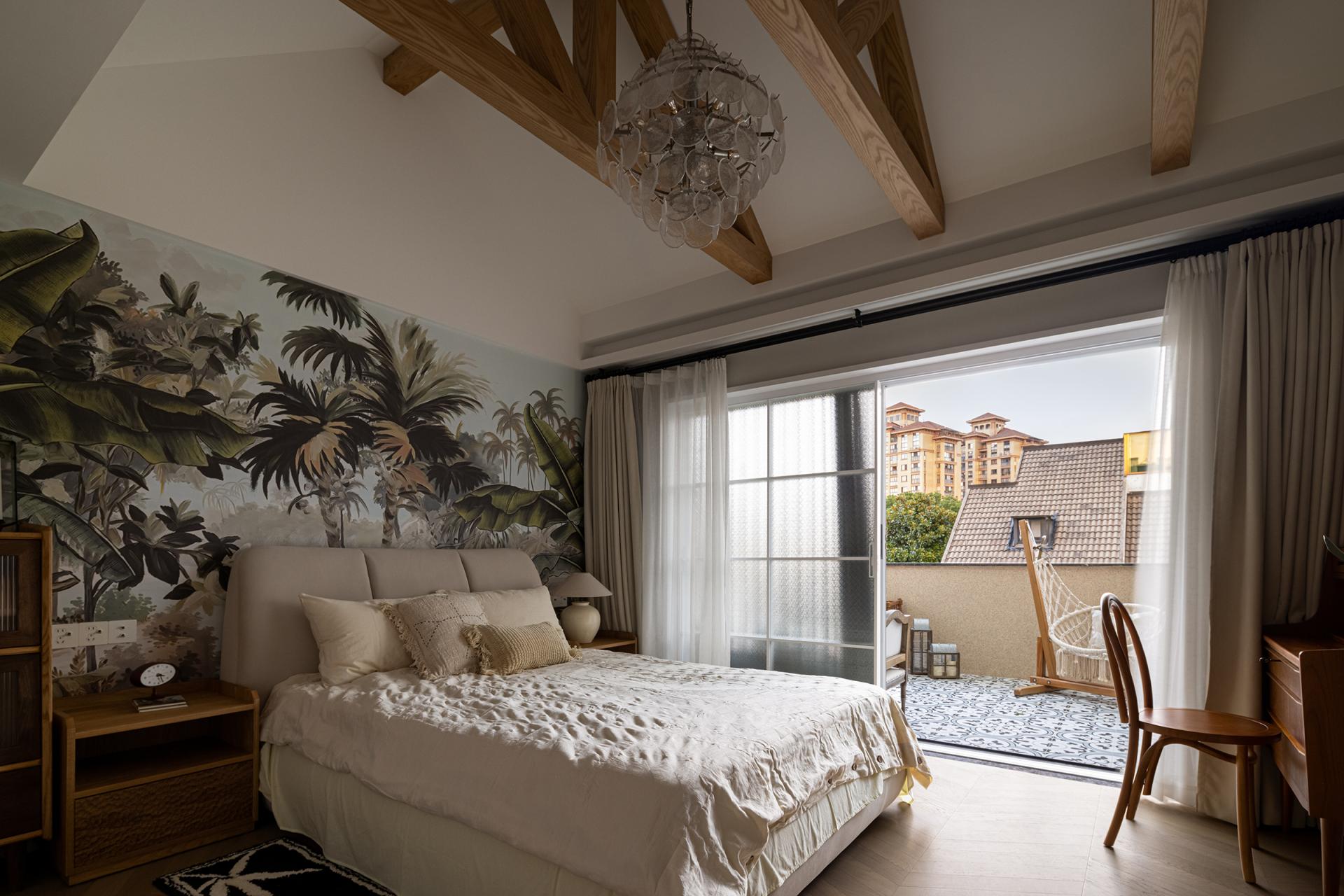 The design concept draws inspiration from "Holiday." In today's fast-paced urban lifestyle, people find themselves caught in a cycle of work and stress, perpetually yearning for their next escape - a chance to shed the weight of daily pressures and reconnect with their calm, unhurried selves. When a home transforms into a personal retreat that quietly answers the soul's longing for sanctuary, it becomes what we envision as a utopia within the real world. The split-level structure cleverly separates the living room from the dining area while creating a vaulted ceiling effect. Instead of a television, the living room features cozy textiles and decor, natural views framed by sheer curtains, and spaces thoughtfully designed for family interactions that celebrate the warmth of shared moments. The triple-aspect window design allows the fully open-concept kitchen-dining area to bask in the lingering natural glow even as the sun sets. Replacing conventional sideboards, the octagonal bay window of the house now exudes a unique charm. The designer has encased the structural column within a kitchen island, seamlessly blending aesthetics with functionality to create a crucial storage hub. Bottles and jars of various flavors, along with collectible cups and dishes, now occupy dedicated spaces – here, functionality itself embodies harmonious order and beauty. The master bedroom embraces a more pronounced getaway vibe compared to public areas. Muted tones soothe weary eyes while sunlight filters through sheer curtains, bathing the space in curated serenity. With no forced color contrasts or material juxtapositions, allowing every element to exist inorganic harmony. For the homeowners' two children of different ages, the designer guarded their little world through design. The boy's room burst with playful whimsy, while the girl's room features a crystal chandelier and castle-like vaulted ceilings that spark imagination. It is love that transforms a house into a home - carving out a hidden, beautiful utopia amidst the world's chaos, where living spaces become infused with a passion for life and an imaginative approach to living. Perhaps this is where the true meaning of design lies.