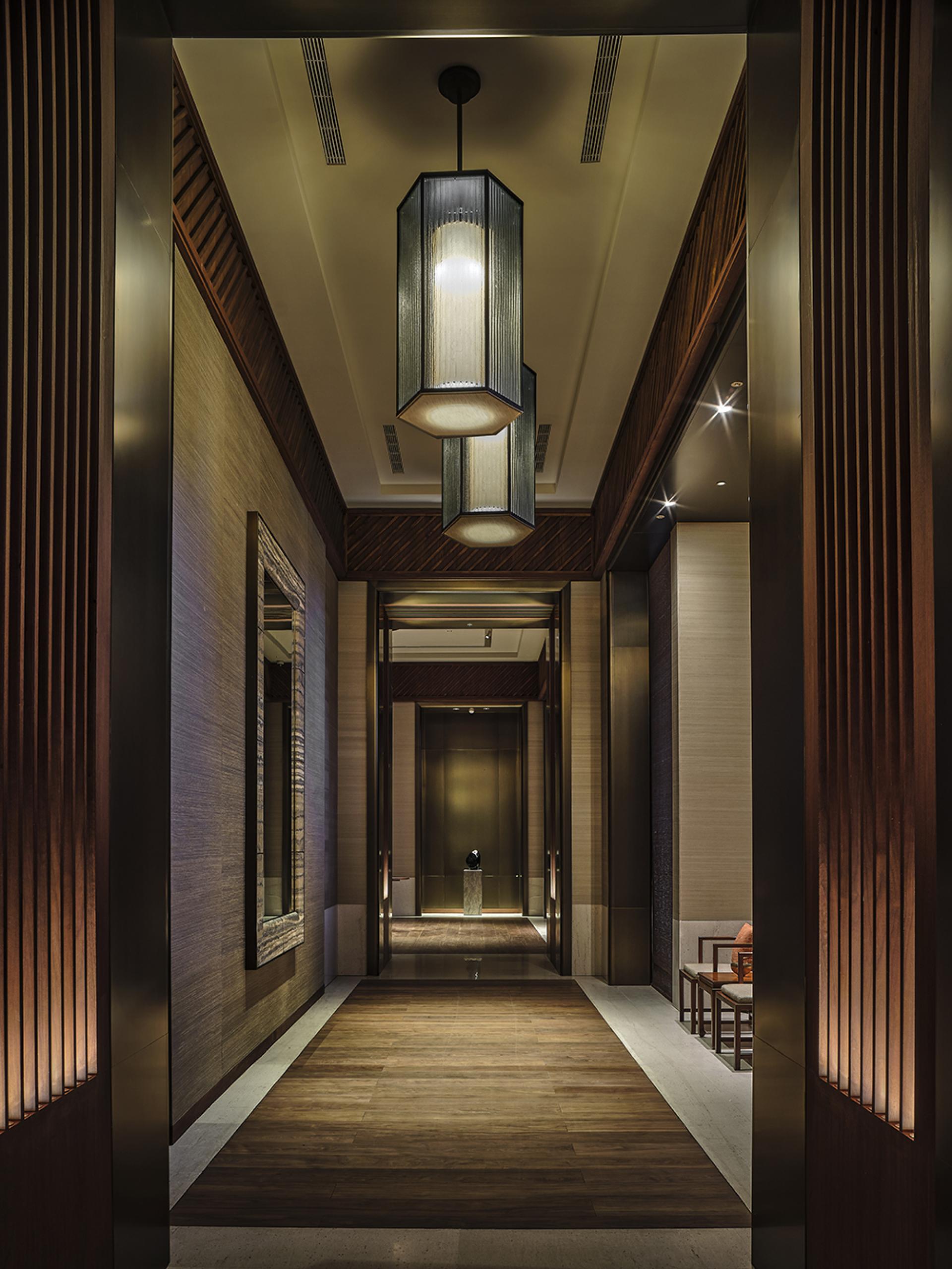 On the second floor, colorful paintings and decorative pendants depict a luxurious journey to the banquet hall. By applying warmer light and using shadow as a medium in the elevator lobby, gallery and banquet hall, a sensual and pampering lighting atmosphere is created.