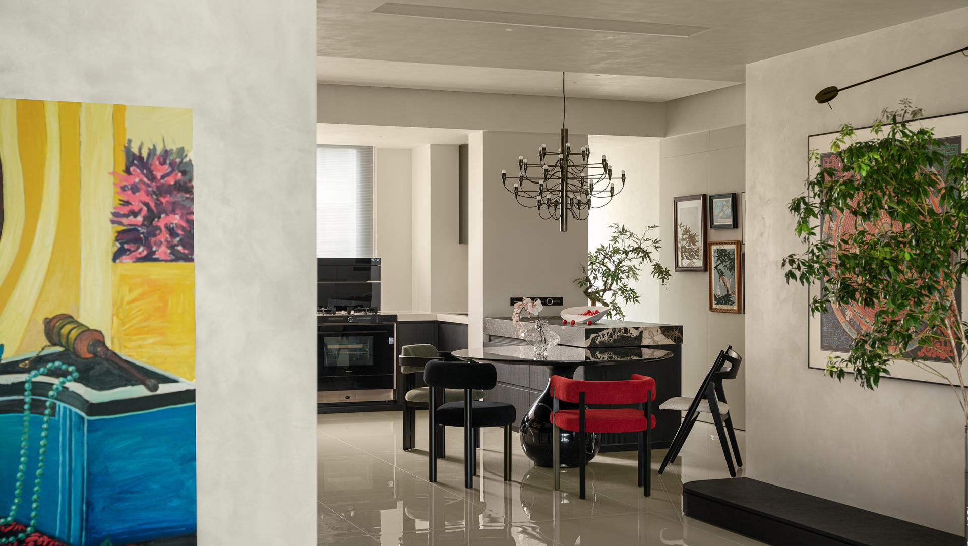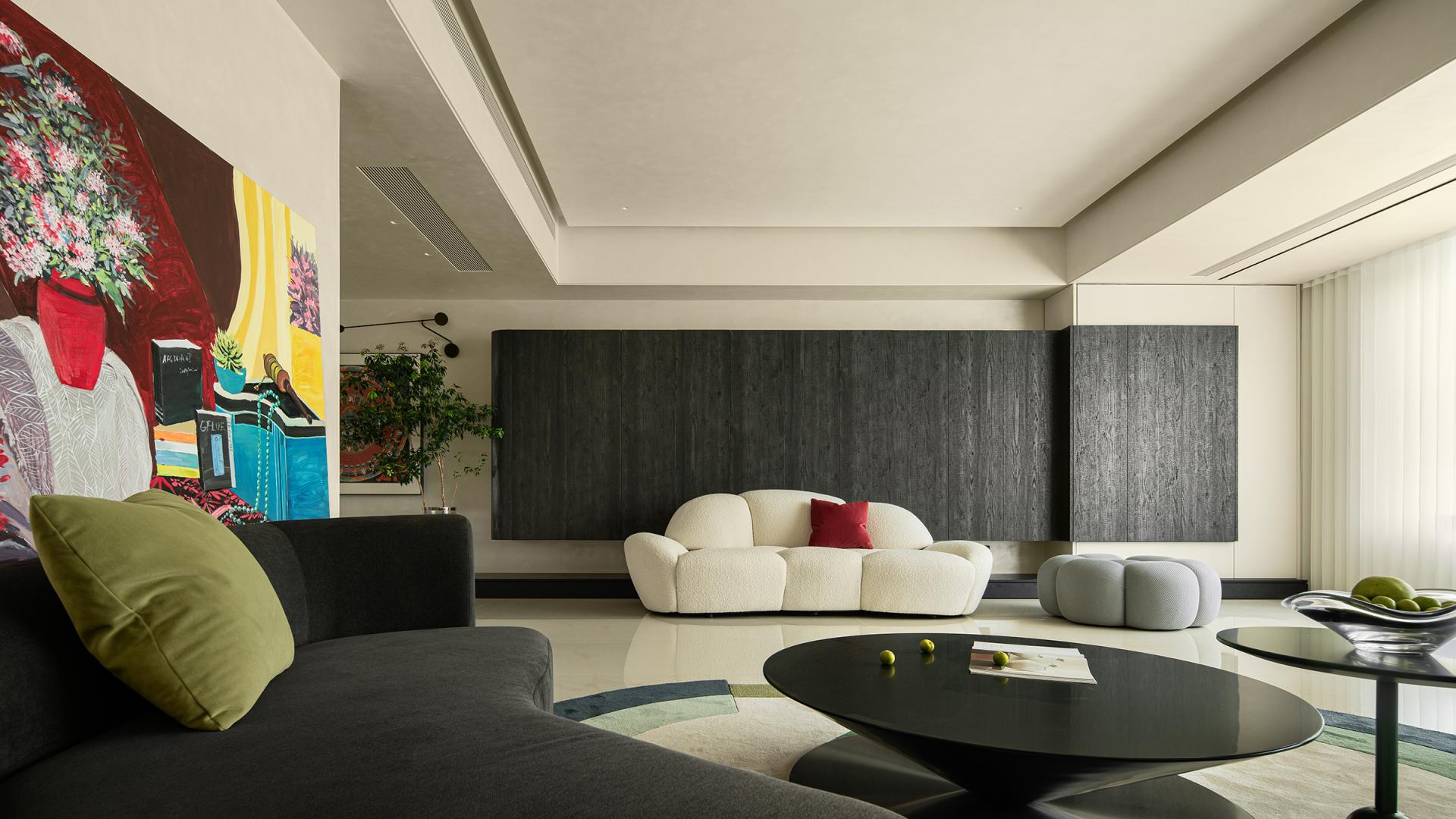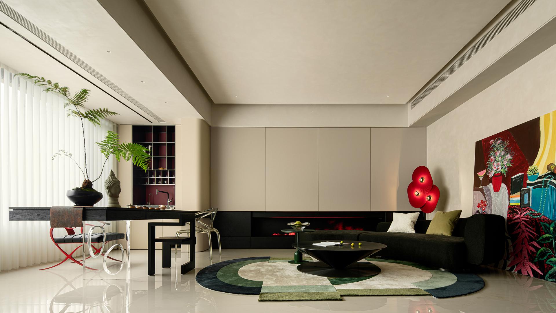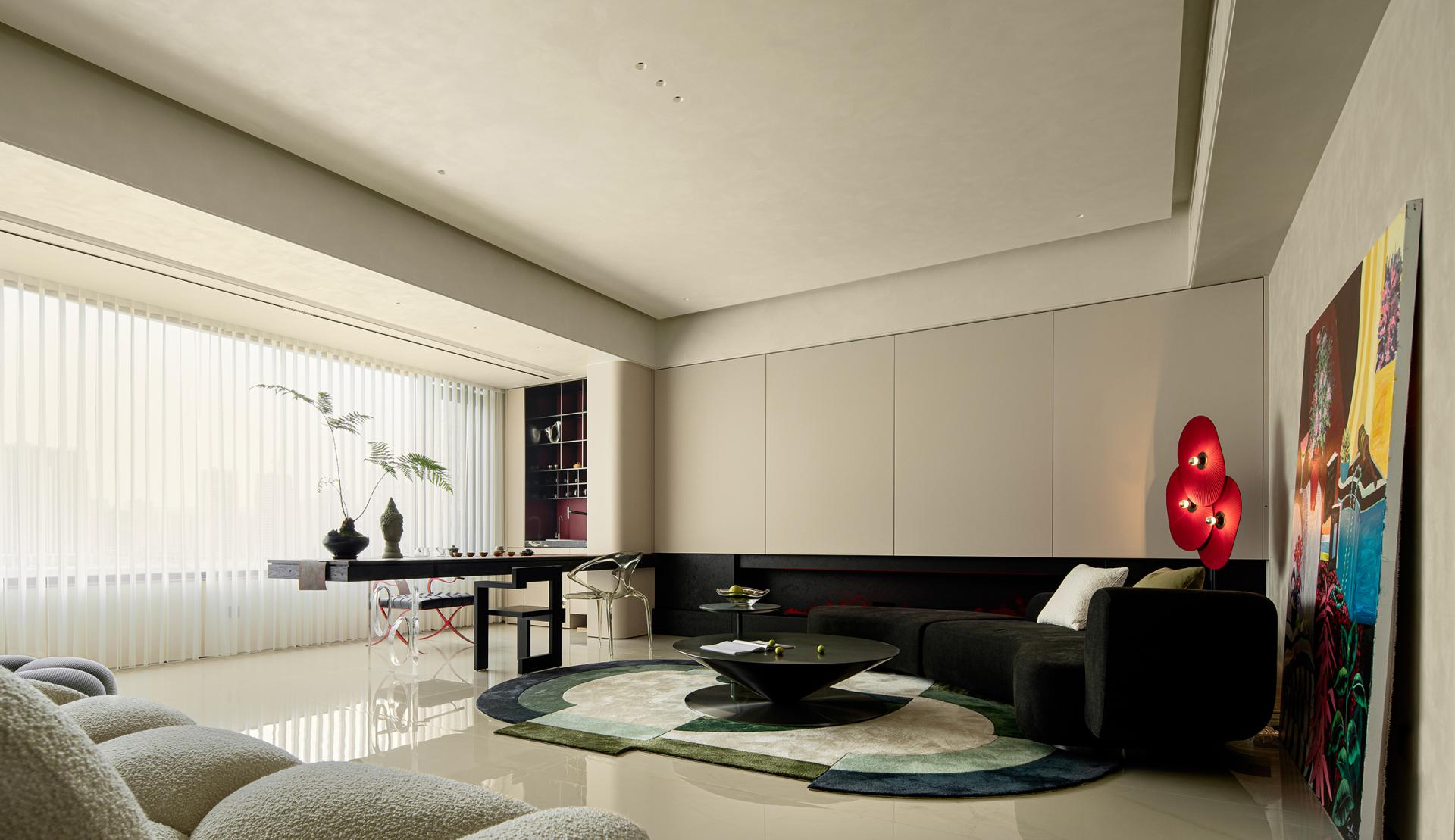 De-emphasizing the living room doesn’t mean eliminating it entirely; rather, it involves breaking away from the traditional layout of “sofa + coffee table + TV” to unlock more possibilities for the space. This approach better aligns with the client’s preferences, habits, and family interactions. For instance, if the client enjoys tea, the tea table should be placed in the prime viewing spot. If daily TV watching isn’t a priority, there’s no need to display a television or design a TV wall. By examining the space from the homeowner’s perspective, the design can focus solely on meeting their needs without trying to please others. It embodies a bold sense of autonomy, as in, “This is my house, and I’m in charge.” The dining area is particularly reflective of the client’s personal aesthetics and preferences, characterized by its colorful and organic nature. For the kitchen and dining space, a Bvlgari Black color scheme was chosen, with a rectangular island counter paired with a round dining table. This interplay of shapes creates a more harmonious and sophisticated atmosphere, where every meal throughout the seasons is treated with care. The female client takes great pleasure in crafting delicate pastries in this space and sharing them with family and friends. The space is accentuated with artistic chandeliers and wall art, evoking a sense of openness and vitality. Dead spaces in the original architecture were transformed into indoor landscaping elements, adding depth and layers to the overall design. The master suite embodies the ultimate in minimalism, with black as the dominant color. The aesthetic blend of old and new creates a sustainable, natural modernity. This comfortable and relaxing space offers the client a sense of complete envelopment and security. Considering the width of the hallway in the space, we opted not to place a separate lounge chair. Instead, we designed a bed that includes a lying area. This allows the client to have a dedicated spot to recline, apart from the bed itself.