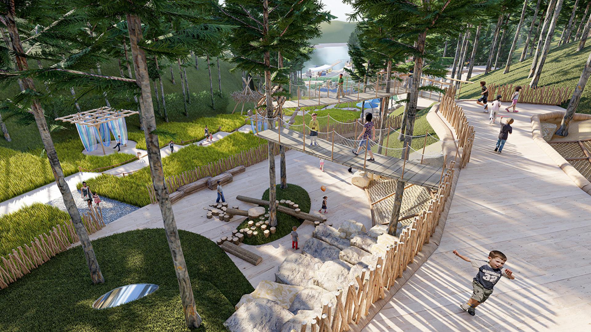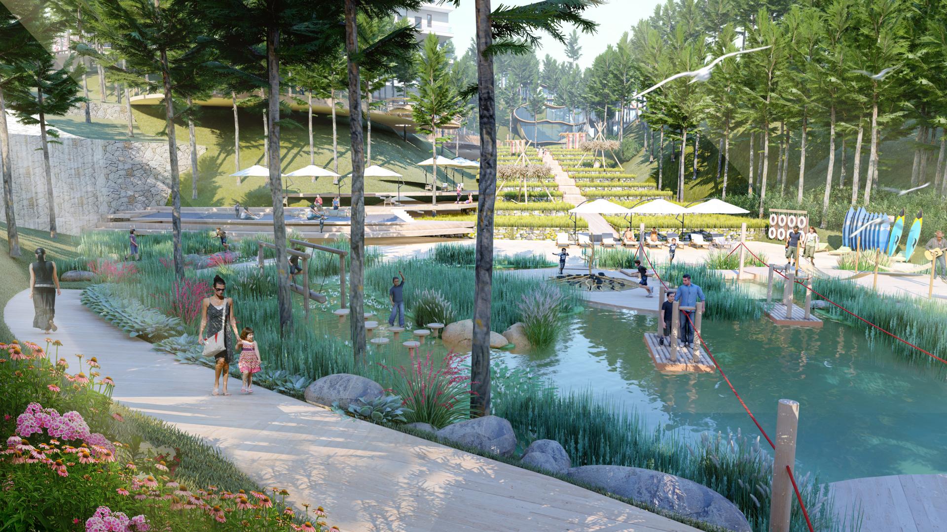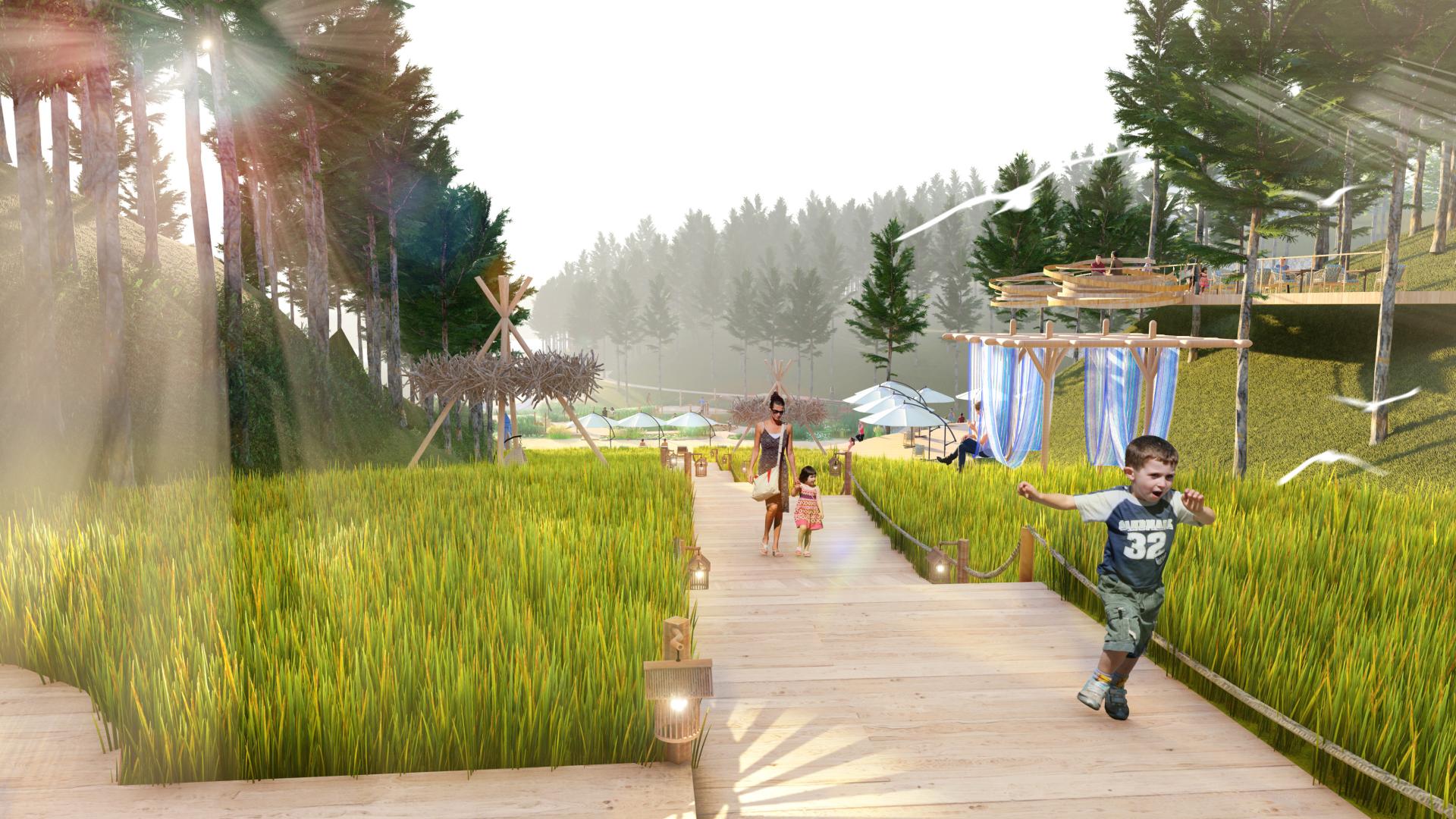 Club Med Joyview Tianding Lake Resort centers its design around the theme of "Joyful Coexistence with Nature," seamlessly blending the brand's ethos with the unique natural resources of Tianding Lake. The resort integrates three main elements—pine forests, rice terraces, and the lake—creating an immersive, nature-inspired experience. In the pine forest area, treehouse-style accommodations and canopy observation platforms bring the breathtaking views of the lake and mountains into the living spaces, enhancing guests' connection with nature. The rice terrace features cascading waterfalls and terraced landscapes, preserving the She ethnic farming culture while serving as an ecological education space. Along the lakefront, multi-level activity zones, tidal pools, and artificial wetlands address seasonal water fluctuations, offering dynamic water-based and interactive experiences that foster deeper environmental engagement.