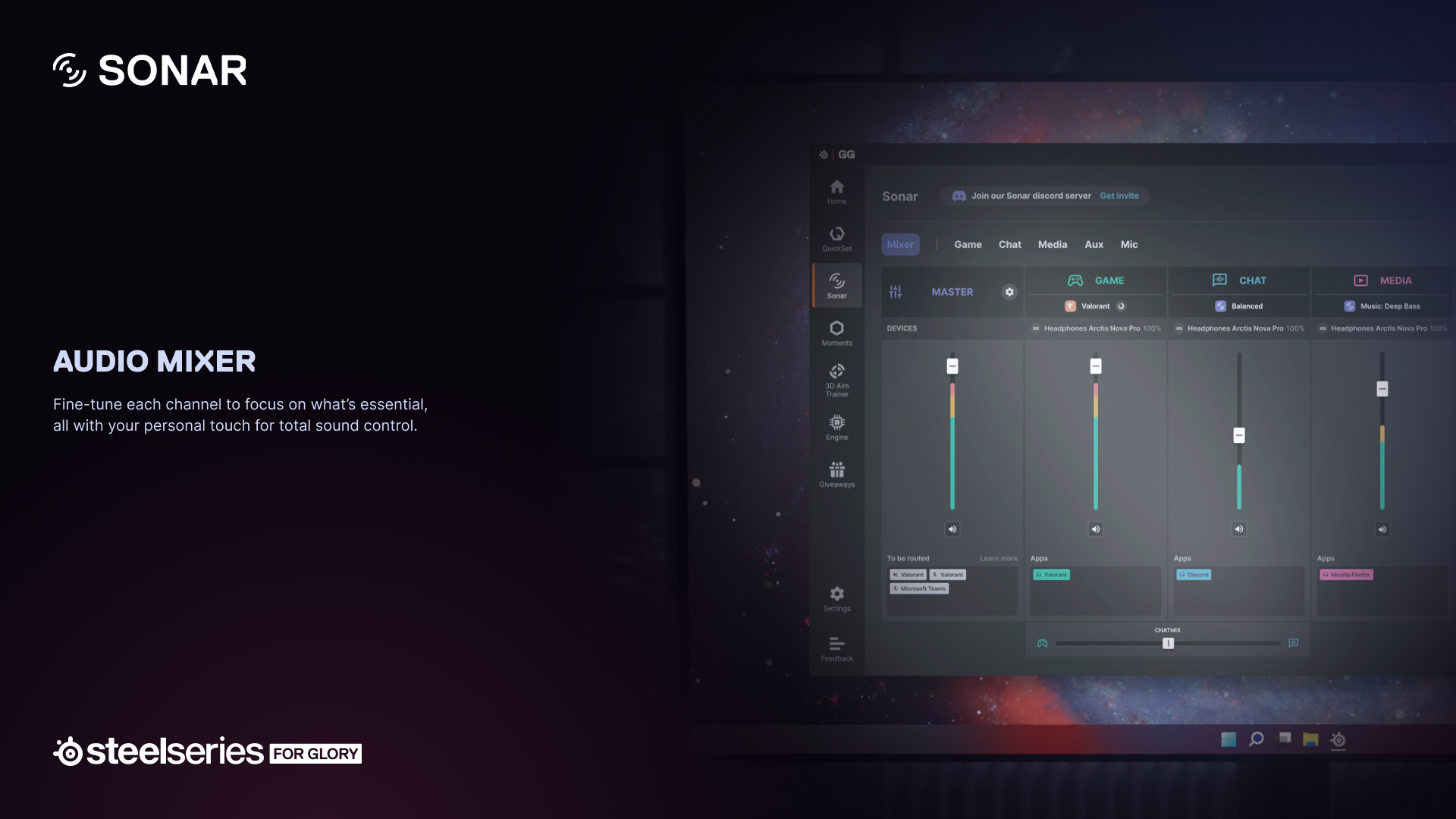 Sonar by SteelSeries transforms your gaming audio experience with powerful tools and cutting-edge customization. Designed for gamers seeking studio-level sound, Sonar delivers precision control over every audio detail, ensuring you hear every footstep, every sound cue, and every word with crystal-clear clarity.