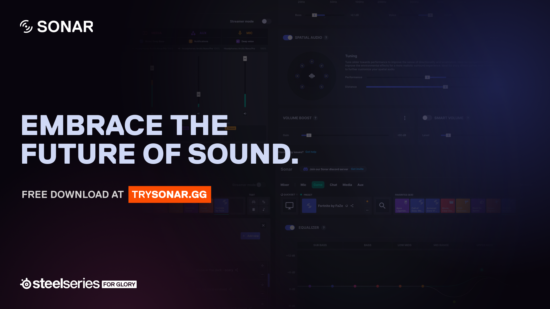 Best of all, Sonar works seamlessly with all audio devices, not just SteelSeries products. Because every gamer deserves the best sound experience. Step into a new world of audio with Sonar and hear what others miss.