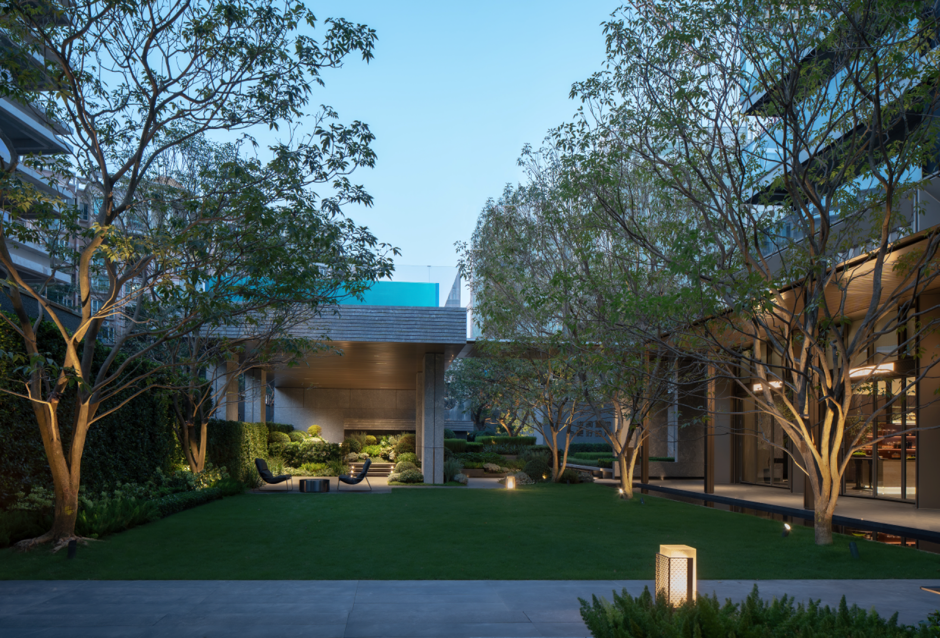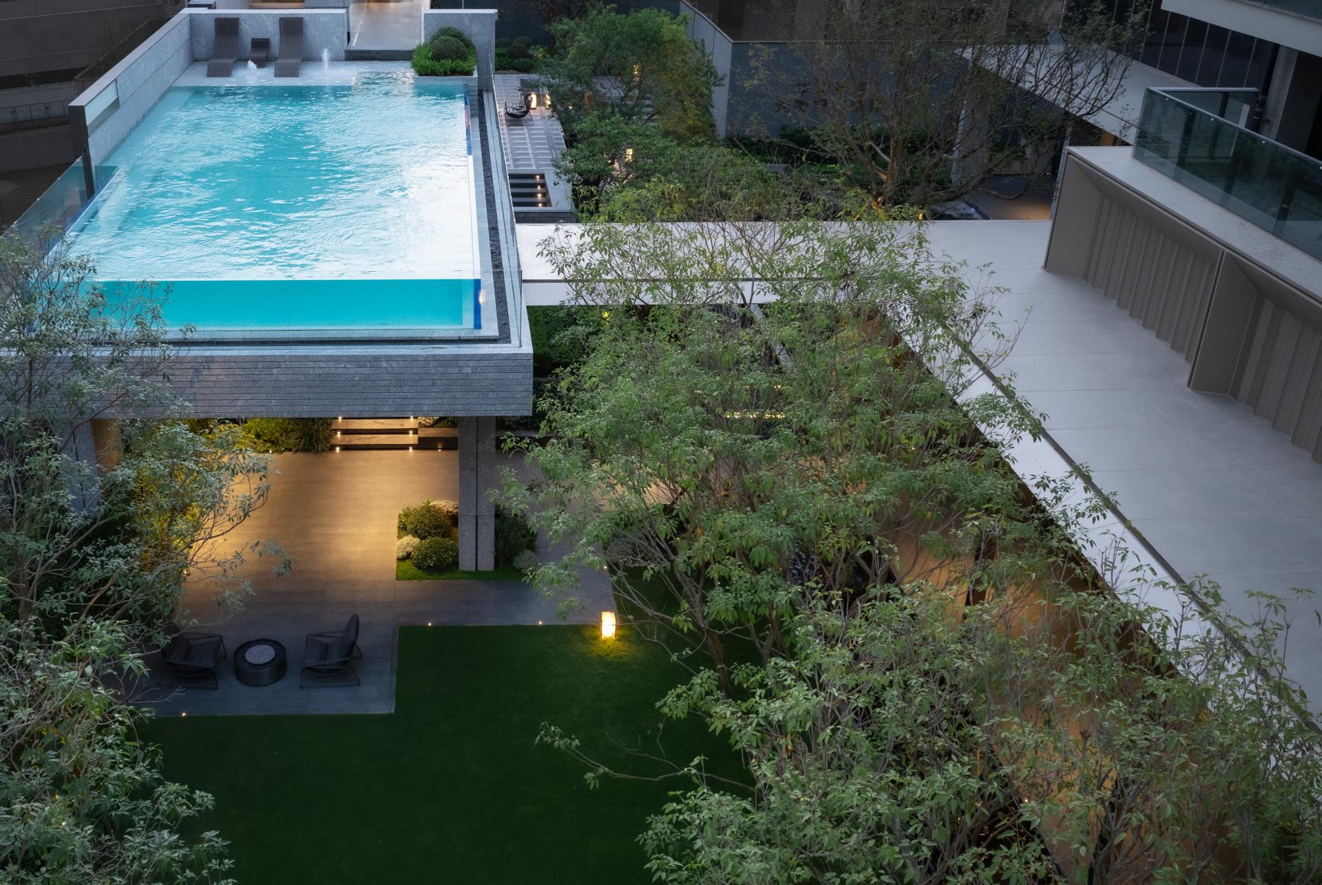 东莞旗峰润府项目位于南城核心区域,背靠黄旗山,设计以“简而不凡,奢而不俗”为理念,融合自然与岭南文化,打造具有在地性与现代感的高端居住空间。通过“山境浮亭”“层林沐光”等场景设计,营造出立体化的山林之境。项目借鉴可园的高低错落布局,打造空中楼阁与漂浮亭台,形成四维立体花园,实现自然与人文的共生。以光影、灵动、沉浸等元素营造空间的震撼与希望,通过平台、挑台、飞瀑、亭廊等元素,构建出既延续自然属性又承载文化内涵的森居雅院。整体设计将东莞在地文化转化为现代空间艺术语言,为新一代东莞人定制出隐于闹市的山居园林,实现功能与美学、历史与文化的完美融合。
