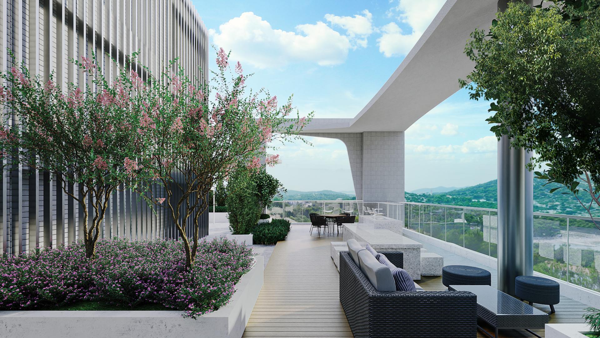 The exterior is based on White Minimalism, where smooth curves lend a sense of lightness and elegance. A lightweight structural design minimizes the burden of earthquakes on the building, with expansive windows optimize ventilation and natural lighting, allowing residents to embrace the surrounding landscape.