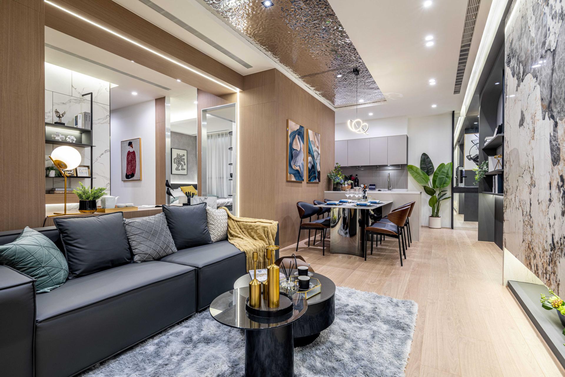 The interior design adopts a modern style of minimalist luxury, skillfully blending fashion with a sense of ceremony to create a low-key and comfortable living space.