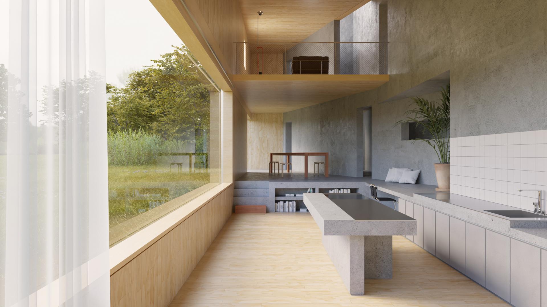 As natural light pours in, the materials used—concrete and wood—create a harmonious blend of heaviness and lightness, openness and separation. This interplay contributes to a cohesive architectural experience, with the interconnected spaces fostering a sense of mutual dependence and culminating in a unified volume.