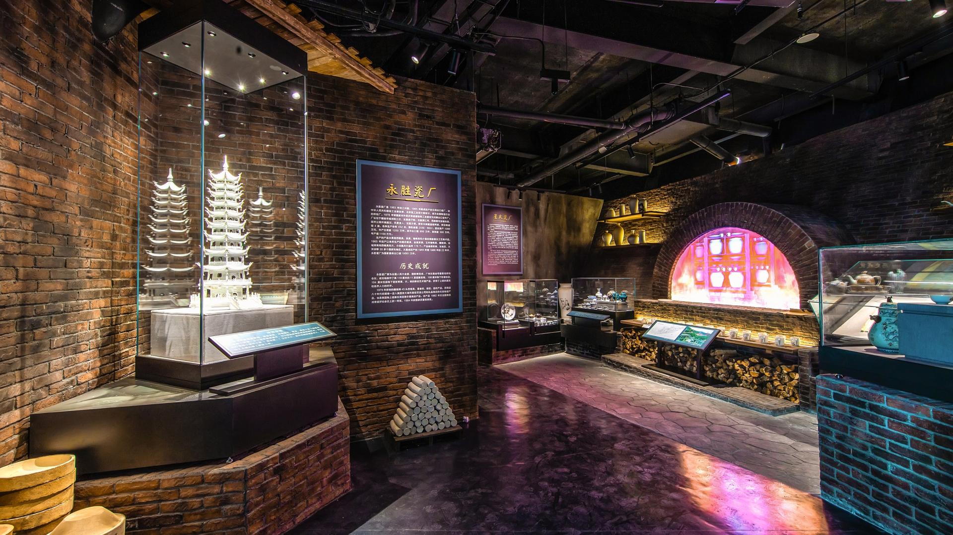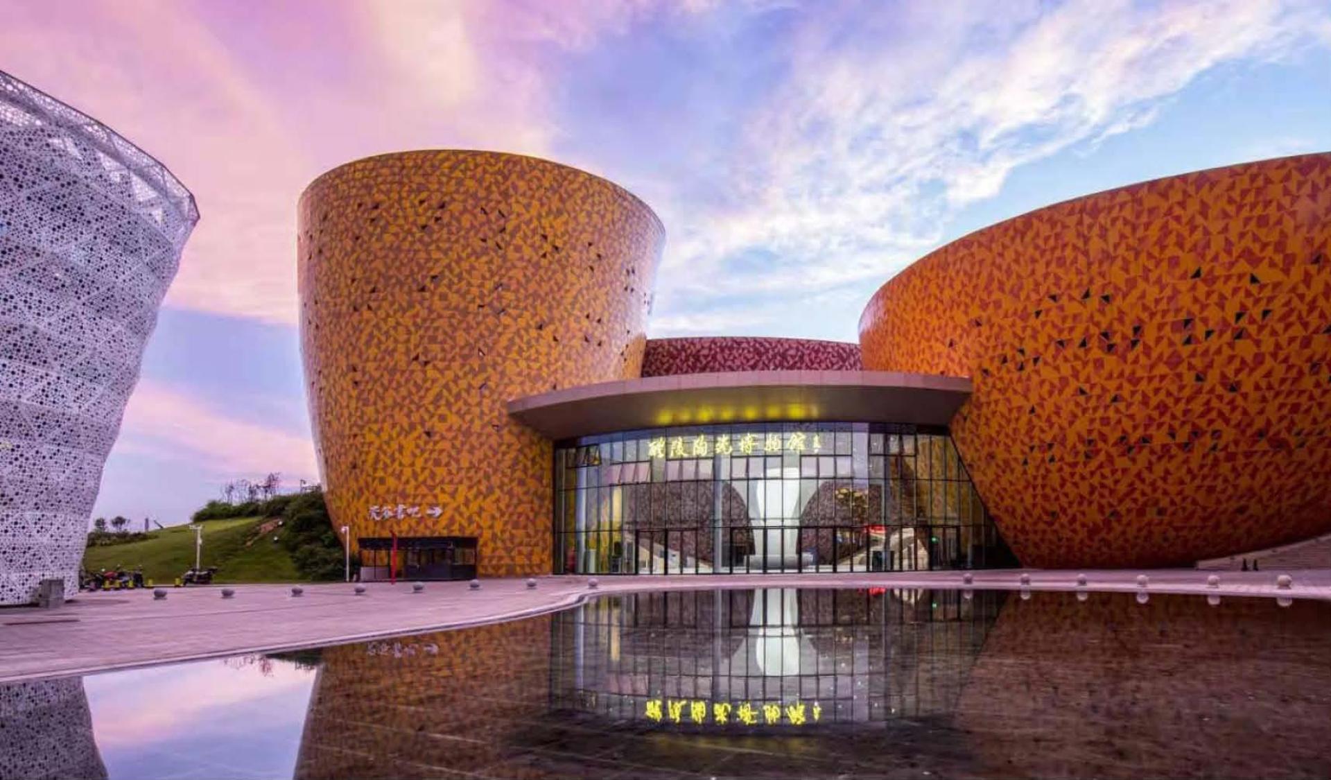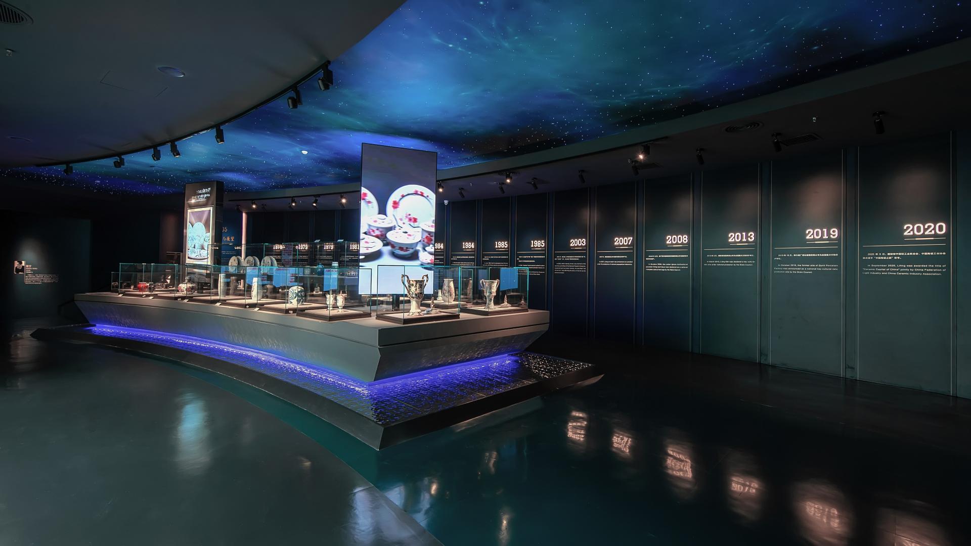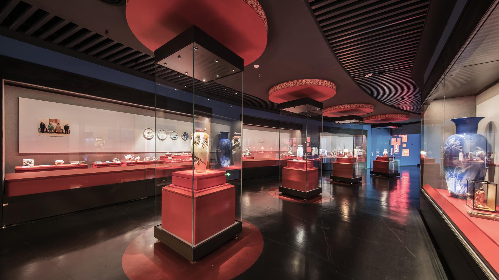 In terms of architectural space design, a new combined lobby for the three museums has been added to integrate the originally independent spaces such as the Ceramic History Museum, the World Ceramic Culture Museum, the Famous Historical and Cultural City Museum and the podium building, forming a ceramic museum with the lobby as the evacuation and connection space. The building structure is optimized, and the representative modeling element “flat bean double bird phoenix tail zun” of Lǐlíng underglaze polychrome is extracted to create a column-free space, ensuring the agility of the lobby and reflecting the theme adaptability. The history hall displays the development of Lǐlíng porcelain industry from prehistory to the early Qing Dynasty, focusing on presenting the brilliant chapter in the late Qing Dynasty and the early Republic of China, such as the establishment of Hunan Porcelain School and the creation of underglaze polychrome porcelain. The prelude hall starts with bas-relief, round relief combined with LED screen display, and also presents round sculptures of Xiong Xiling and the scene restoration of Weishan kiln site. The contemporary hall shows the development process of Lǐlíng underglaze polychrome after the founding of New China and the brilliance of the “national porcelain” road, using forms such as streaming media walls to present achievements at different stages. The tail hall takes “Lǐlíng Ceramics, Sailing the World” as its theme, and the multimedia sail device symbolizes going global. The newly-built museum ranks among the top three in the country in terms of exhibition area, grade and quantity of exhibits among ceramic-themed museums. It is Lǐlín’s cultural business card and helps promote the development of the ceramic industry.