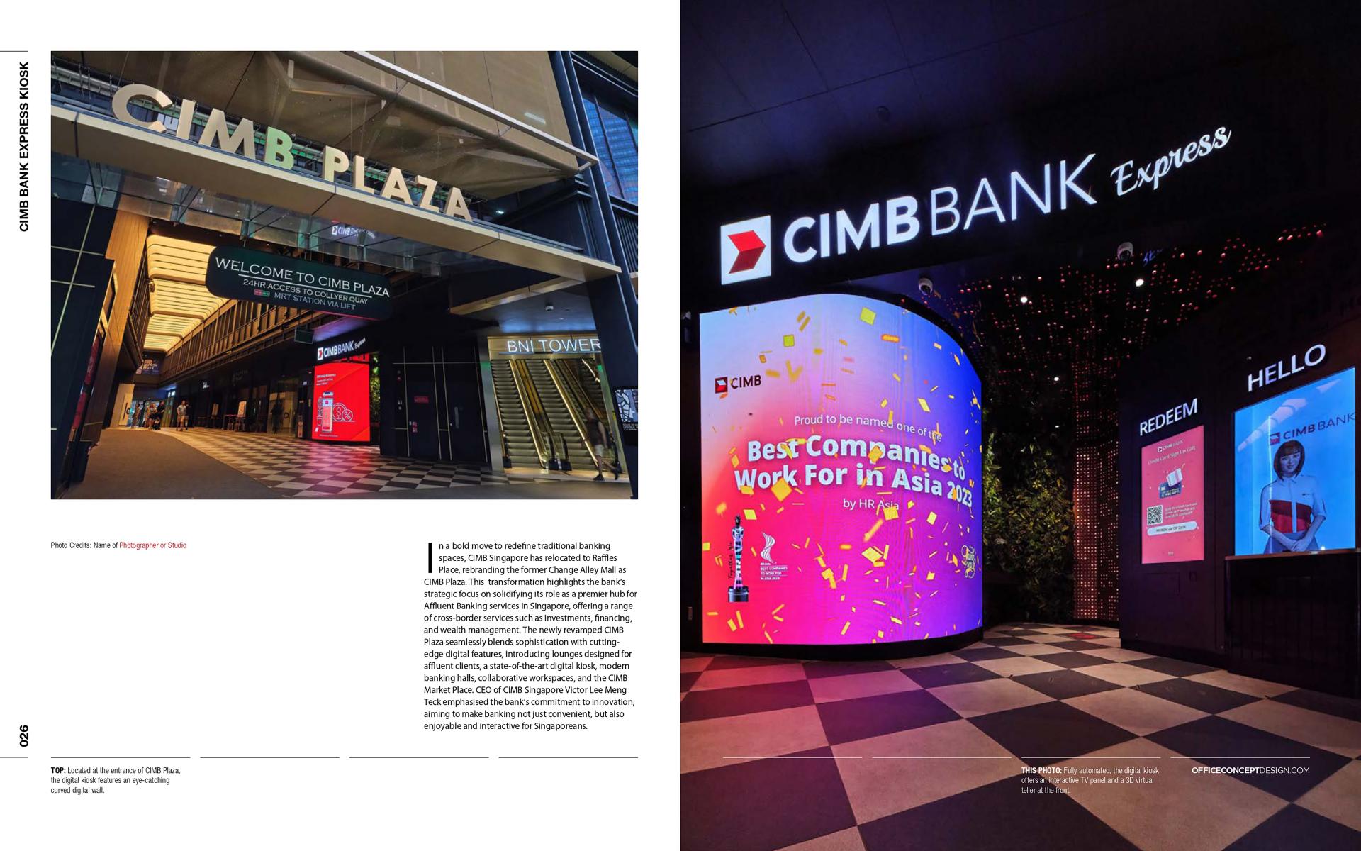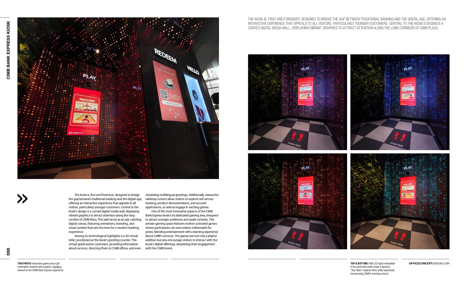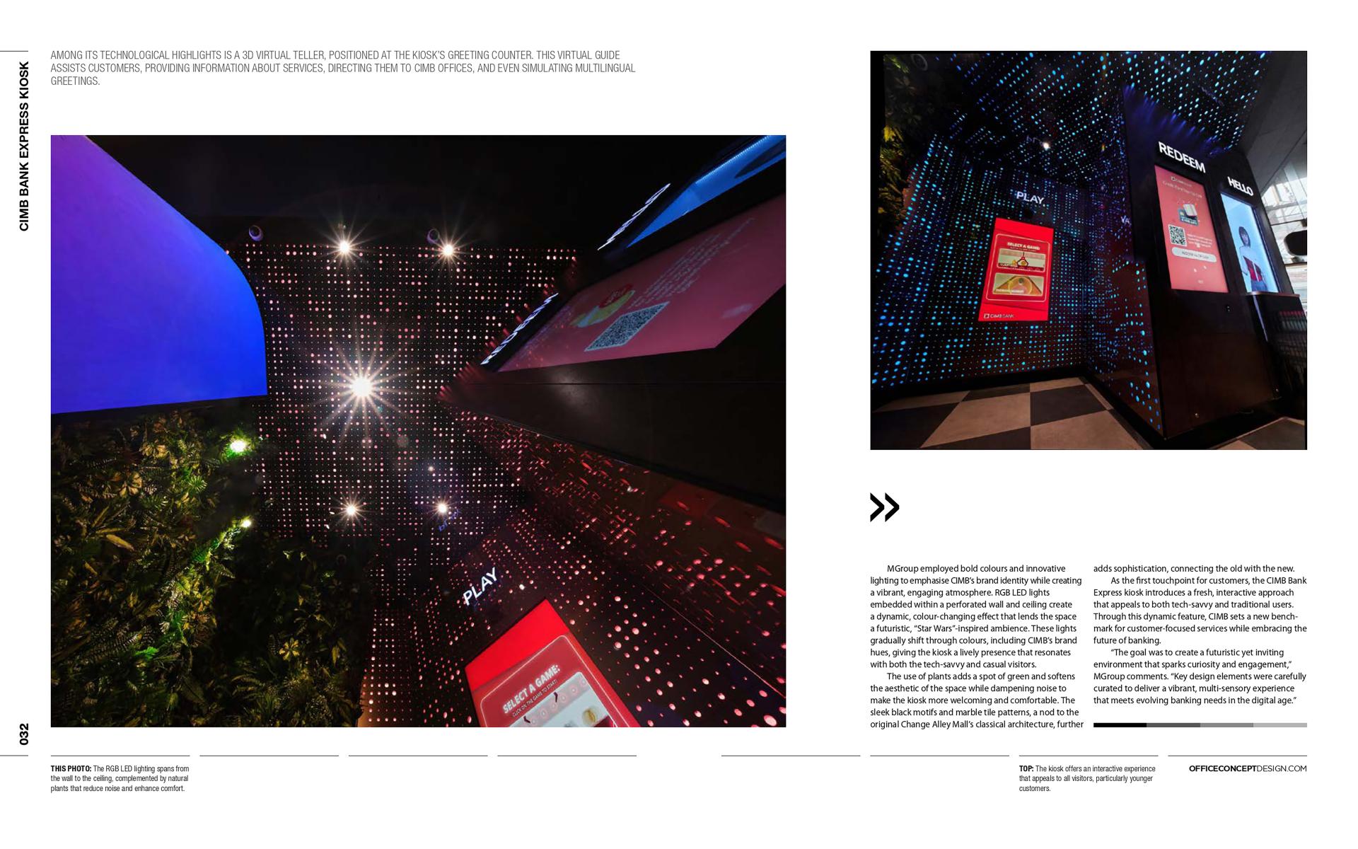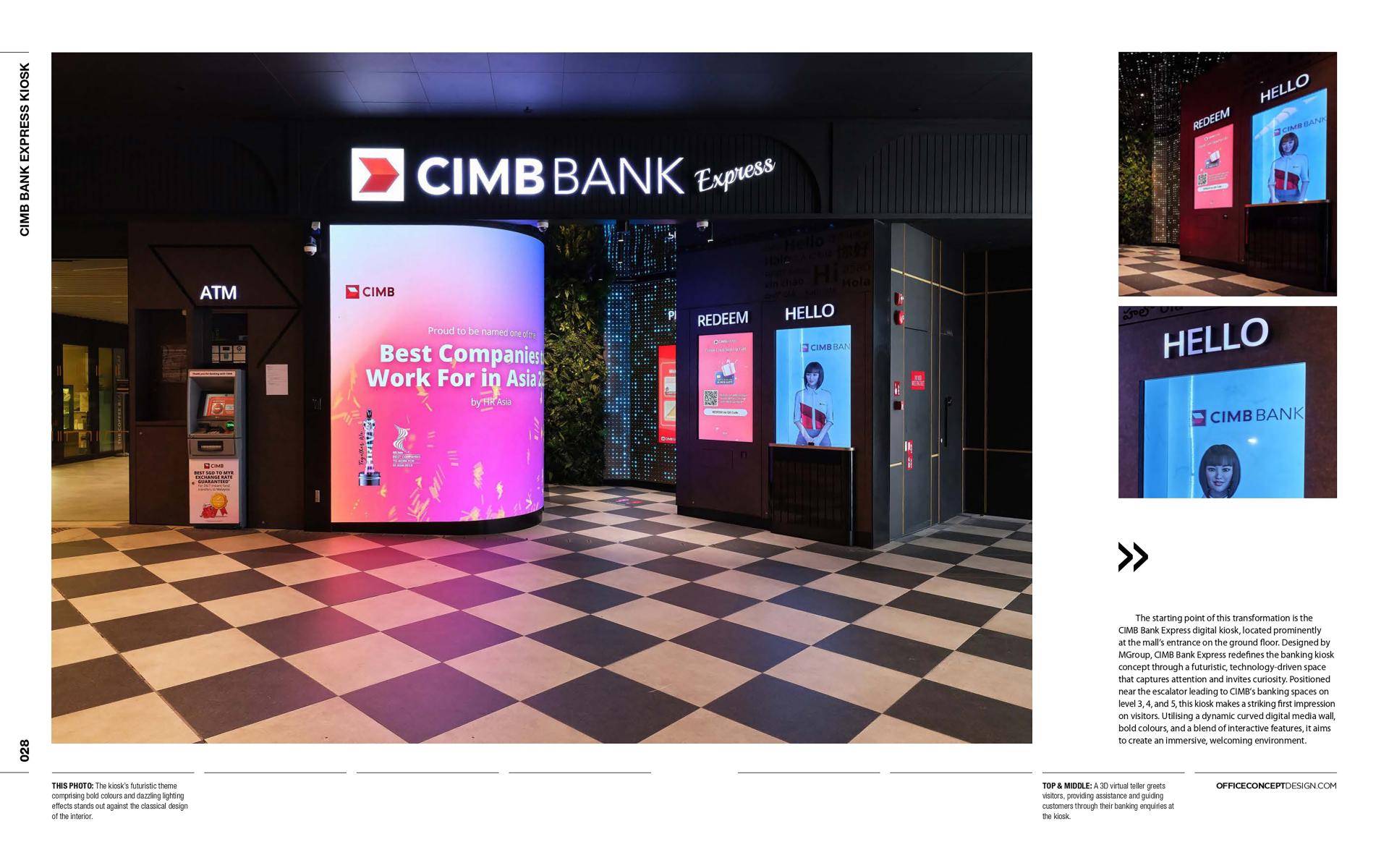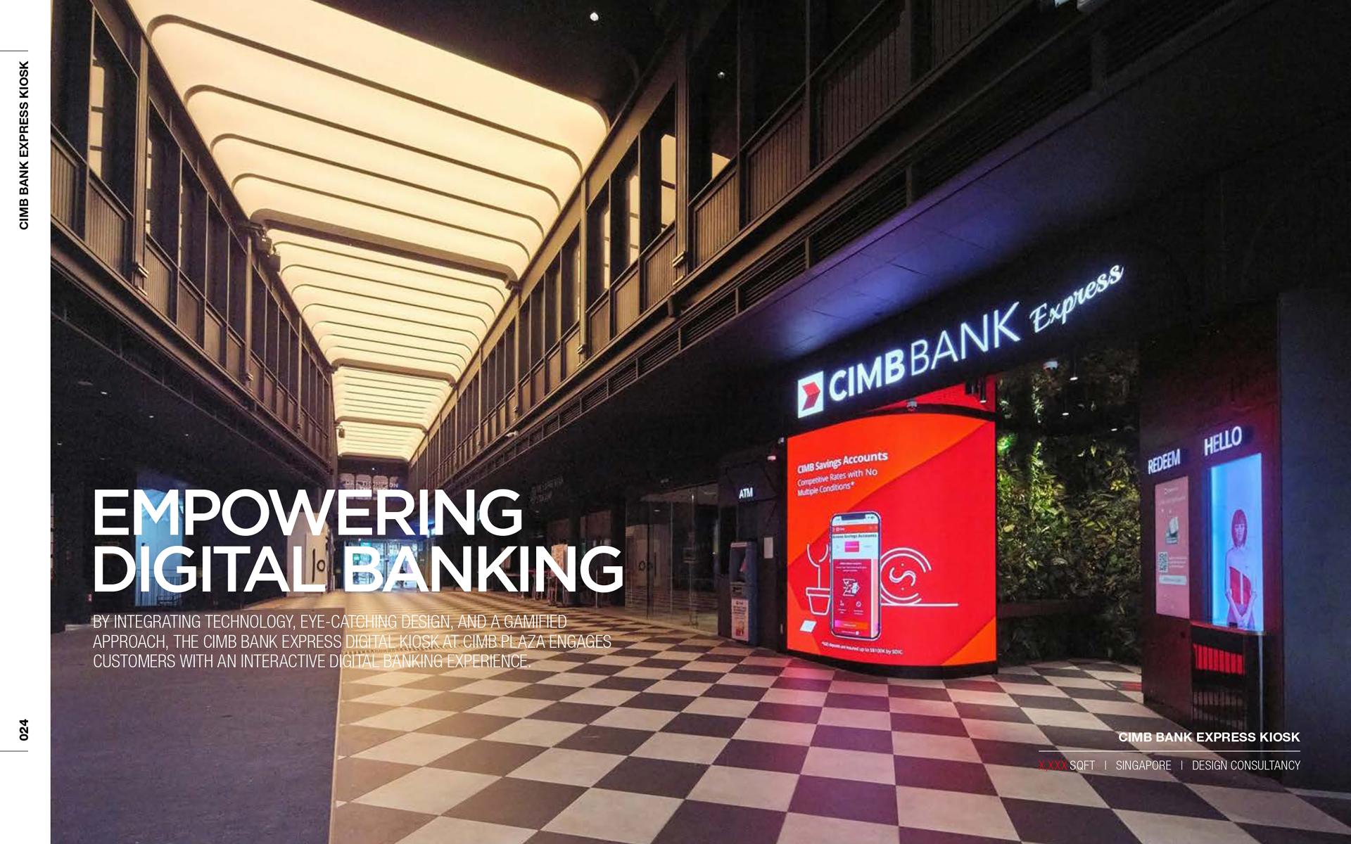 The CIMB Express Digital Kiosk showcases a new vision for customer-centric banking by integrating cutting-edge technology, interactive elements, and immersive design. It reflects CIMB’s commitment to innovation, offering a multi-sensory experience tailored to diverse audiences. By merging functionality with creativity, the kiosk sets a benchmark for the future of banking spaces in Singapore, making it a standout feature of CIMB Plaza.