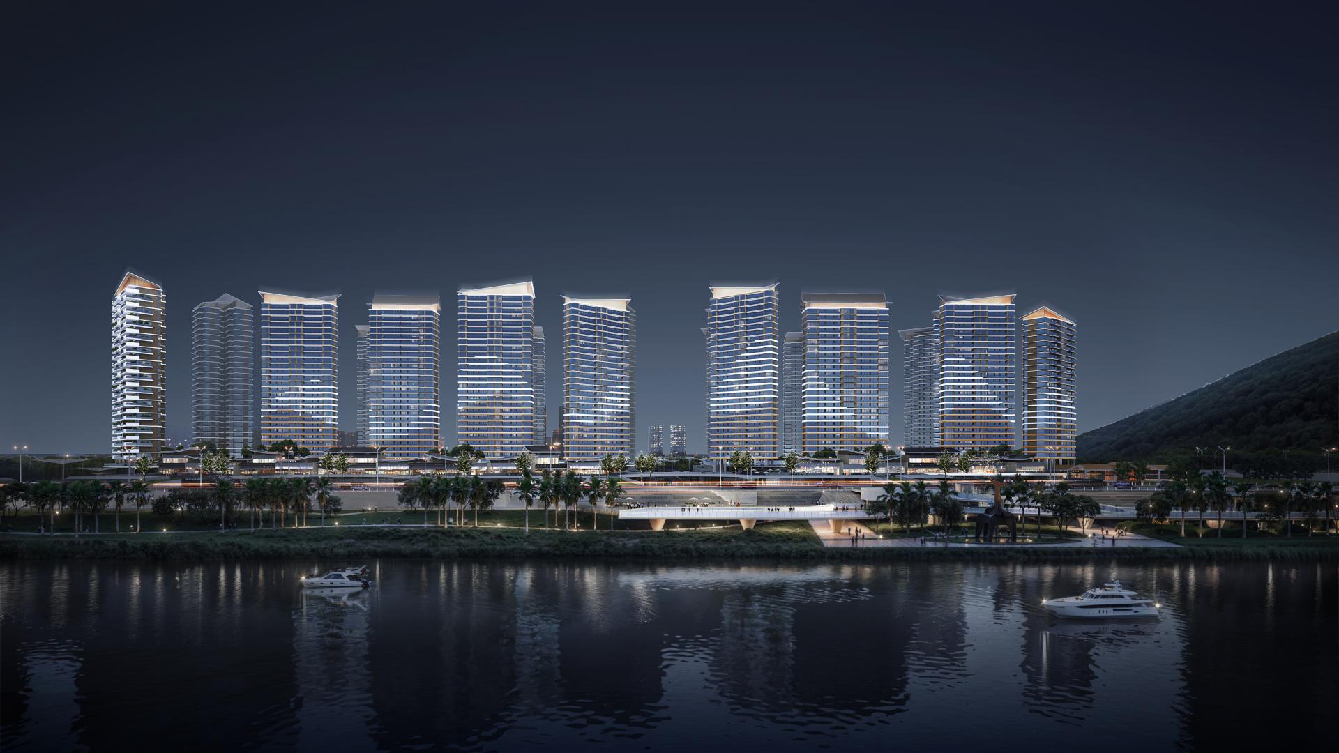 The project is located in the Duanzhou District of Zhaoqing, boasting an exceptional geographical position. It is a fourth-generation riverside luxury residence that is rooted in the cultural heritage of Lingnan and leads the way in innovative lifestyles. The planning integrates site resources and land parcels to form an overall structure of "two axes, one ring, and three zones."