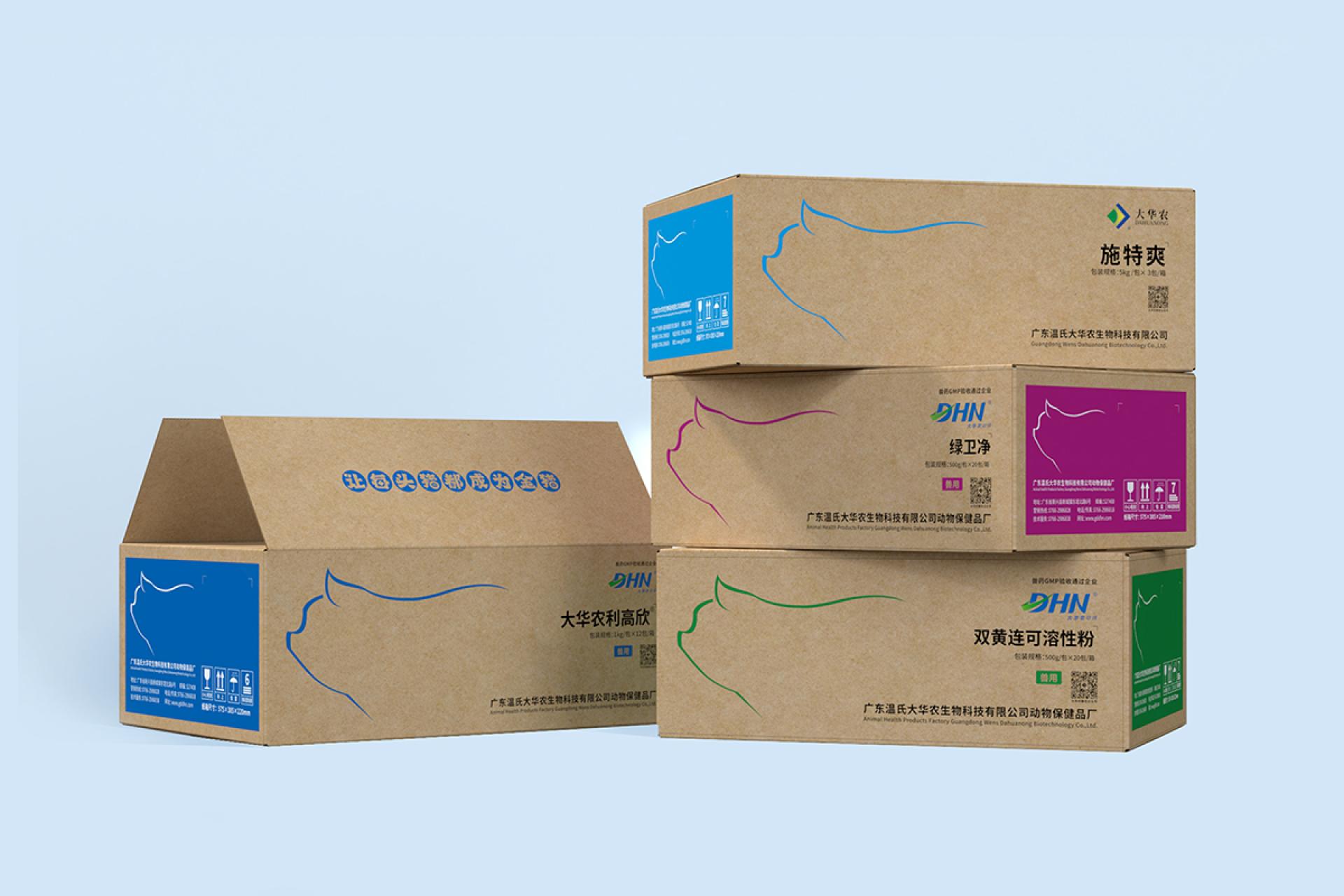 Dahuanong Veterinary Pharmaceutical Packaging Design adopts a systematic design approach as its core philosophy, addressing the diversified categories and complex specifications of veterinary products to establish a packaging system that combines brand distinctiveness with information clarity. The design encompasses both product packaging and transport crate packaging, creating a unified visual identity for Dahuanong's swine veterinary medicine brand.