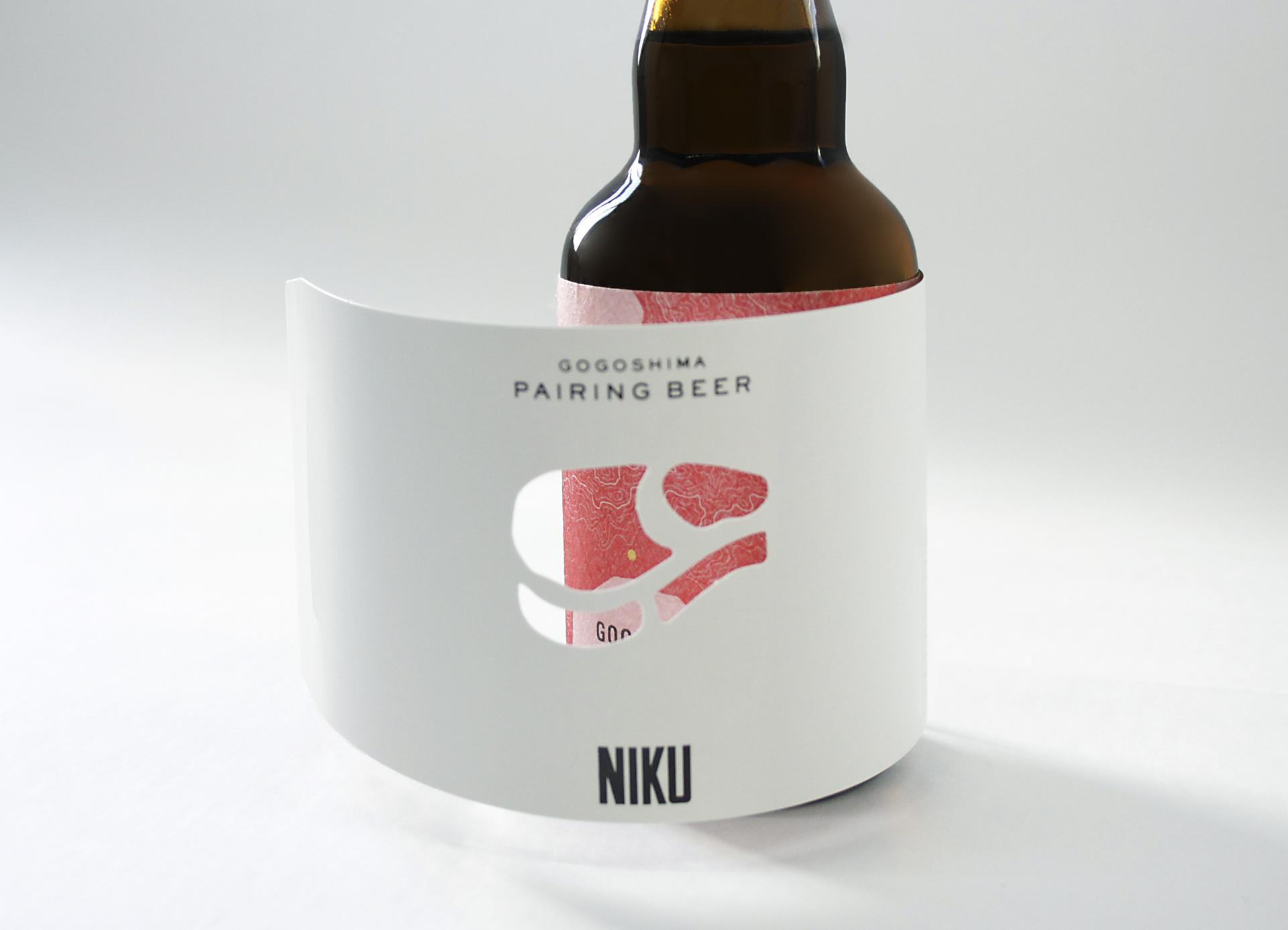 The sleeve features cutouts, while the label depicts a map of Gogoshima that resembles meat fibers, fish patterns, and vegetable veins.