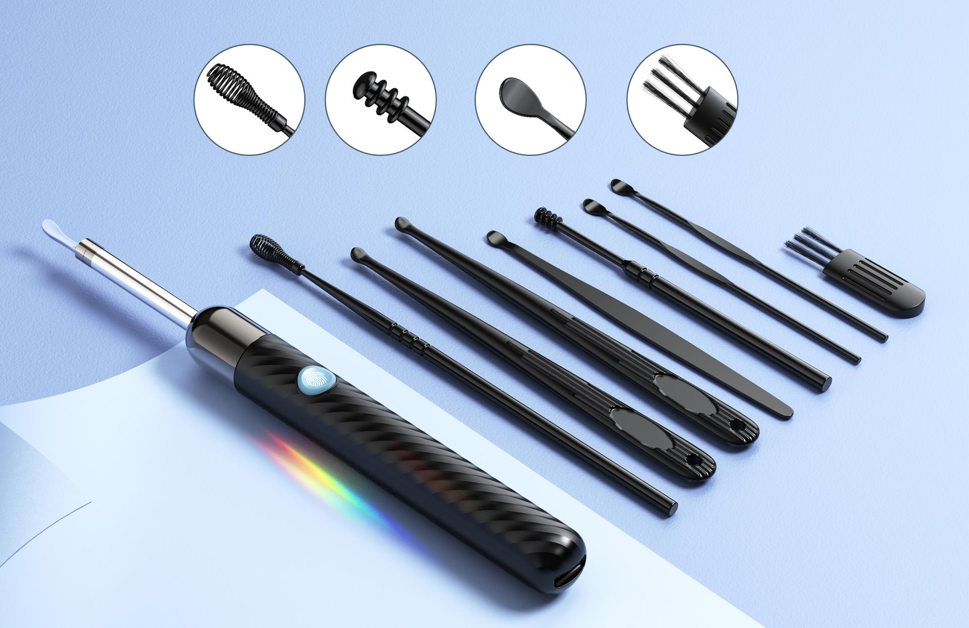 Reconstructing the ear cleaning experience with the "non-invasive, visual" concept, the device replaces the physical intrusion risks of traditional cotton swabs and ear picks with HD imaging and temperature control technology. The modular design (with detachable, replaceable heads) extends the product's lifecycle and reduces resource waste. The app adds a health data recording feature, encouraging users to upgrade from a cleaning tool to a personal health management device.