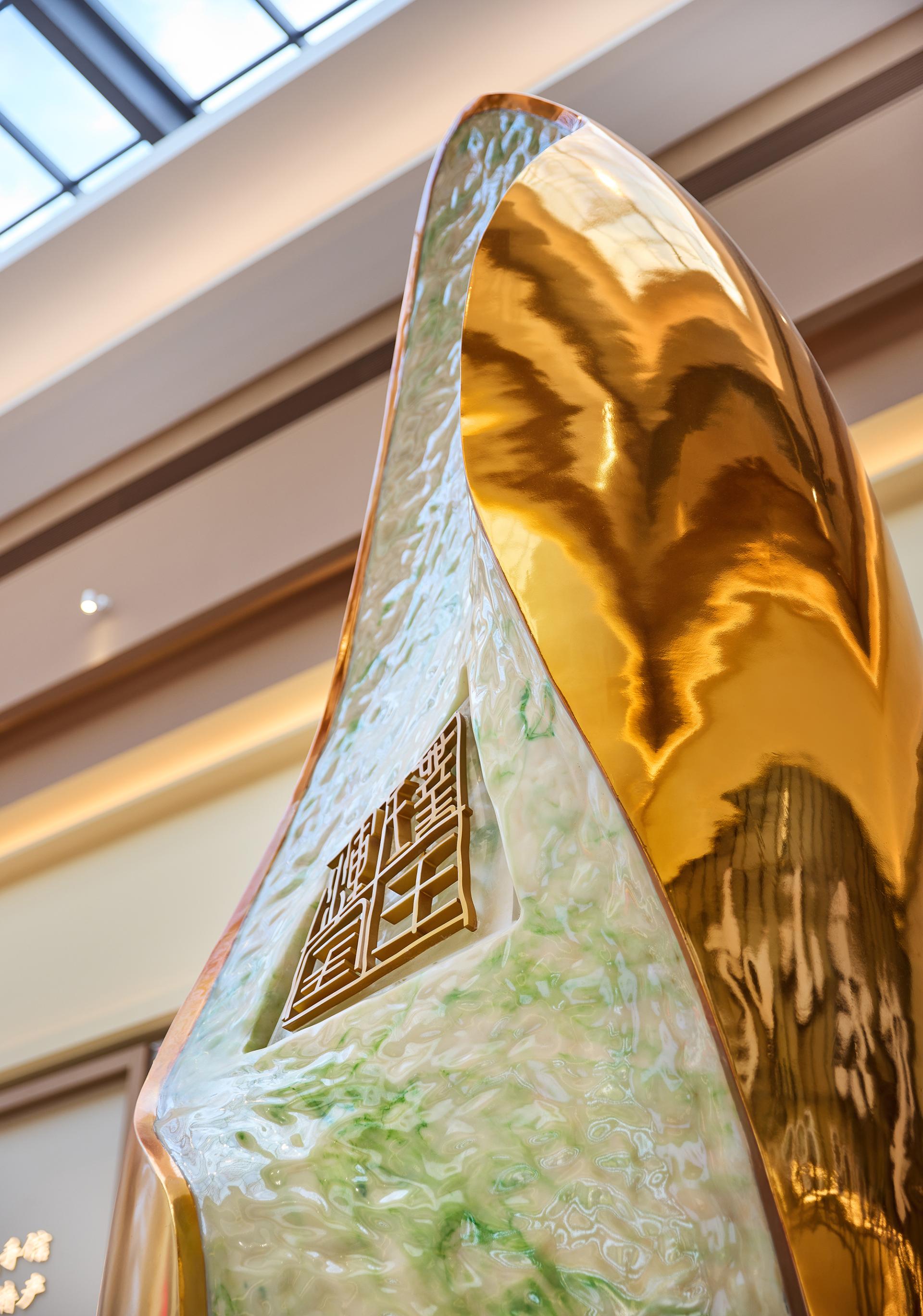 Rather than adopting a traditional sculptural narrative, the installation employs a deconstructivist approach to capture the instant of "raw stone revealing its jade." The outer layer, made of color-plated stainless steel, simulates rock textures with abstract curves that subtly echo geological sedimentation patterns. Within, a finely crafted jade-like core emerges, creating a dynamic balance between rigidity and fluidity while exploring the interplay of concealment and revelation. As passersby move through the piece, they experience a transition from the oppressive sensation of traversing rock layers to the surprise of discovering the jade’s radiance, ultimately shifting from mere highway travelers to cultural explorers. This transformation elevates the service area from a transportation node to a site of regional cultural enlightenment.