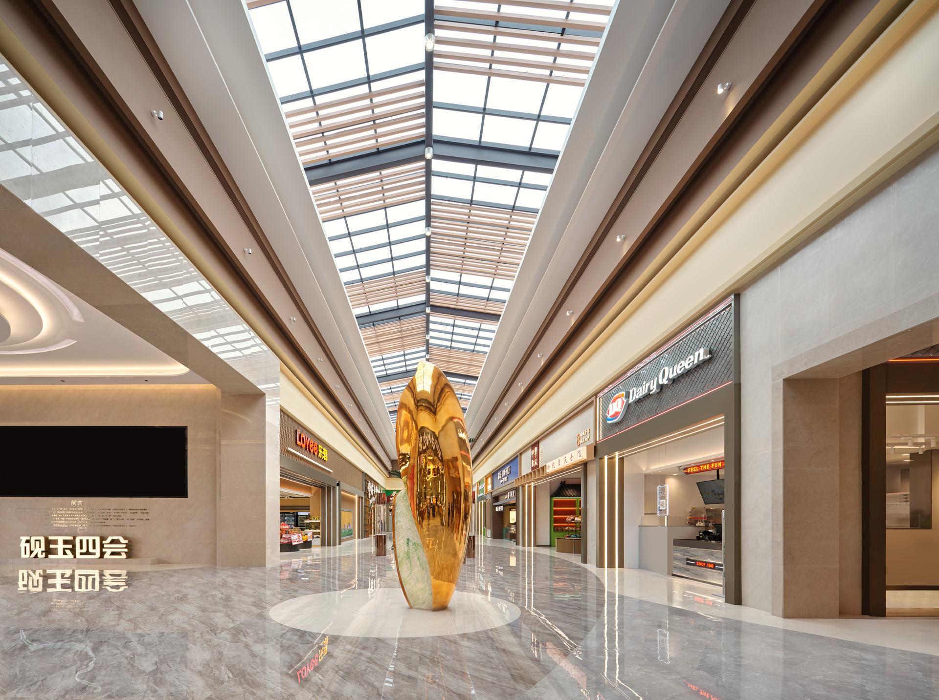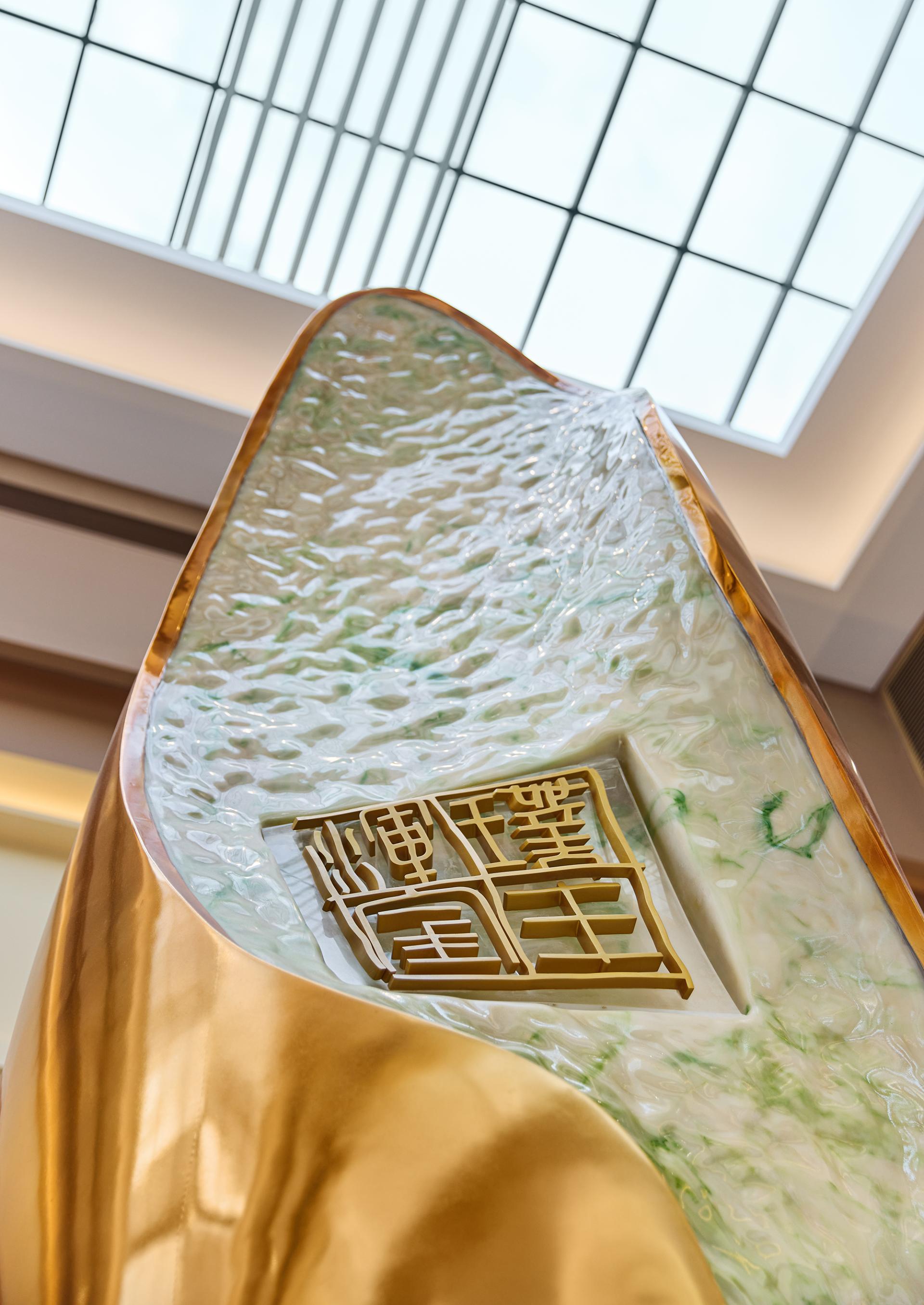 "Uncut Jade and Solid Gold" is an art sculpture designed specifically for the Sihui Service Area along the Guanghe Expressway. As the first visual focal point of Guangdong Transportation Group's inaugural ClassⅠ specialty service area, the piece draws inspiration from the city's identity as the "Hometown of Chinese Jade" and is conceptually rooted in the Eastern philosophy of Puyuhunjin (uncut jade and solid gold) from the Southern Dynasties. The design deconstructs the emergence of raw jade from rock formations, portraying a smooth yet serene presence that interacts dynamically with the flow of people in this transportation hub.