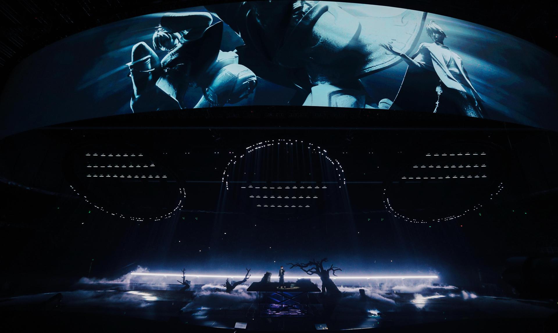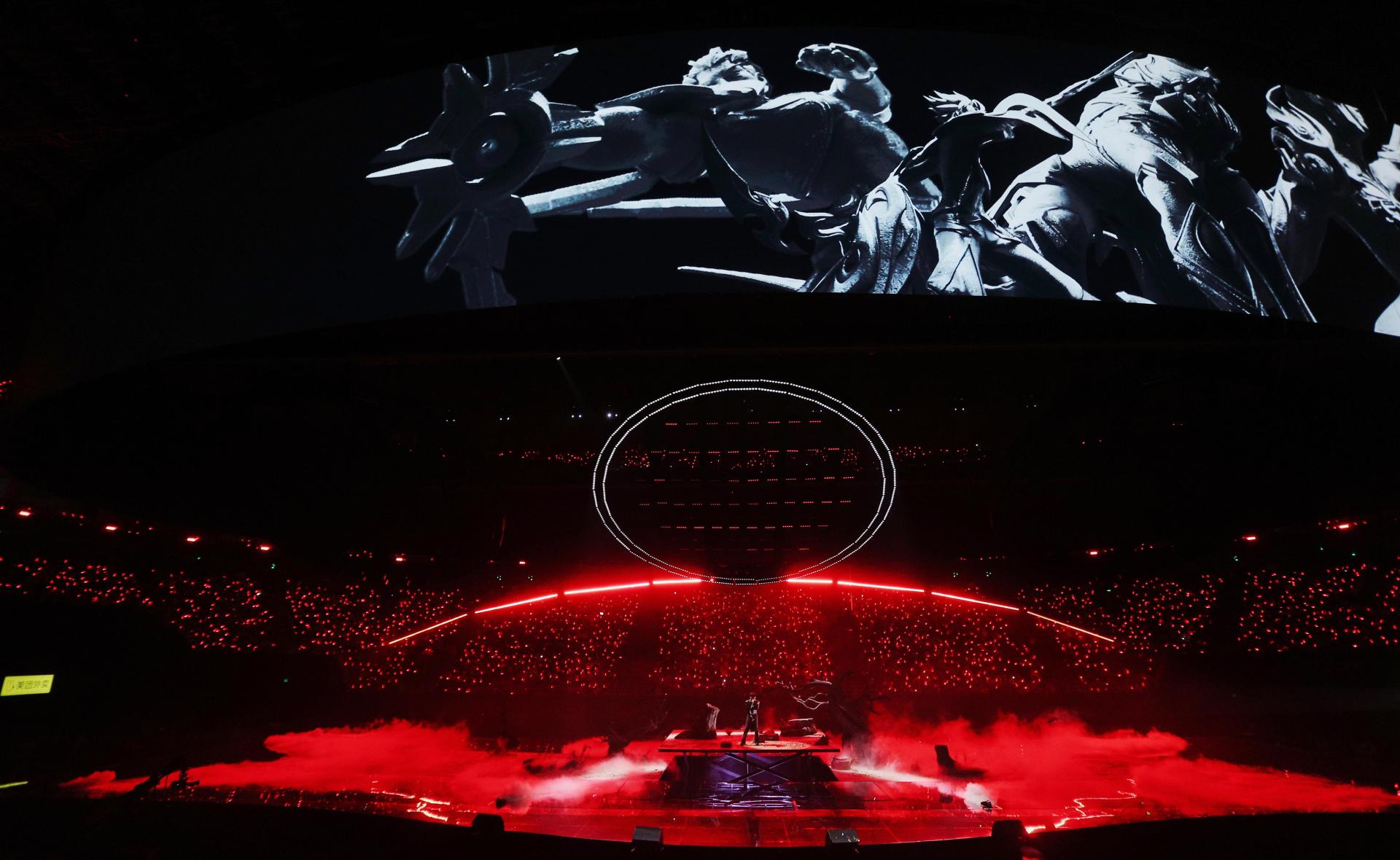 Design highlights: Integrating the worldview of *Honor of Kings* with Chengdu's cultural elements (e.g. Shu embroidery patterns, Jinsha Site totems), employing laser technology, LED matrices and projection mapping to amplify technological sophistication and epic grandeur, enhancing viewing experiences for both live audiences and broadcast viewers.
