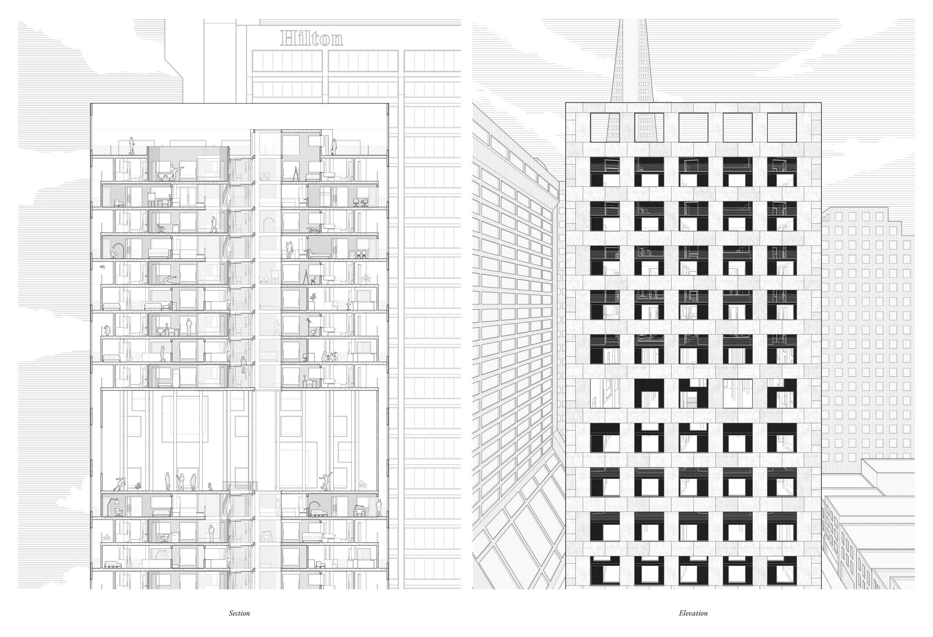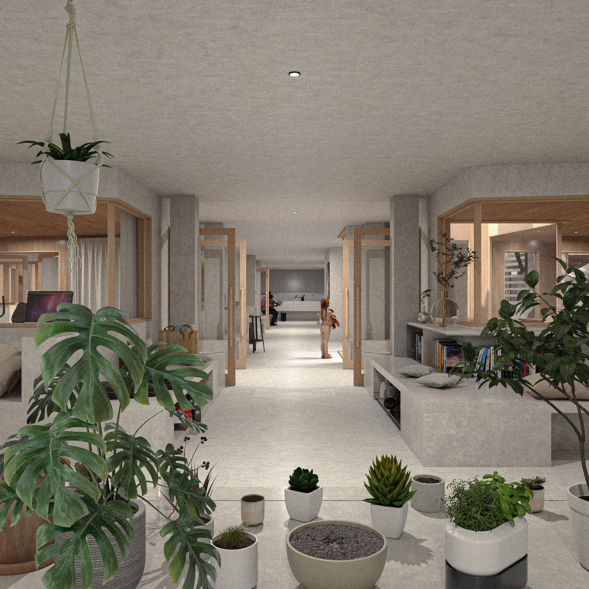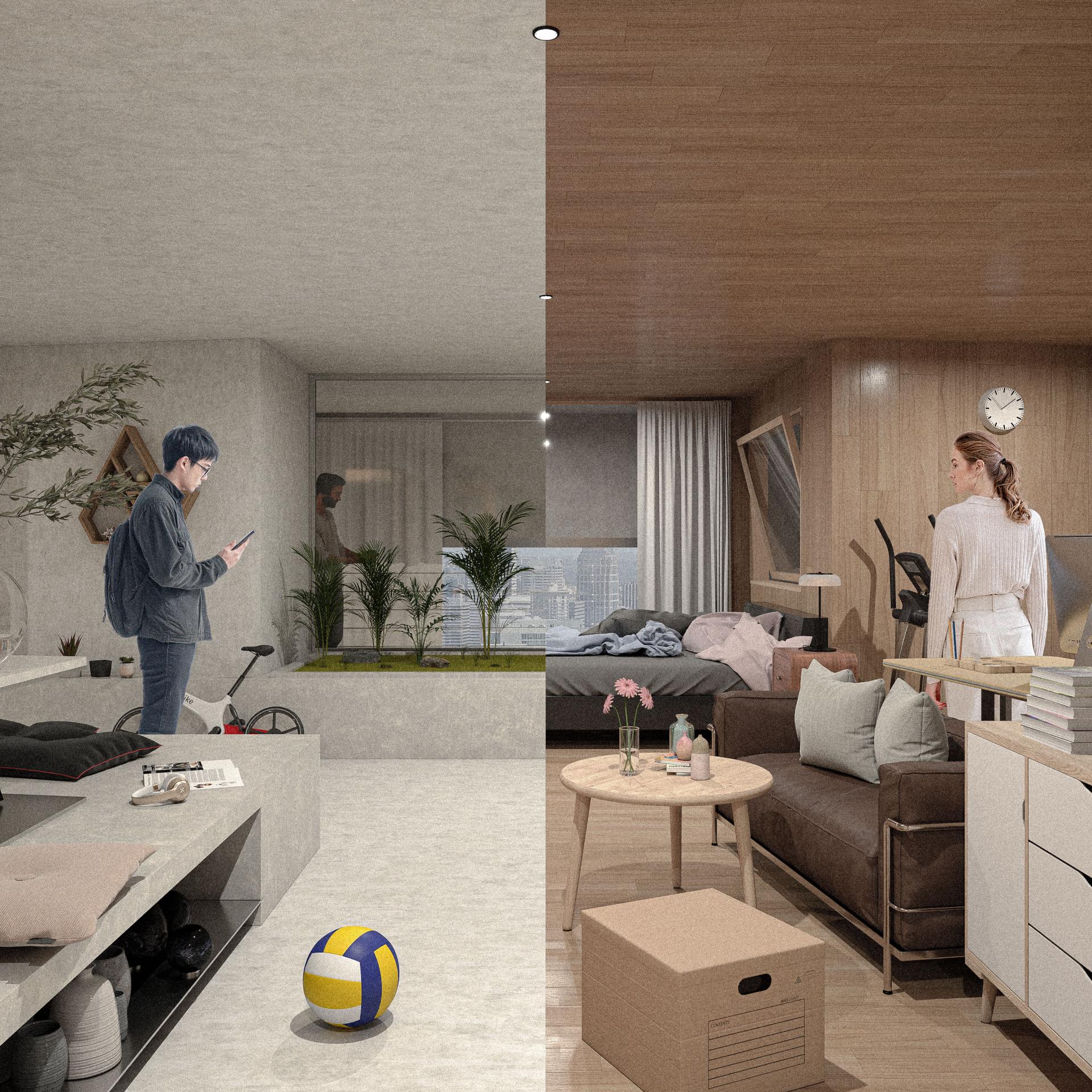 Specialized circulation preserves privacy, while the matrix style fosters intimacy and inclusivity. By merging these approaches, this project blurs the boundaries between private and public spaces. Every area can function as both a corridor and a room, while "view corridors" allow residents to observe their neighbors, transforming strangers into a community. Rather than fostering discomfort, public spaces encourage social engagement.