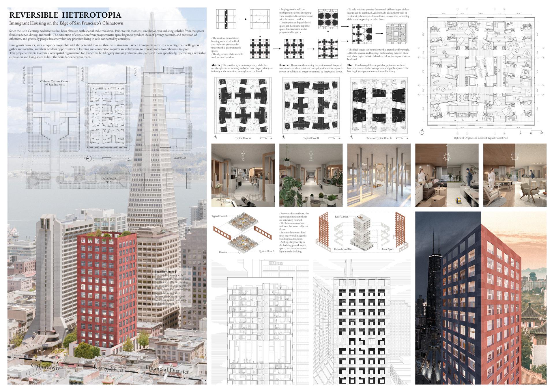 This project attempts to create a new spatial organization for residential buildings by studying otherness in space, and more specifically, by creating a reversible circulation and living space to blur the boundaries between them.
