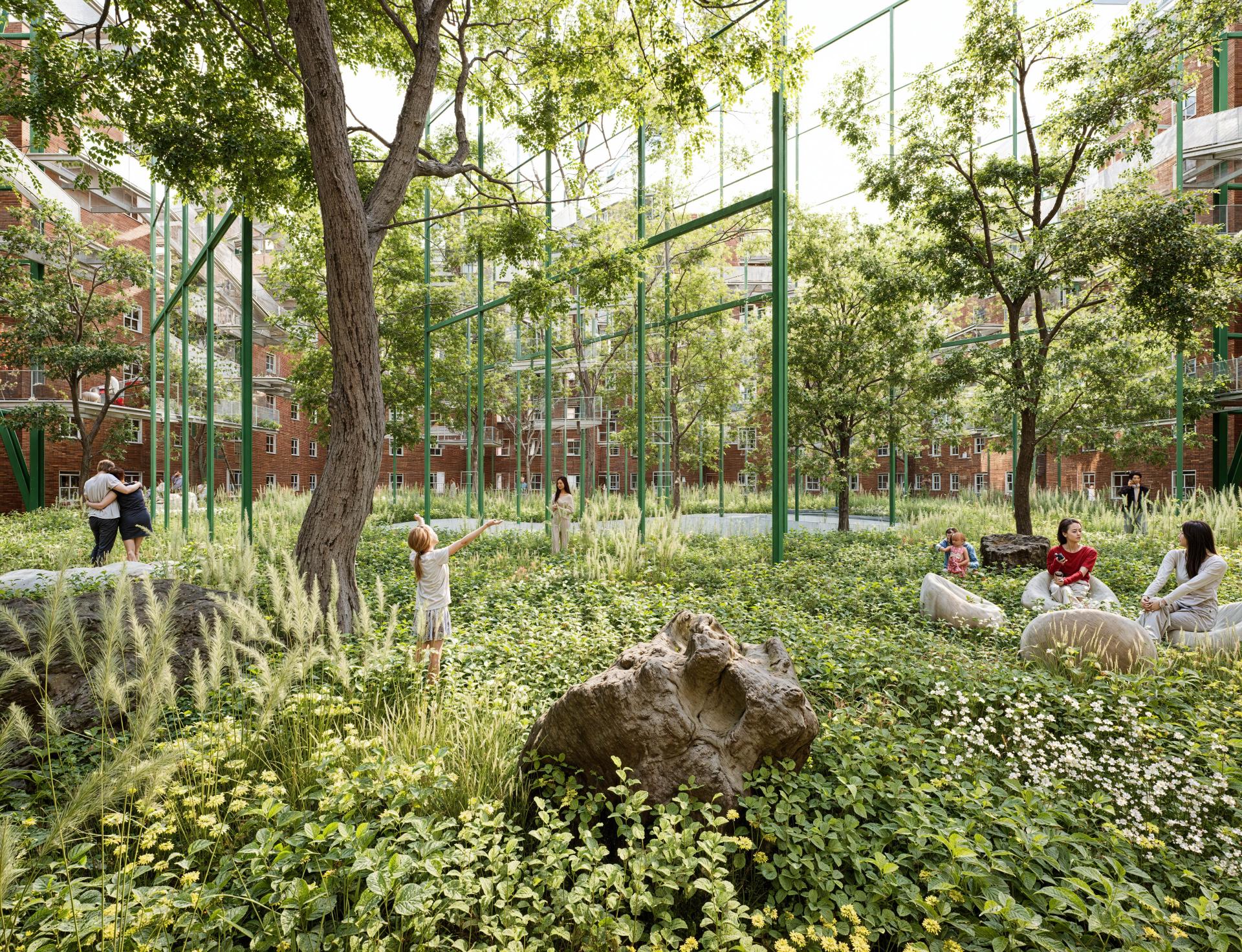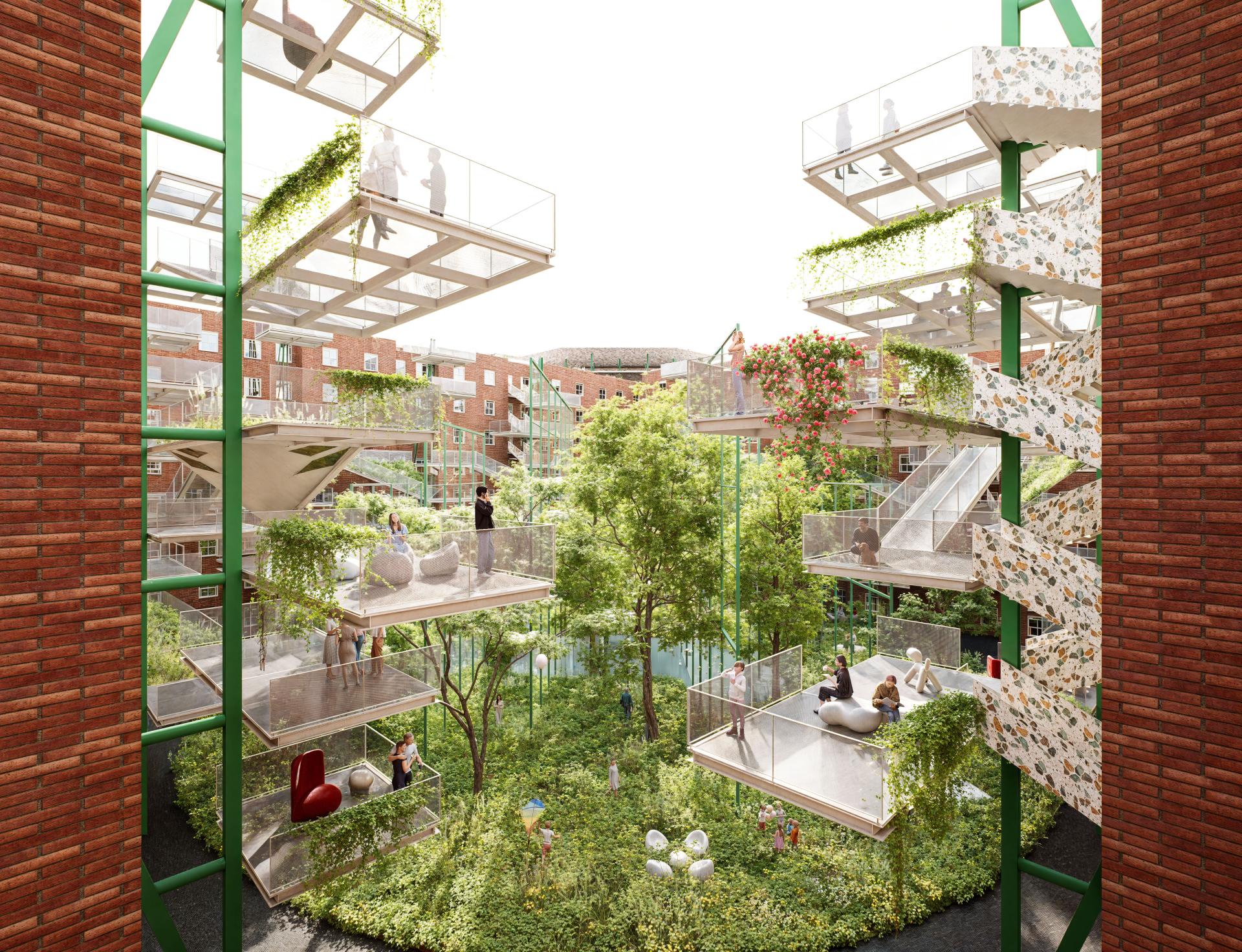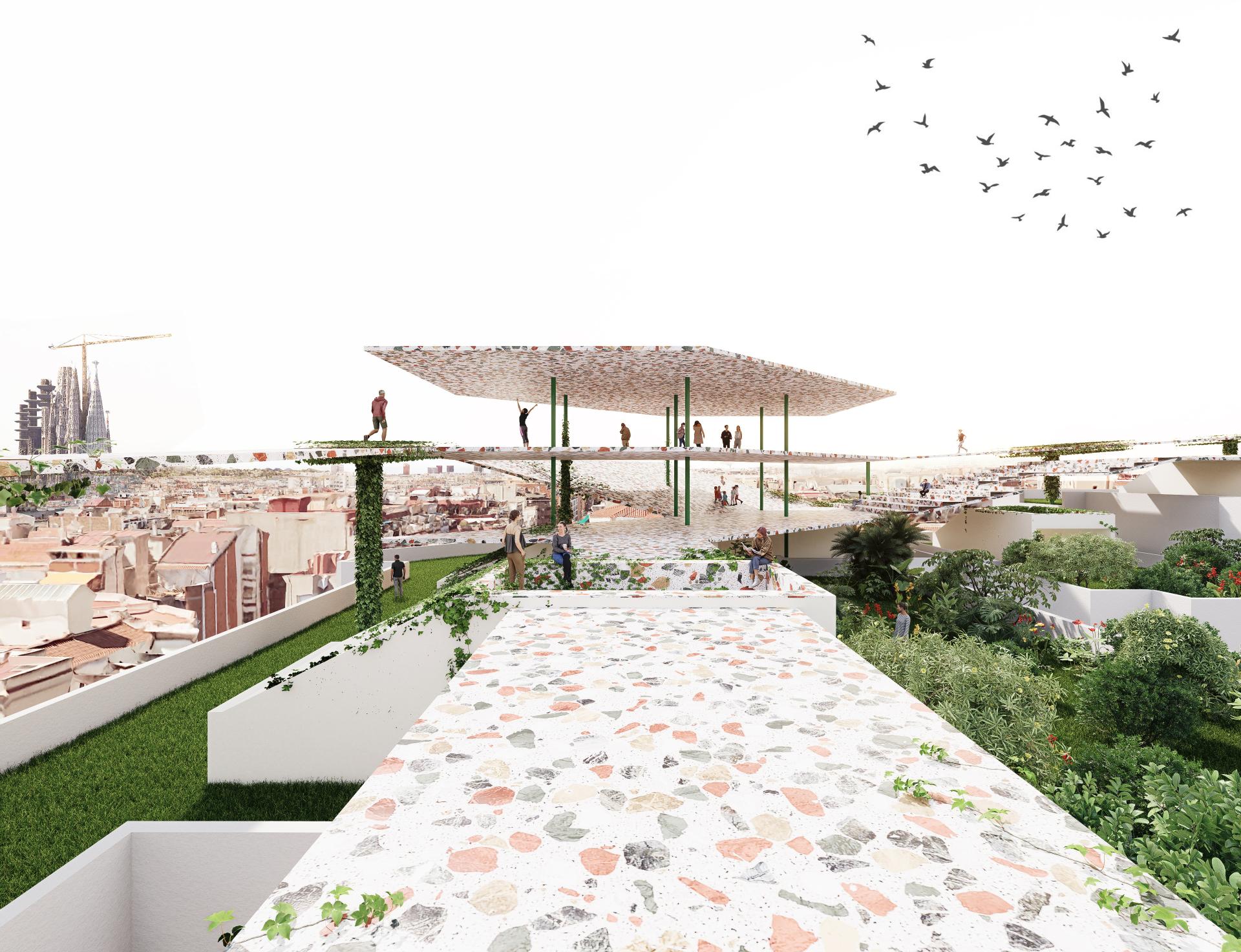 Today, Cerdà’s Eixample district is a squat brick building and has long been considered lacking of energy by the community. The new design will reintroduce greenery, forming a multi-layered canopy across the city. This eco-friendly network will support biodiversity, improve air quality, and enhance urban resilience. Green roofs, rainwater harvesting, and energy-efficient materials are woven into the urban fabric, creating a holistic tapestry. Cerdà’s Eixample was designed with controlled building heights and open green spaces, which have been reduced due to population growth. “This project will set the bar for the type of innovative and sustainable projects that could be realized on former city agency owned land,”