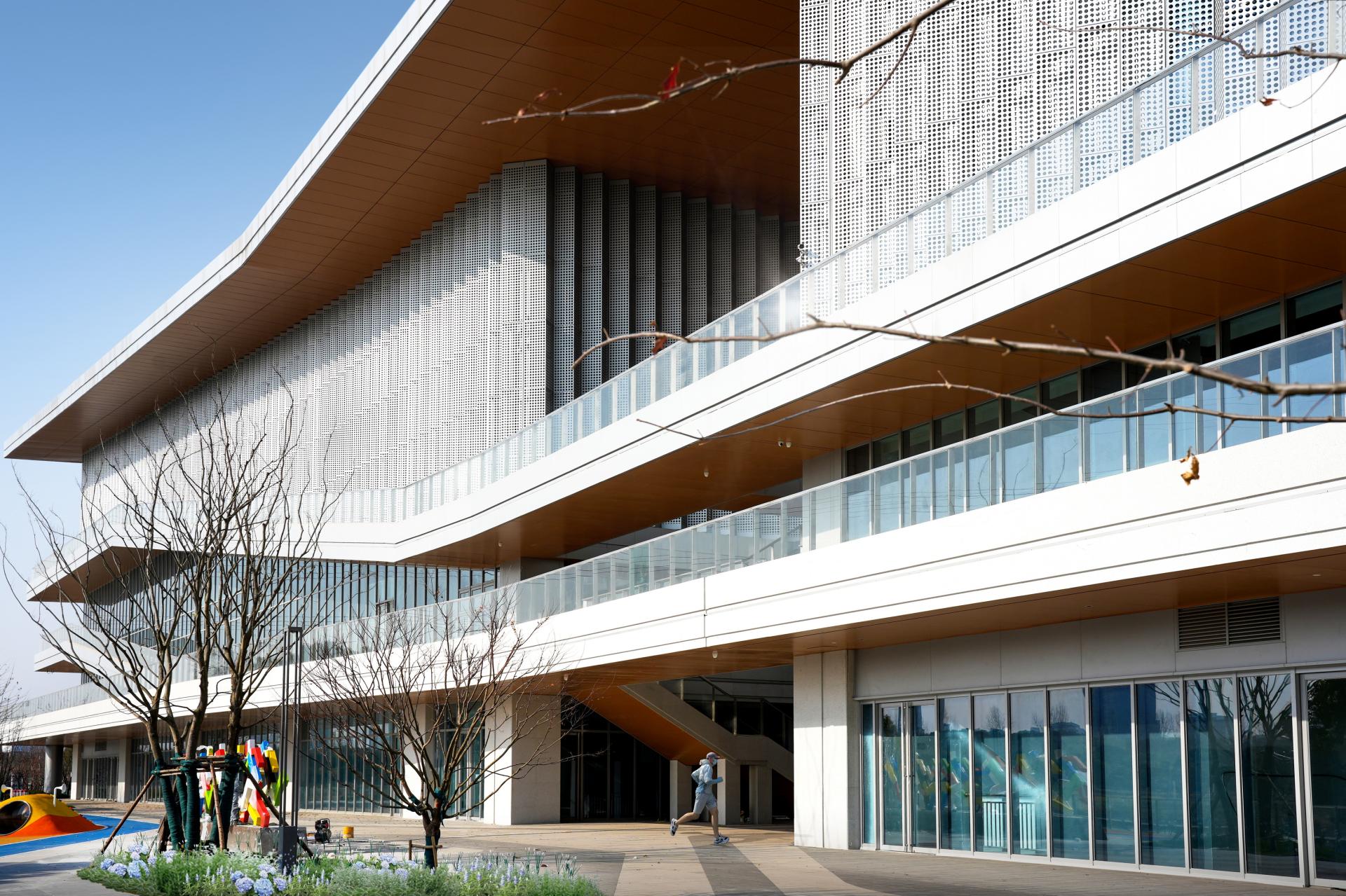 The design was integrated into the riverside pedestrian system. A "skywalk trail" consists of multiple architectural elements such as stairs, ramps, and overhanging platforms is created to alleviate the oppressive feeling of large-scale buildings, forming an outdoor hiking trail that is open all year round.