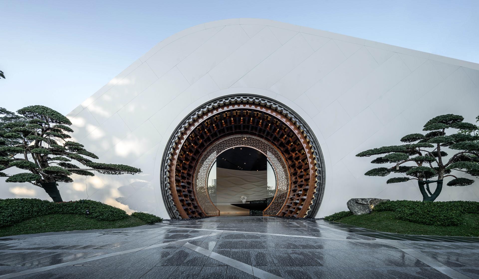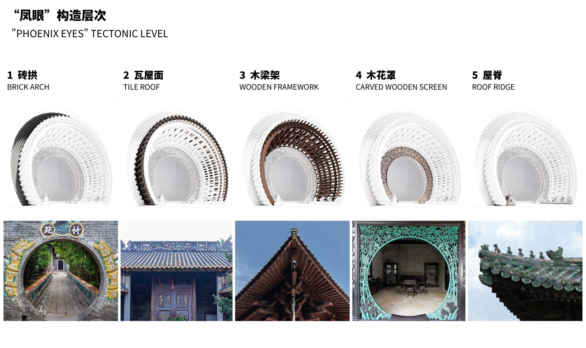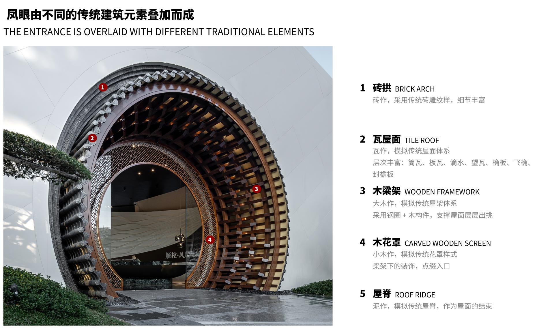 The traditional roof is ingeniously curved into a rounded shape, with elements like bricks, tiles, wood, and ridges collectively creating the highlight—the "Phoenix Eye." The clever integration of traditional forms and modern craftsmanship ensures the realization of the design's intent. The Phoenix Eye resembles a gateway connecting the past and the future.