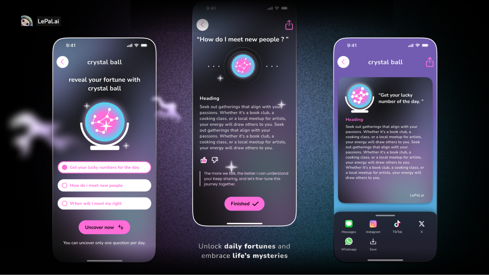 Lepal.ai reimagines mental wellness by combining AI-driven personalization with gamification, making mental health support engaging and accessible. It breaks down wellness management into bite-sized, interactive exercises powered by large language models. Through AI-generated “spirit companions,” users receive personalized mindfulness guidance, CBT-based exercises, and real-time emotional insights. Game mechanics like progress tracking, virtual rewards, and customizable avatars encourage consistency, while mood maps and social features foster connection and a sense of belonging. By building a supportive mental health community, Lepal.ai helps reduce stigma and integrate well-being into daily life.