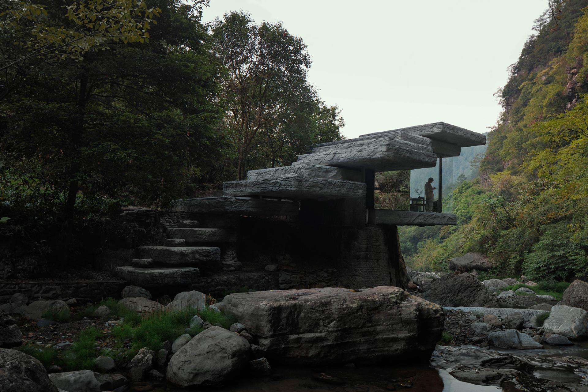 The Drifting Stones project, nestled in the mountain region of Chongqing, is a scenic addition to a private mountain retreat. Surrounded by lush greenery, towering cliffs, and gentle streams, the project consists of two structures: “The Stacks” and The Hut”. Visitors can ascend the steps for a panoramic view or relax in the pavilion and enjoy a tea with the soothing sound of water flowing.