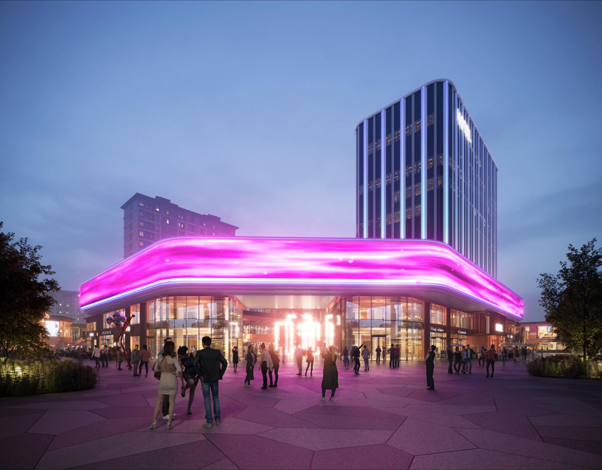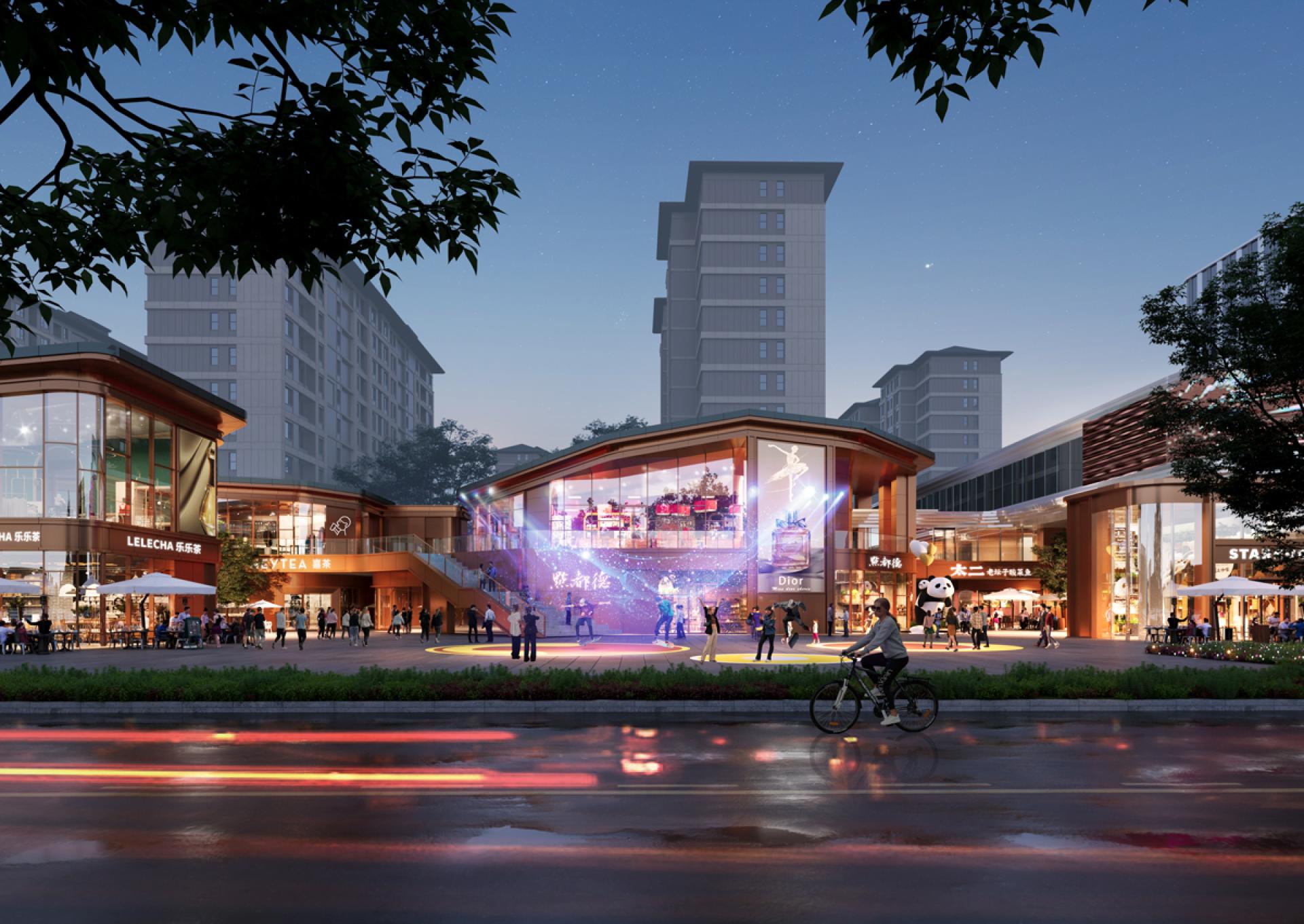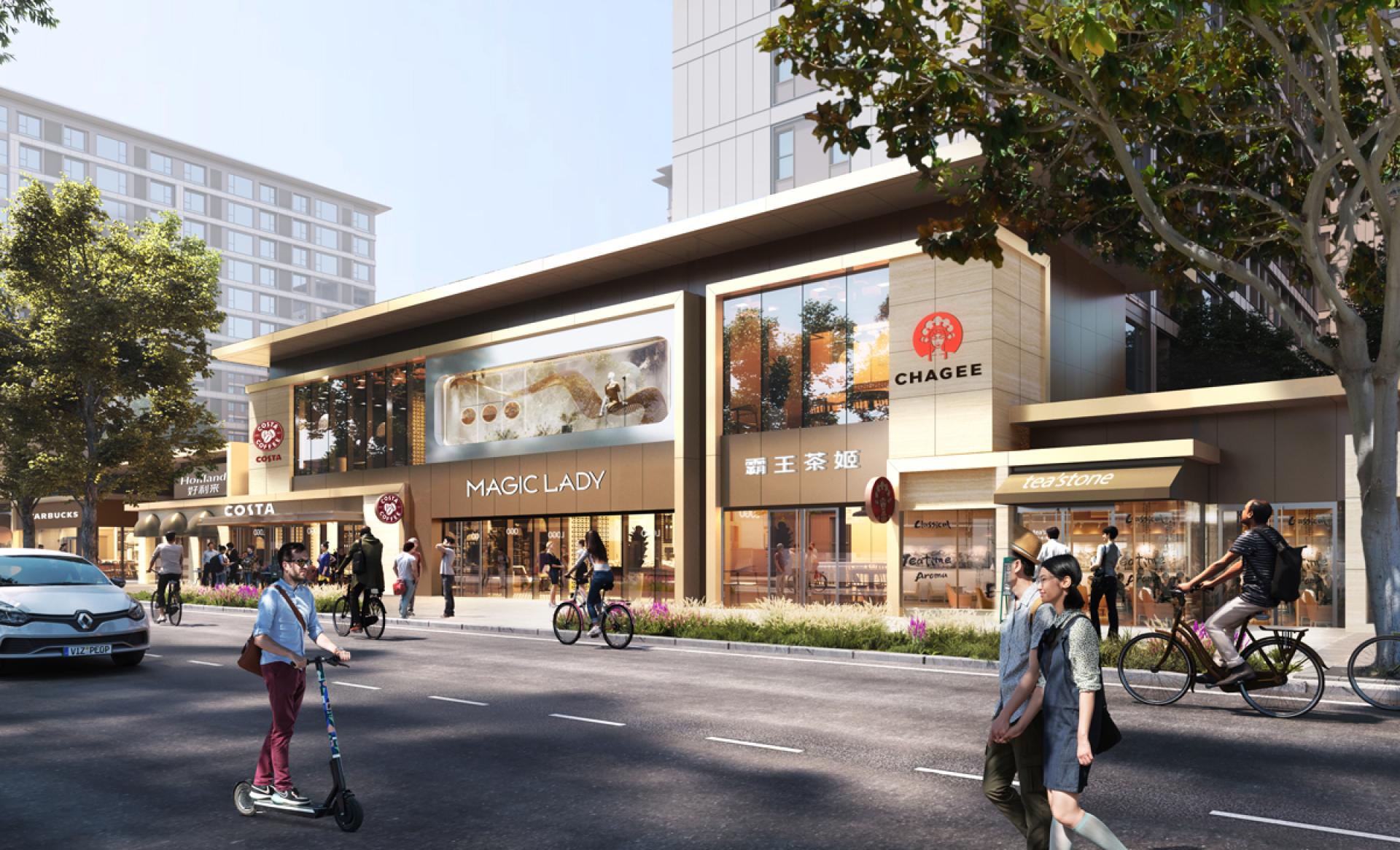 The eastern wing embodies the concept of the "Art lane in Garden," blending modern architectural with traditional Chinese design elements such as garden space and horizontal roofs. Highlighting the pedestrian’s scale of public space and shopfront, the commercial space connected in a rhythmical sequence, creating a sophisticated and harmonious urban environment. This area emphasizes the integration of cultural experiences with refined lifestyle amenities, offering residents and visitors a sense of elegance and cultural enrichment.