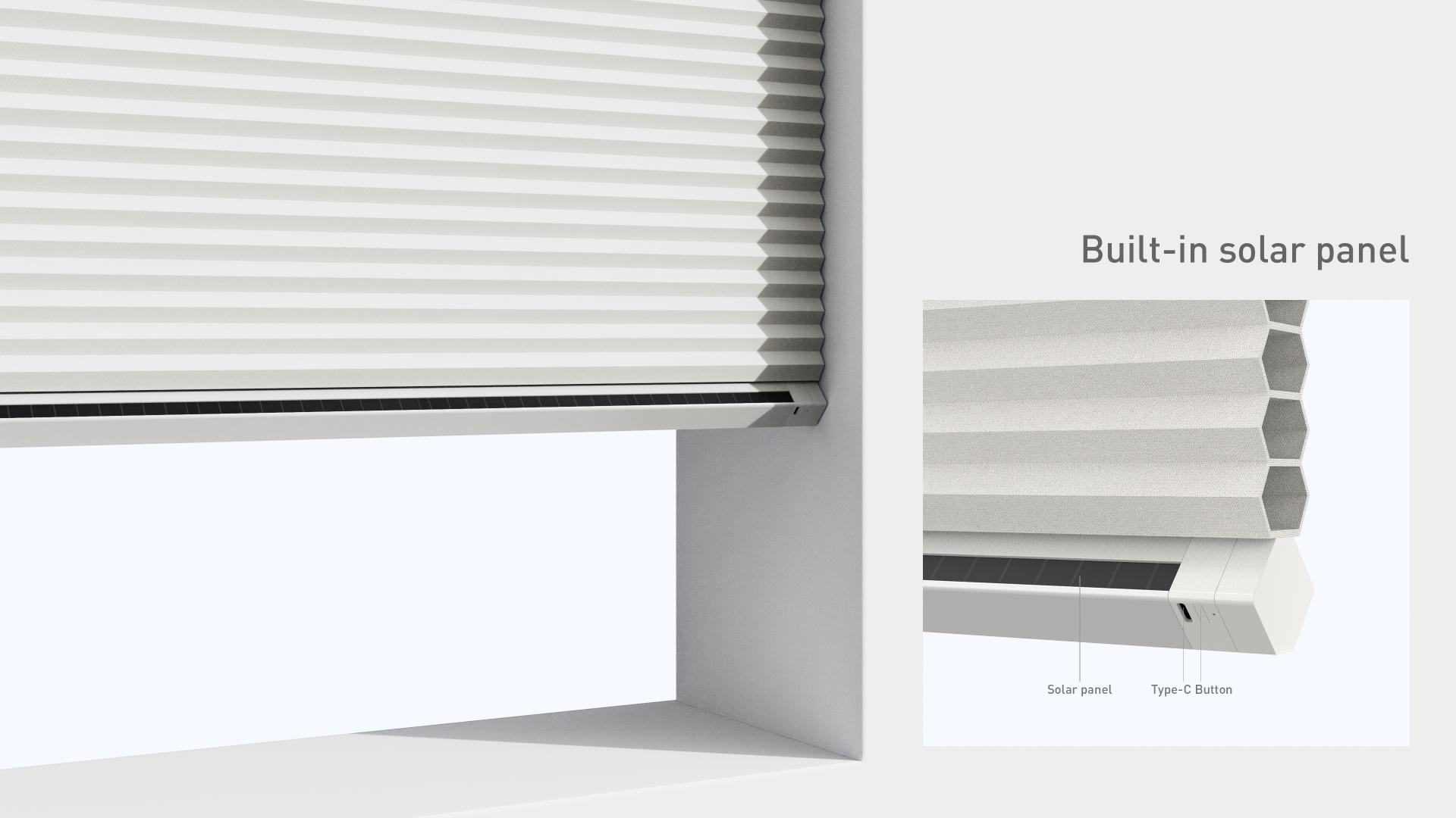 The integrated solar panels ensure sustainable operation of the motor, reducing reliance on external power sources. The temperature sensors and smart control functions not only enhance the product's practicality but also provide a convenient user experience, significantly lowering household energy consumption. The hexagonal design of the bottom rail reduces the visual bulk of the product while adding a modern aesthetic.