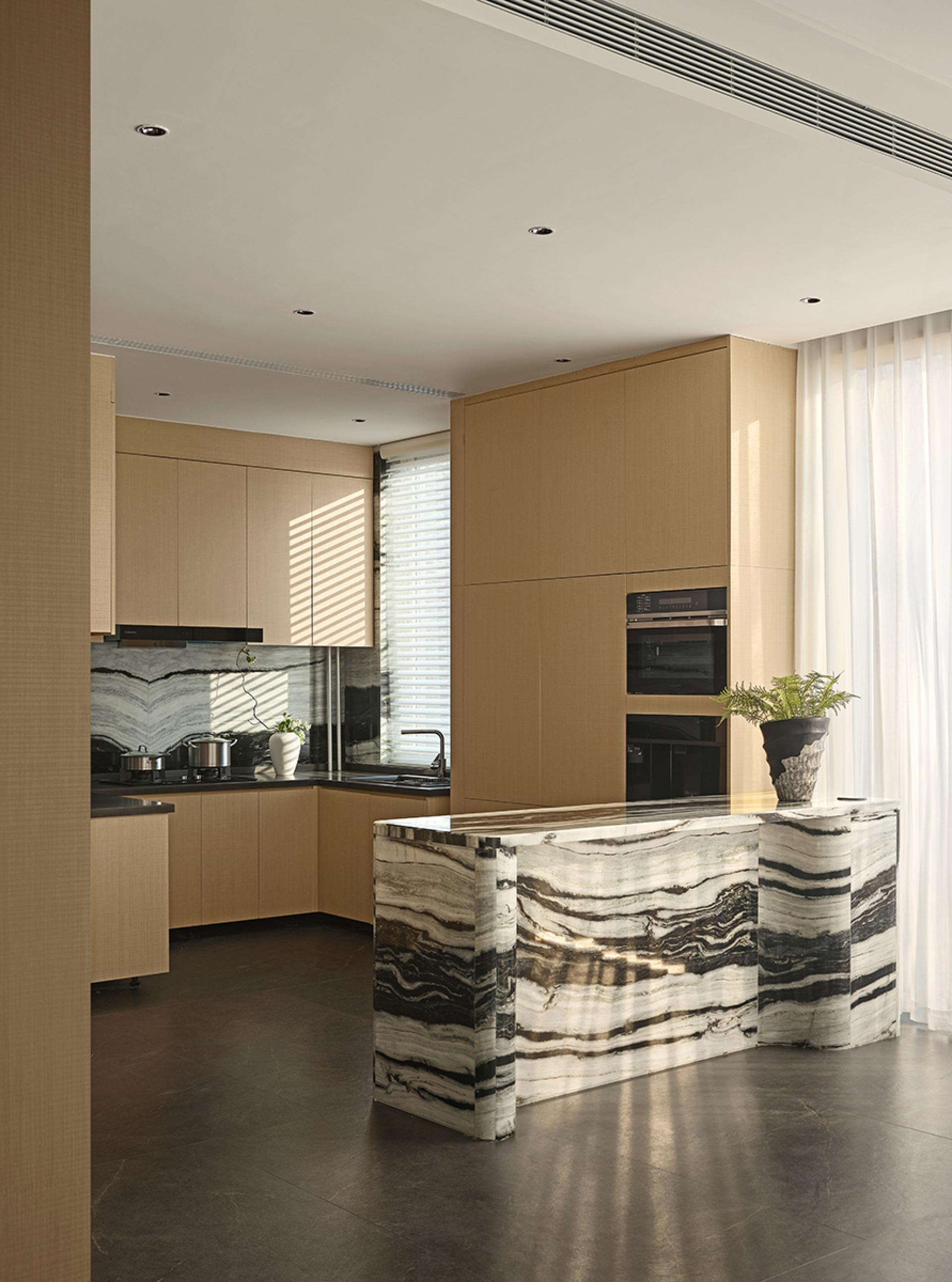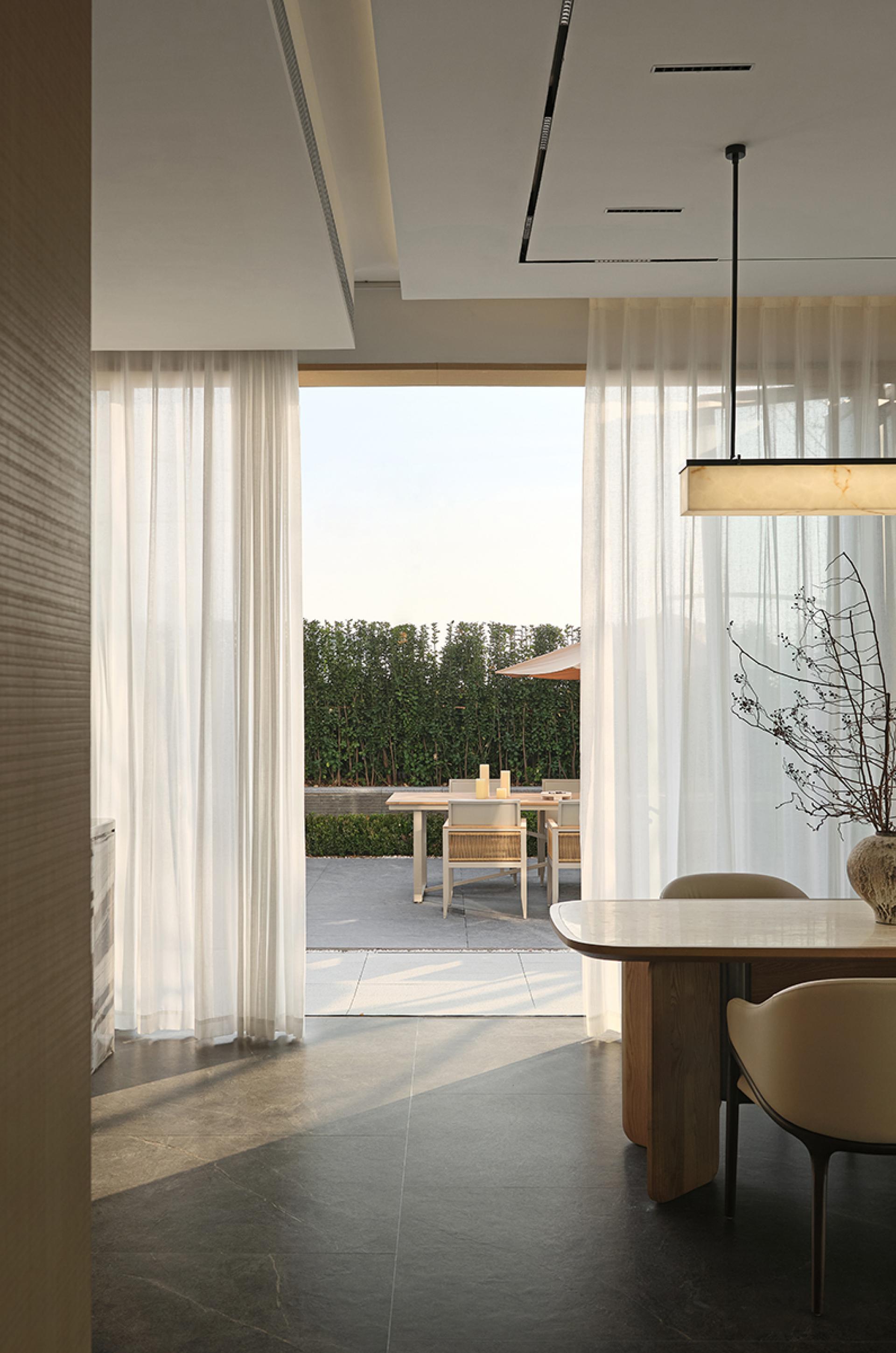 In Qingdao Lingshan Bay, where mountains and sea converge to create a serene and poetic place, The Waves Sea Villa is situated. It is not merely a building, but a perfect fusion of nature and humanity, culture and emotion, providing modern people with an ideal place to seek inner peace and return to nature. In terms of design, the villa takes "Eastern simplicity and elegance" as its core concept, interpreting traditional Eastern aesthetics through modern techniques. The steady tones, elegant lines and well-proportioned spatial layout create an irreplicable texture and charm. The extensive use of large glass windows, open layout and natural materials such as wood and stone blur the boundaries between indoor and outdoor spaces, bringing the mountain and sea views and greenery of Lingshan Bay into the living space and creating a unique atmosphere of "natural and poetic living". Whether it is the wooden tones of the living room, the Zen tea room, or the bamboo painting decorations, they all retain the charm of Eastern culture while meeting the comfort needs of modern life. In addition, the villa emphasizes the integration of nature and humanity, meeting the needs of different family members through all-age space planning. The low-density community design, the rare resource of first-line sea views, and the complete supporting facilities further enhance the living experience. Here, the grandeur of mountains and sea and the refinement of life interweave, creating a high-end living space that combines Eastern aesthetics and modern comfort for the residents. The Waves Sea Villa is not only a residence, but also an elevation of lifestyle, providing an ideal place for those who pursue quality and tranquility to return to nature and embrace poetry.