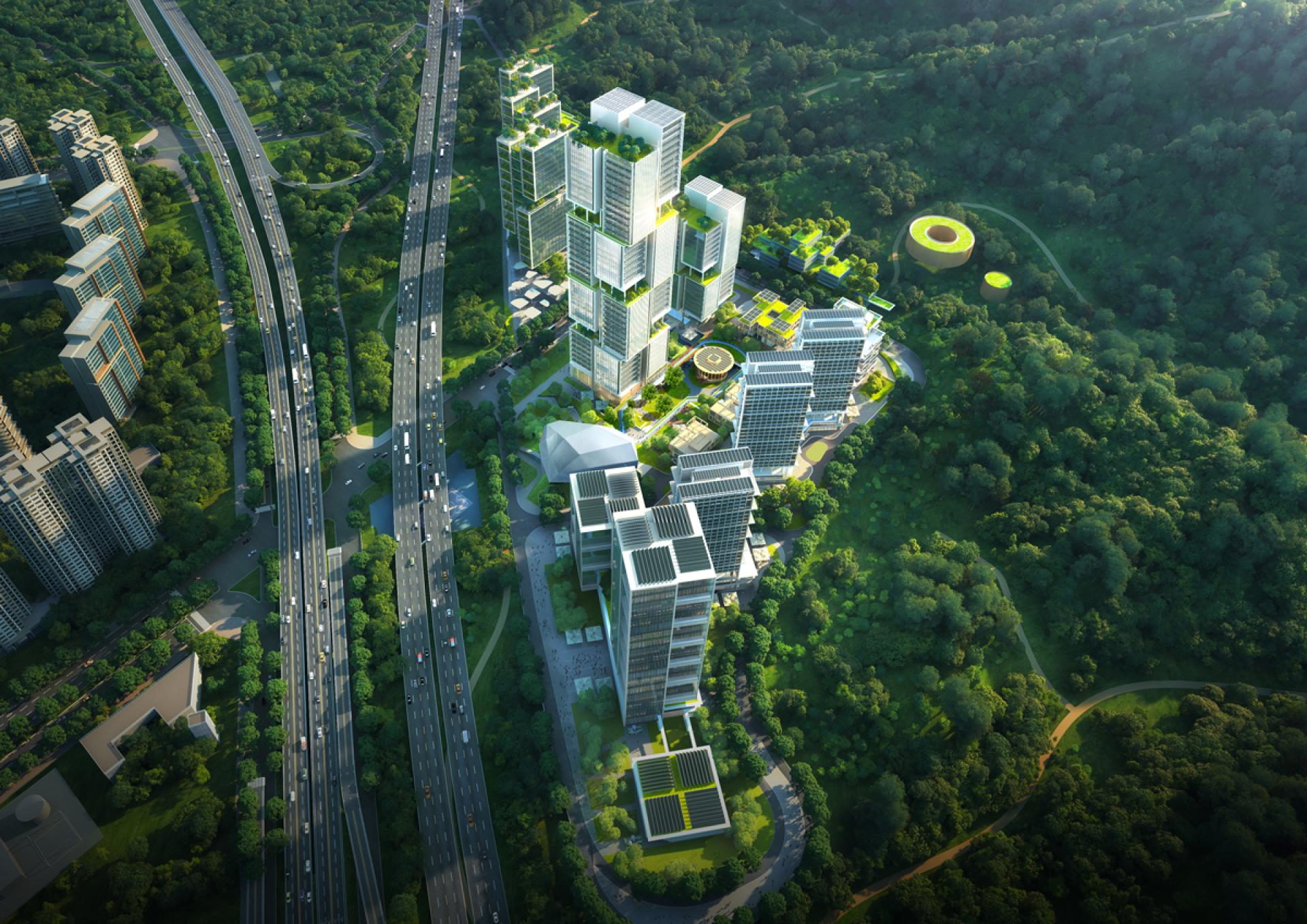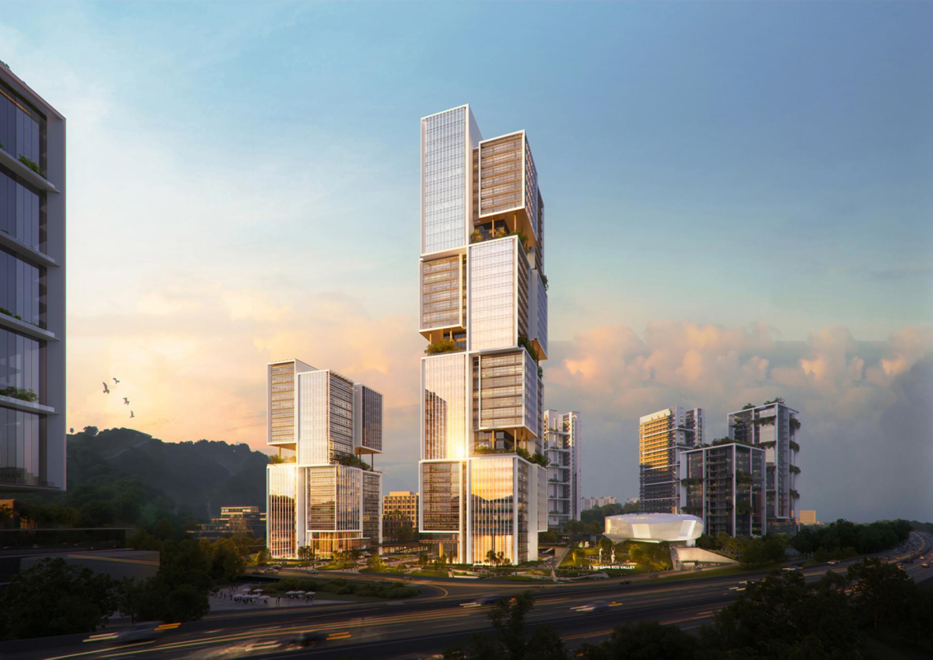 The towers are inspired by the traditional Chinese architectural materials including wood and stone. "Wood" symbolizes how modern materials and technologies can achieve modular construction. For the two main towers, the R&D office building and the zero-carbon experience center, it symbolizes the continuation of our traditional construction logic, as well as the symbol and totem of the construction industry. Meanwhile, "Stone" is the foundation and tone of the traditional oriental culture. It is manifested in the convention centre, resembling a dazzling gem shining on the Eco Valley, becoming the gateway as it faces the city.