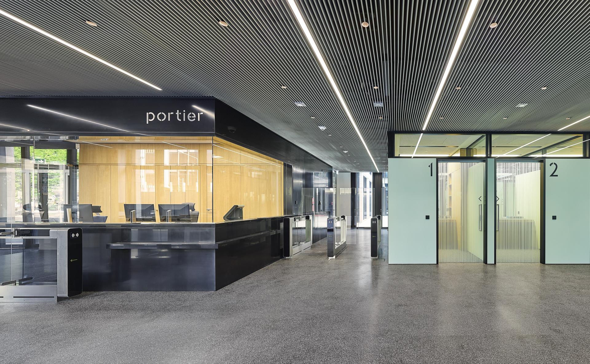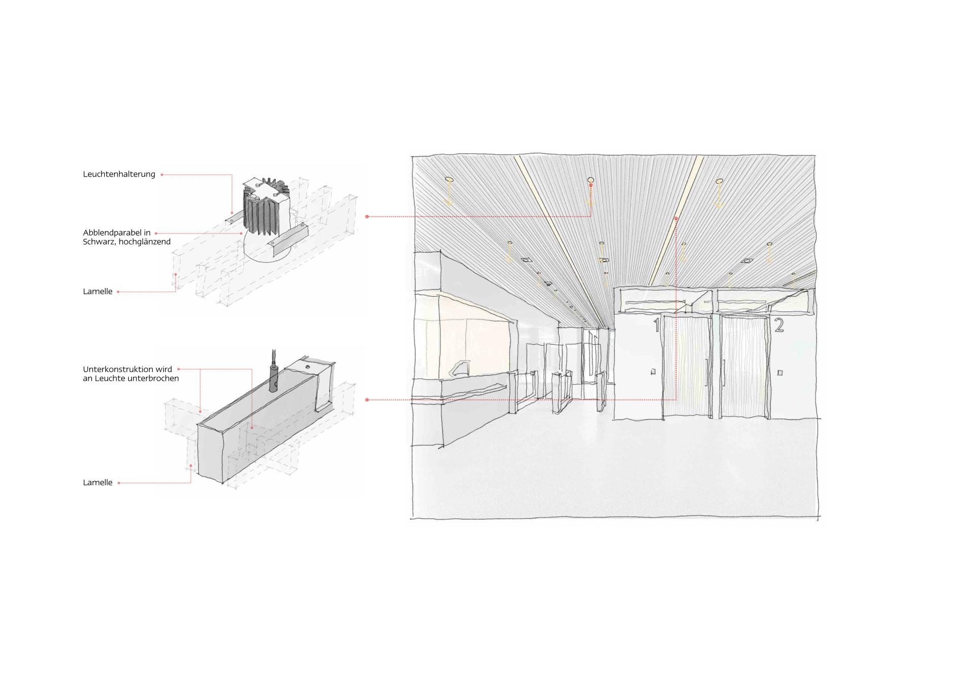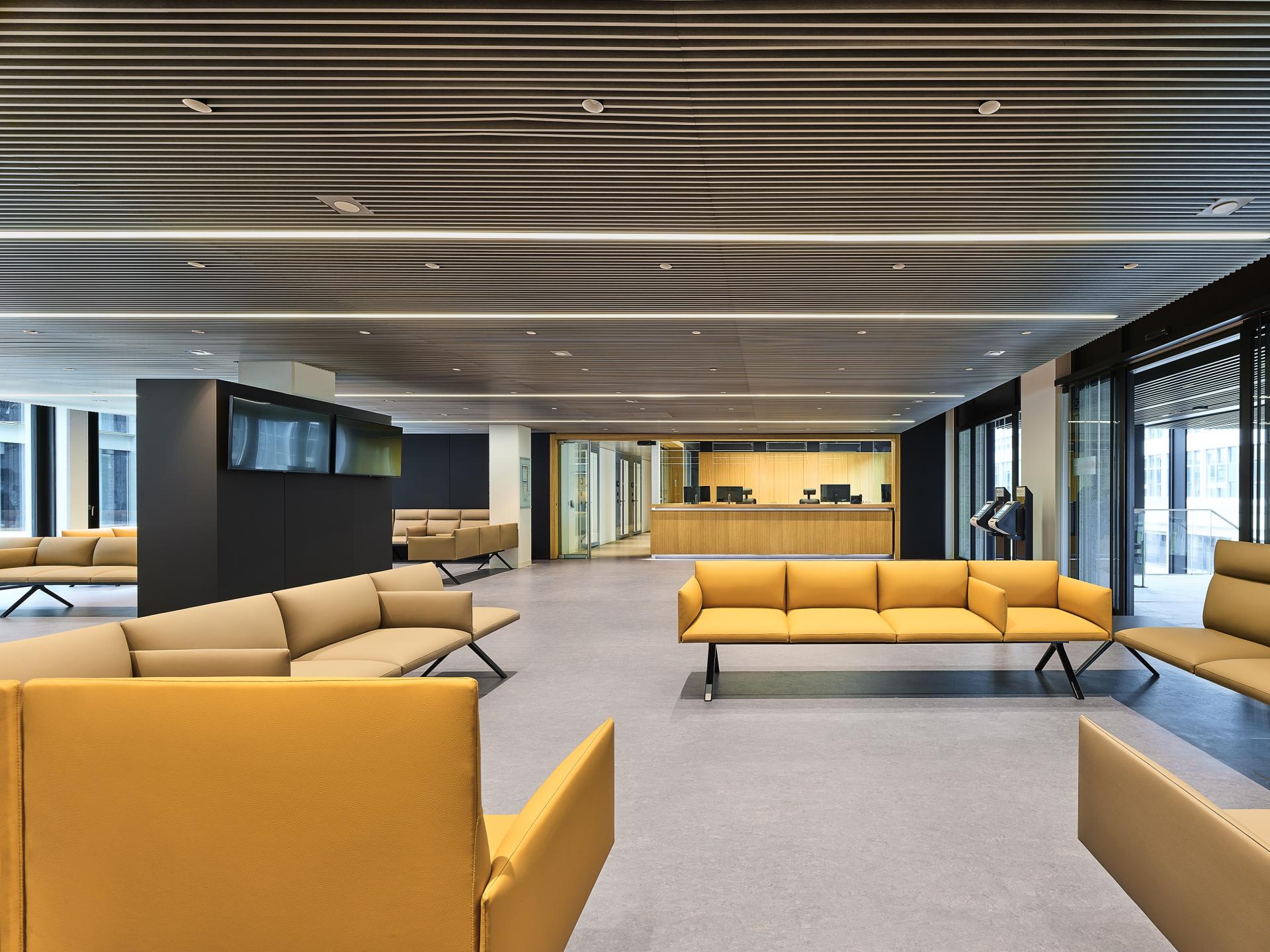In the reception and waiting hall, customised diffuse light lines and downlights are installed in the acoustic slatted ceilings. These lighting solutions are designed to blend unobtrusively into the ceiling structure while ensuring uniform, glare-free illumination.