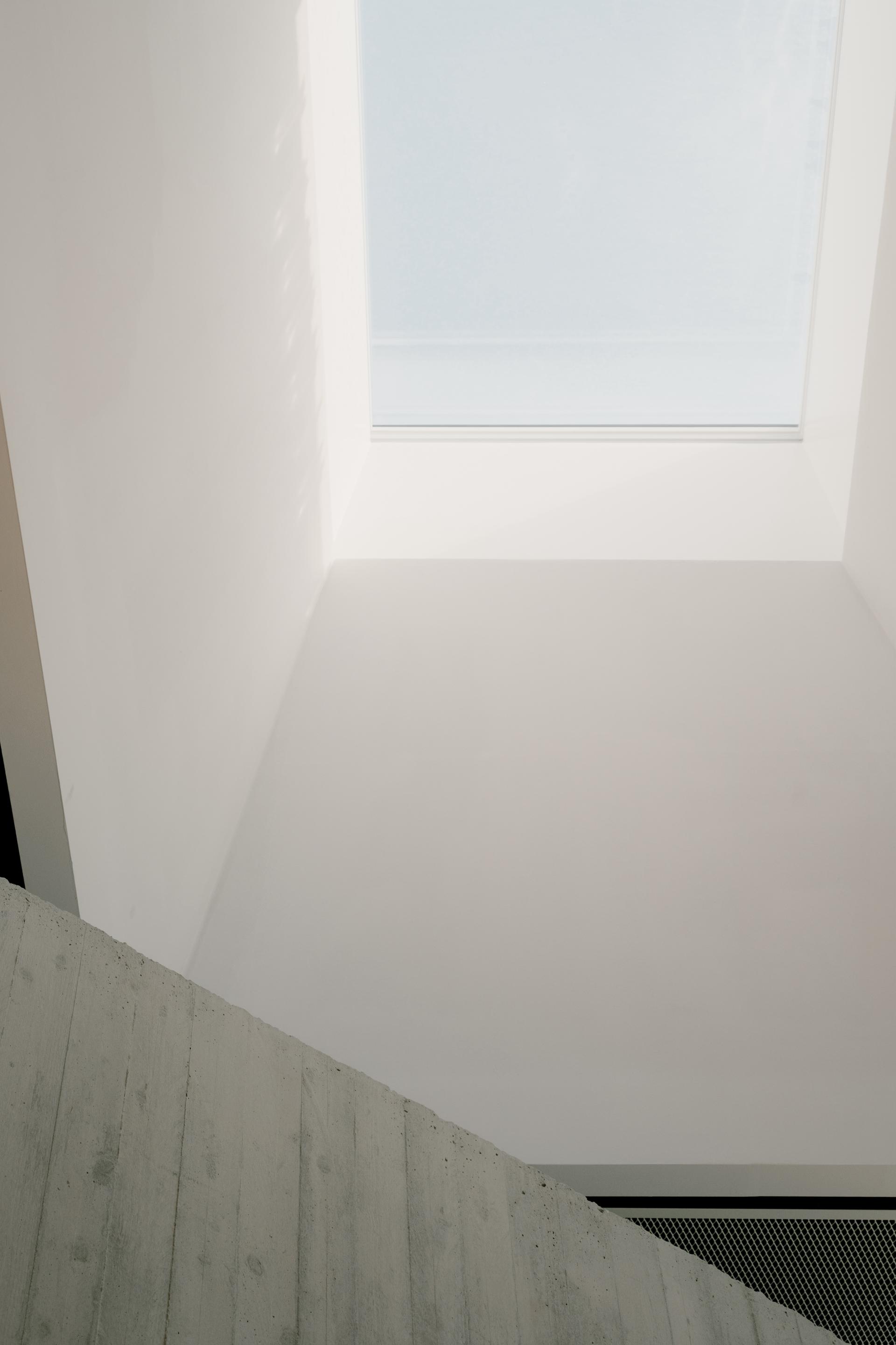 The artificial lighting blends harmoniously into the architecture. As temporary exhibitions are regularly held in the foyer, the space demanded a flexible lighting solution. The luminaire arrangement helps to illuminate the room evenly, allowing the exhibits to be positioned freely in the entire space. The positioning of the luminaires and the precise shielding ensure that the architecture is emphasised without disturbing its physical structure.