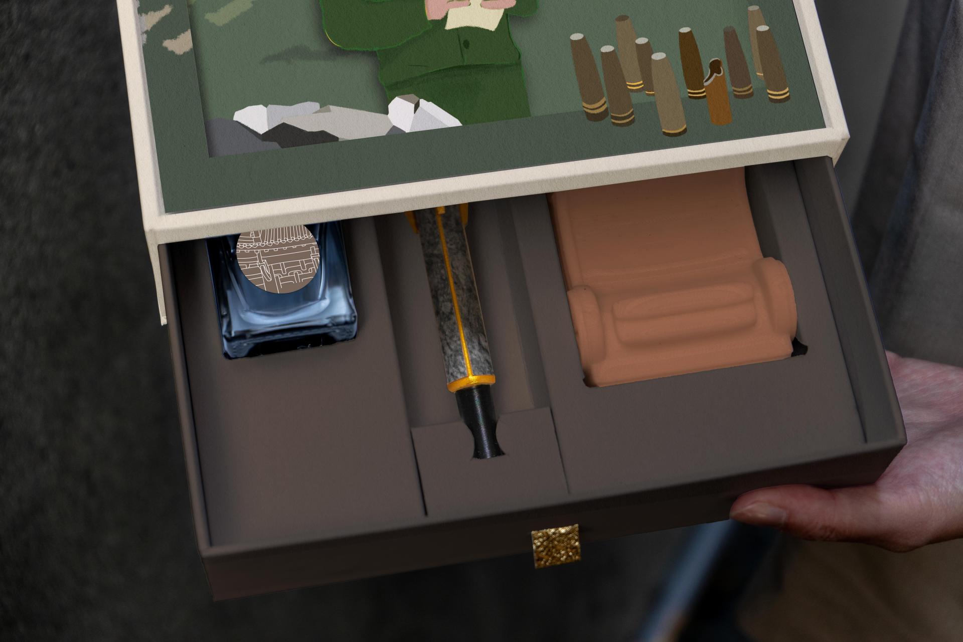 This design uses Kinmen’s cultural history as an emotional connection for the product, creating a unique fountain pen gift set. Inspired by Kinmen’s war-time history, it incorporates elements such as missiles, tanks, and battle scenes into the concept. The box interior features paper sculptures depicting Kinmen’s battles, blending storytelling with an immersive visual experience, with the goal of promoting Kinmen’s local culture.