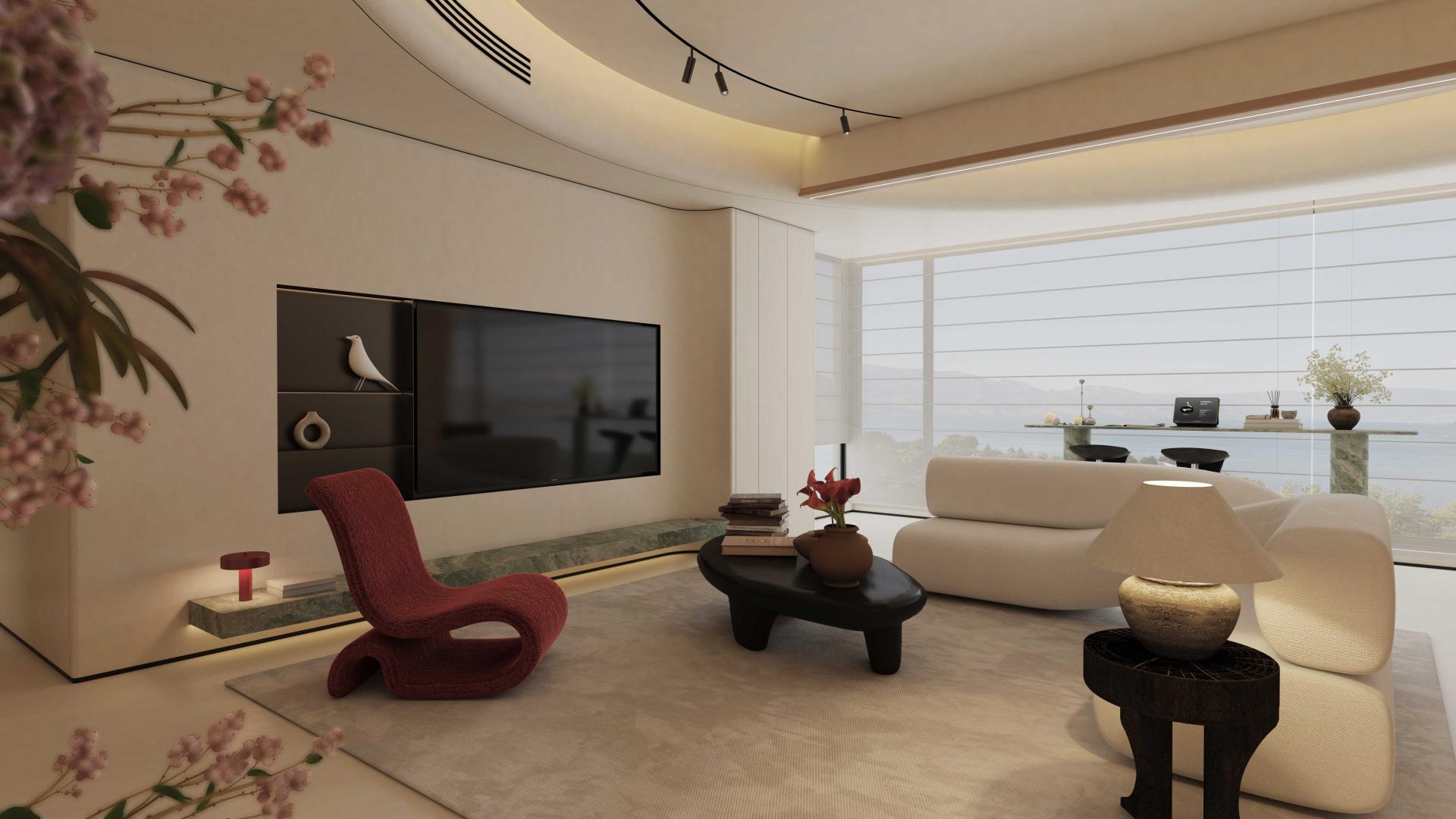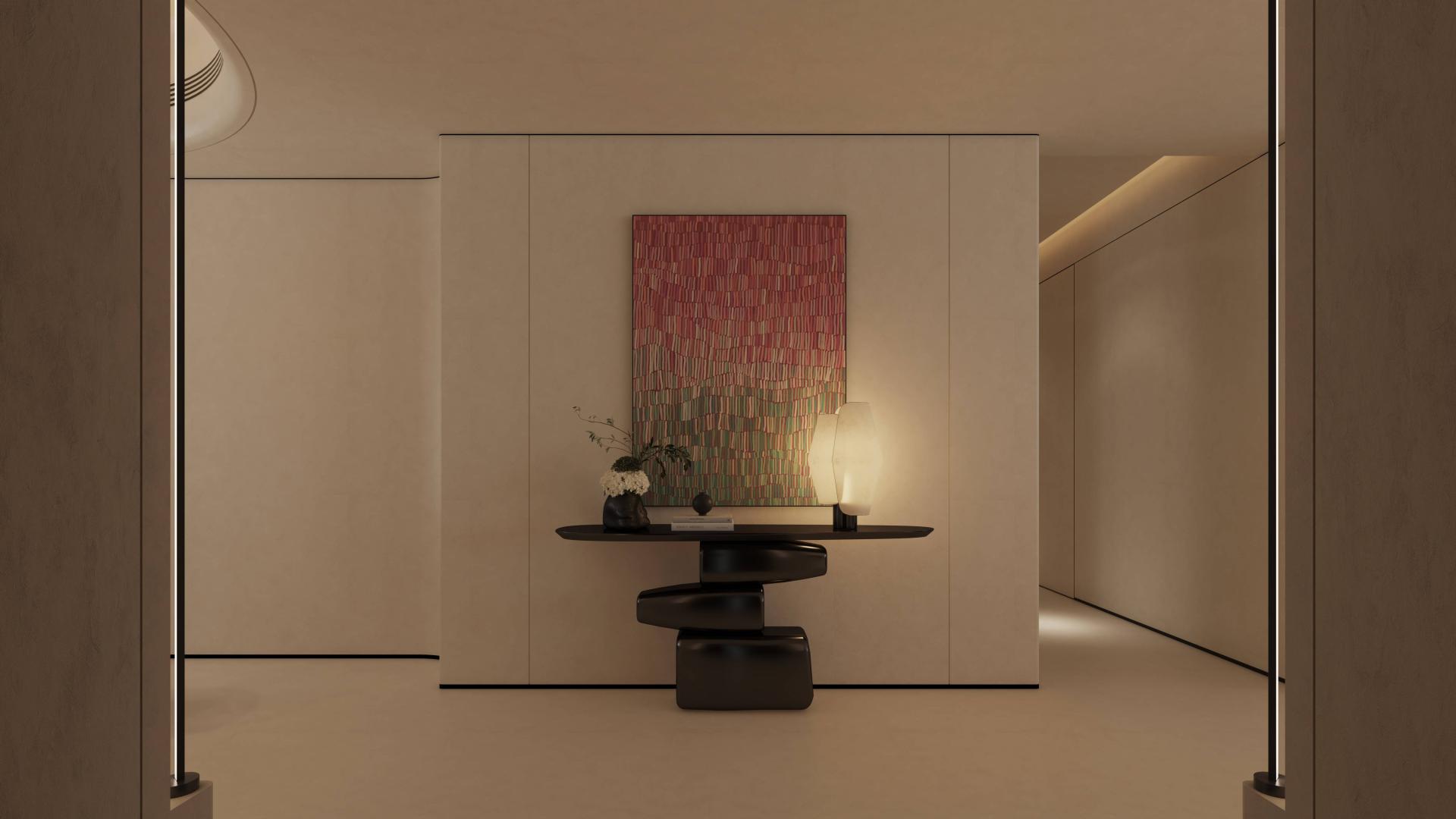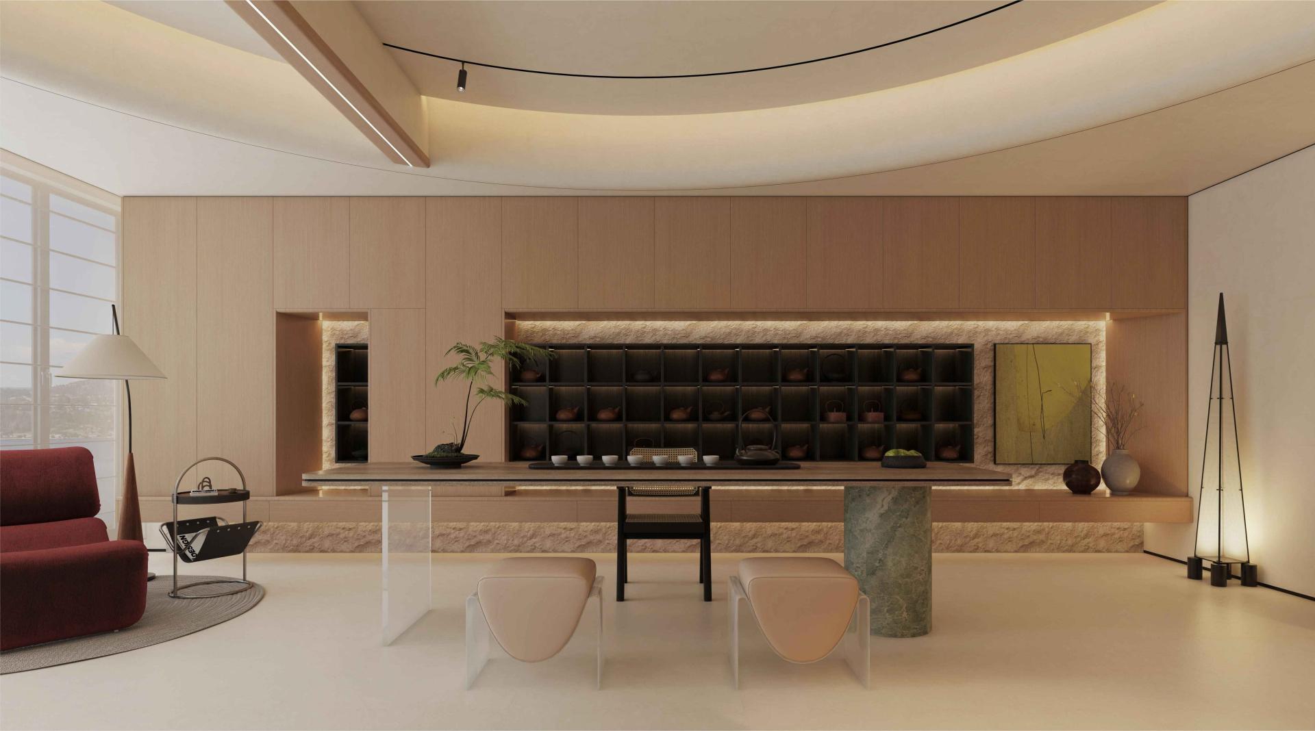 The overall space is based on the minimalist wabi-sabi style. By using warm and textured solid wood and a large area of blank space, it creates a peaceful atmosphere similar to that of the mountains and wilderness. The extensive use of curved elements, such as the gentle turns of the walls and the smooth lines of the ceiling, are as natural and soothing as the bays along the rivers in the mountains. The hard decoration design adheres to the concept of "removing the complex and keeping the simple", abandoning redundant decorations and complicated shapes, and returning to the balance between functionality and aesthetics. In terms of soft decoration matching, natural materials and ornaments such as linen and cotton-linen are selected to showcase a simple Zen meaning and warmth.