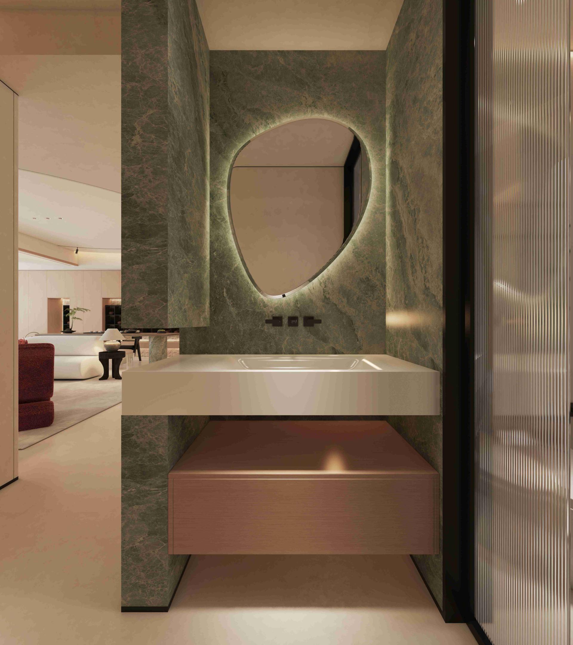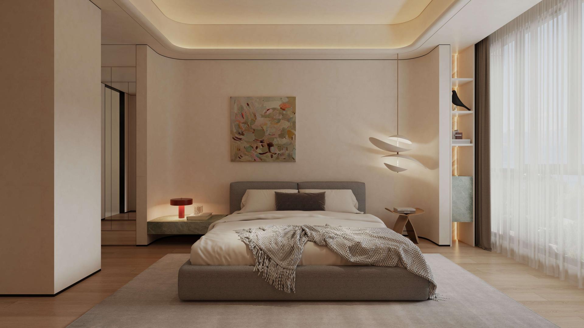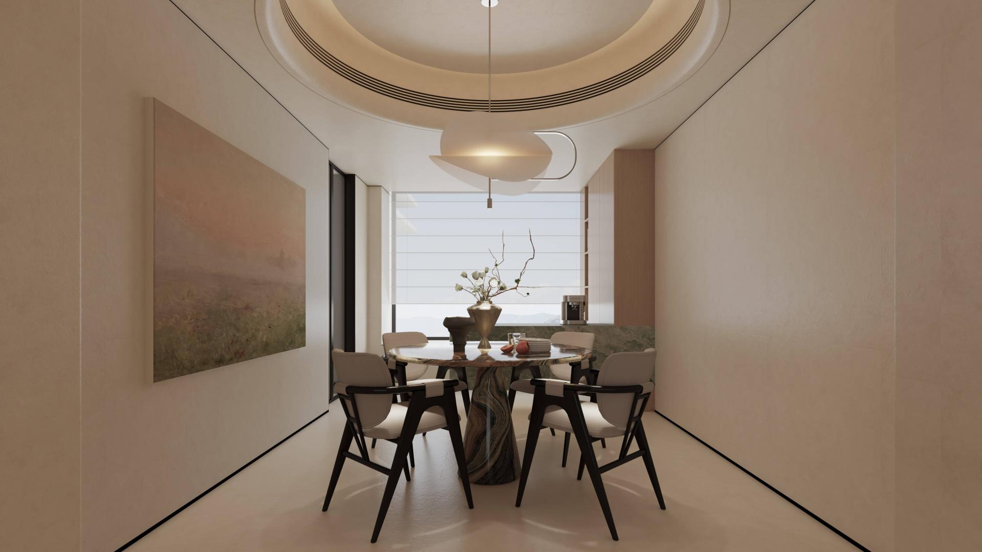 The overall space is based on the minimalist wabi-sabi style. By using warm and textured solid wood and a large area of blank space, it creates a peaceful atmosphere similar to that of the mountains and wilderness. The extensive use of curved elements, such as the gentle turns of the walls and the smooth lines of the ceiling, are as natural and soothing as the bays along the rivers in the mountains. The hard decoration design adheres to the concept of "removing the complex and keeping the simple", abandoning redundant decorations and complicated shapes, and returning to the balance between functionality and aesthetics. In terms of soft decoration matching, natural materials and ornaments such as linen and cotton-linen are selected to showcase a simple Zen meaning and warmth.