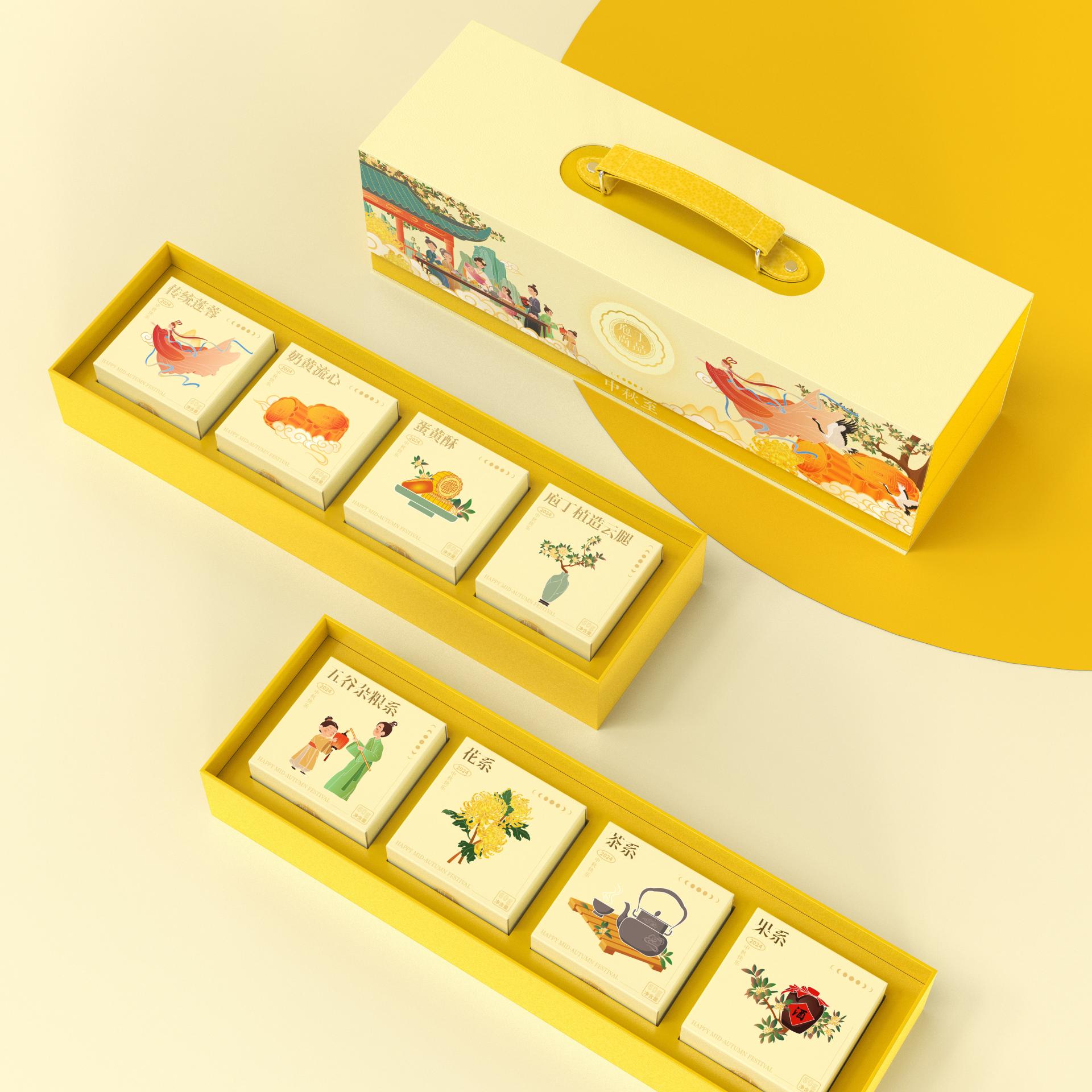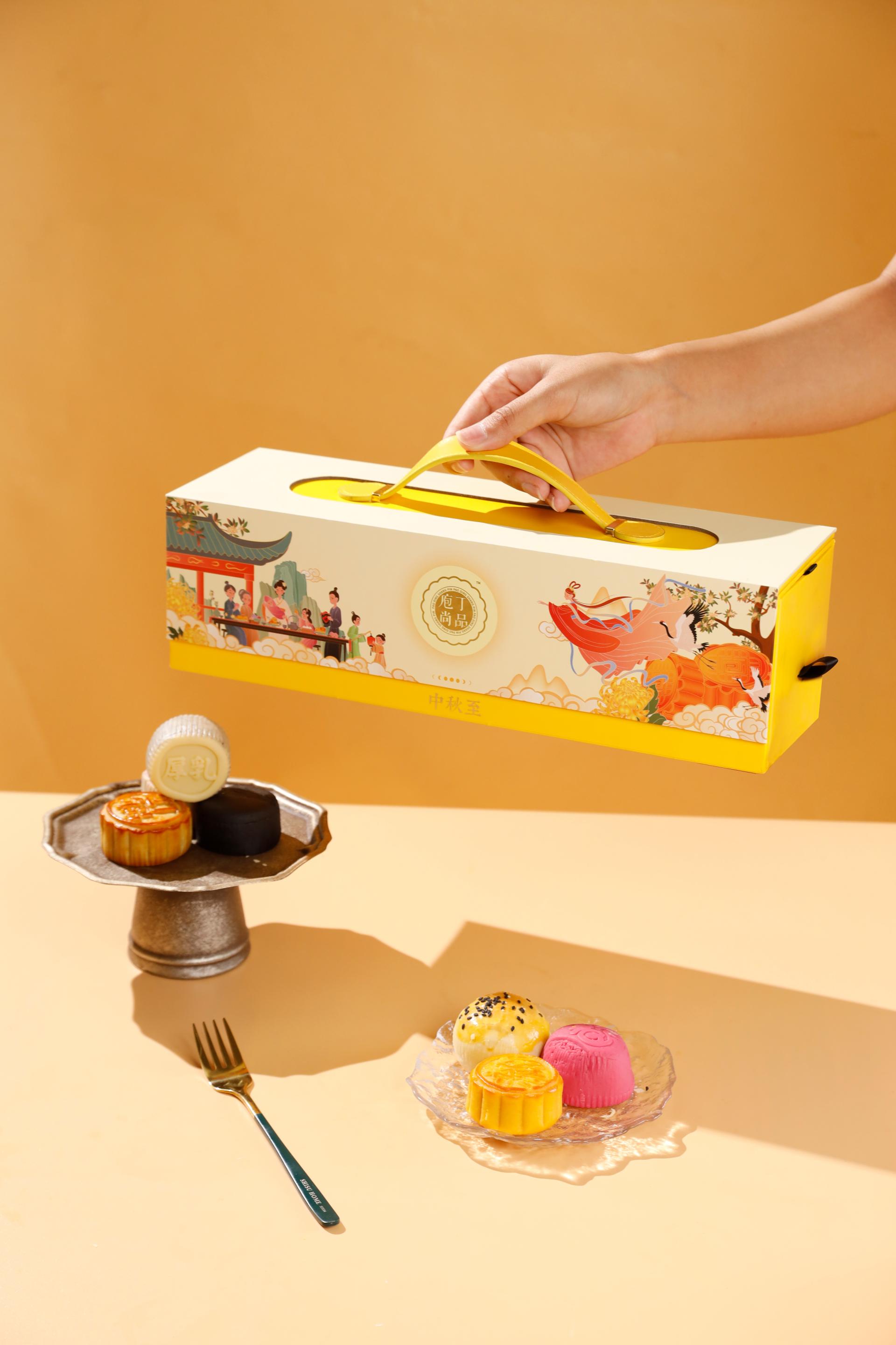 The gift box as a whole embodies meticulously crafted design language that crystallizes centuries-old cultural heritage within its refined dimensions. Through sophisticated visual storytelling, it not only captures the poetic essence of floral beauty and lunar perfection intrinsic to the Mid-Autumn Festival, but also symbolically portrays a flourishing nation basking in peace and prosperity. This artistic interpretation elevates traditional festive aspirations into contemporary expressions of national auspiciousness and universal happiness.