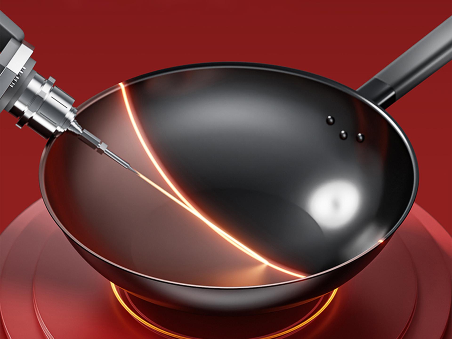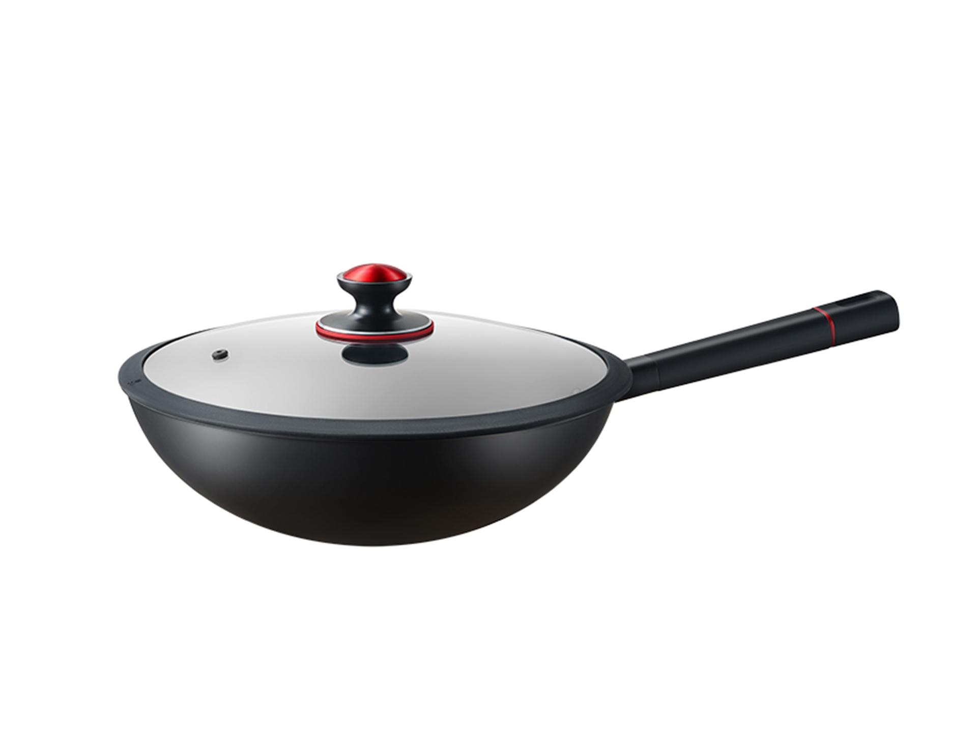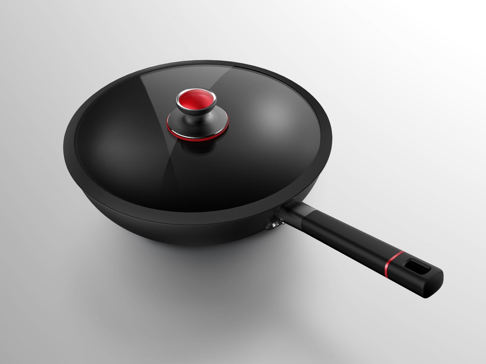 This wok enhances the cooking experience by addressing common issues such as loose handles on both the wok body and lid, flaking coatings, and food sticking. The lid handle draws inspiration from traditional Chinese imperial court’s ceremonial headwear, featuring unique curves and rounded edges that evoke the image of a treasure pot—a symbol of good fortune and wealth. This design offers both visual elegance and emotional satisfaction to the users.