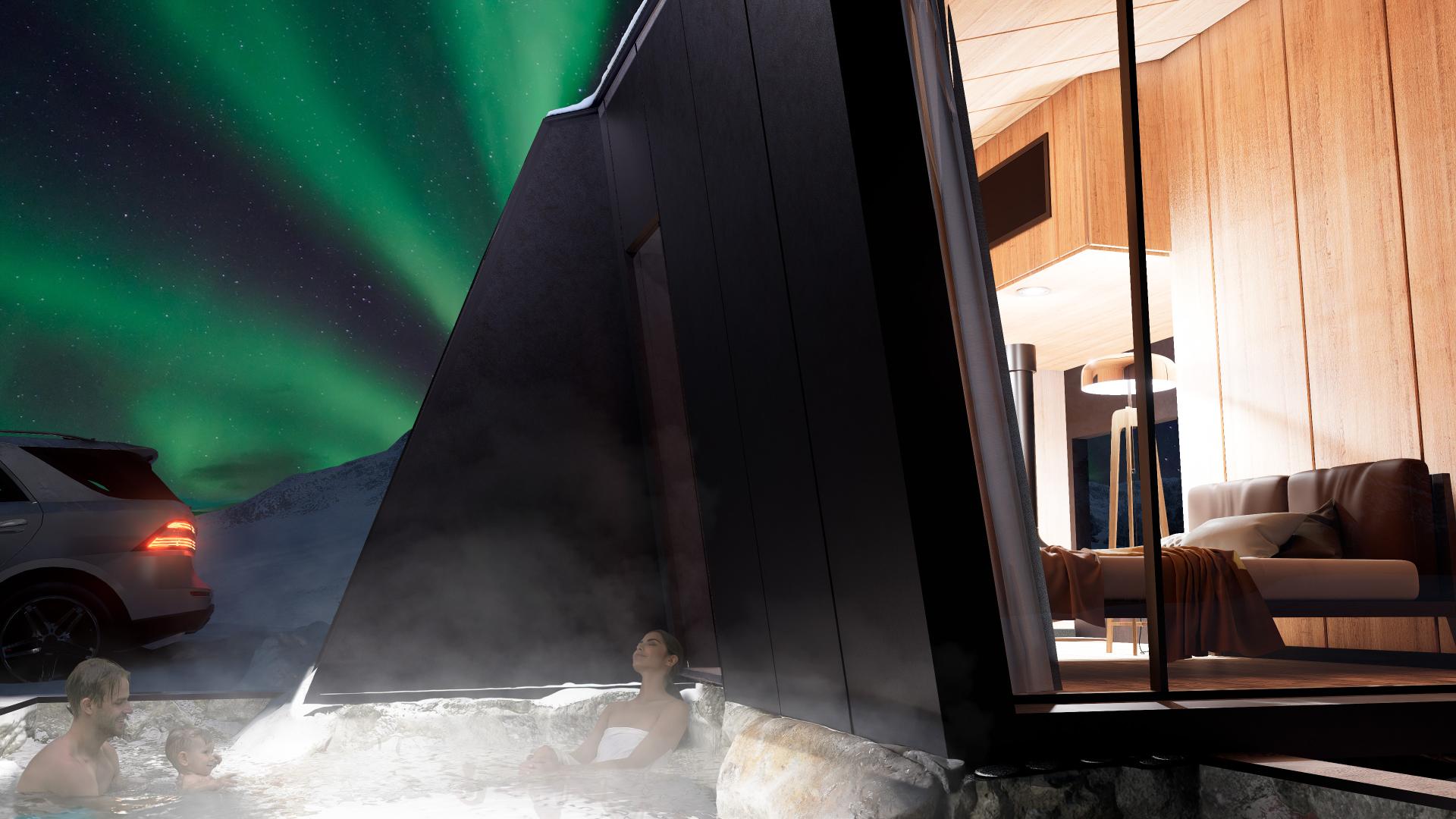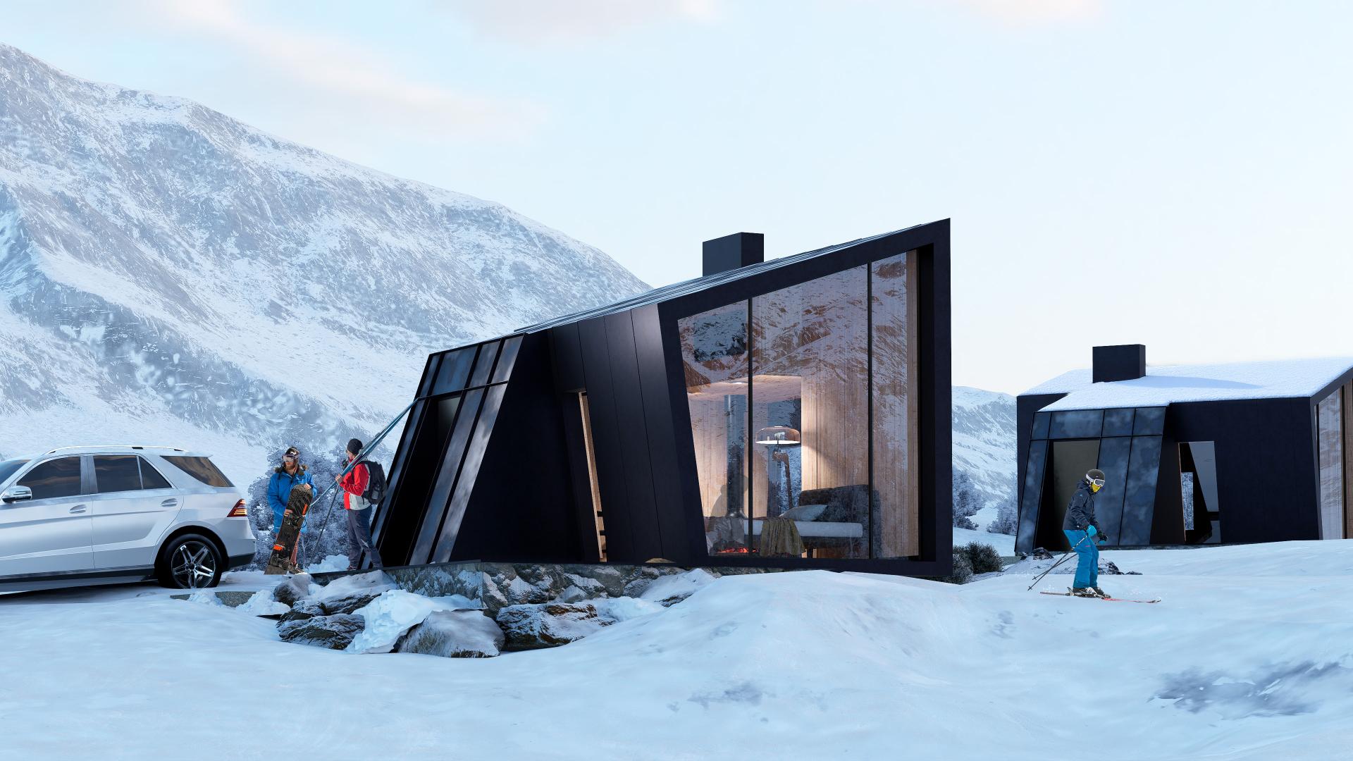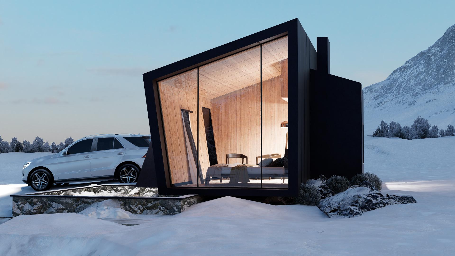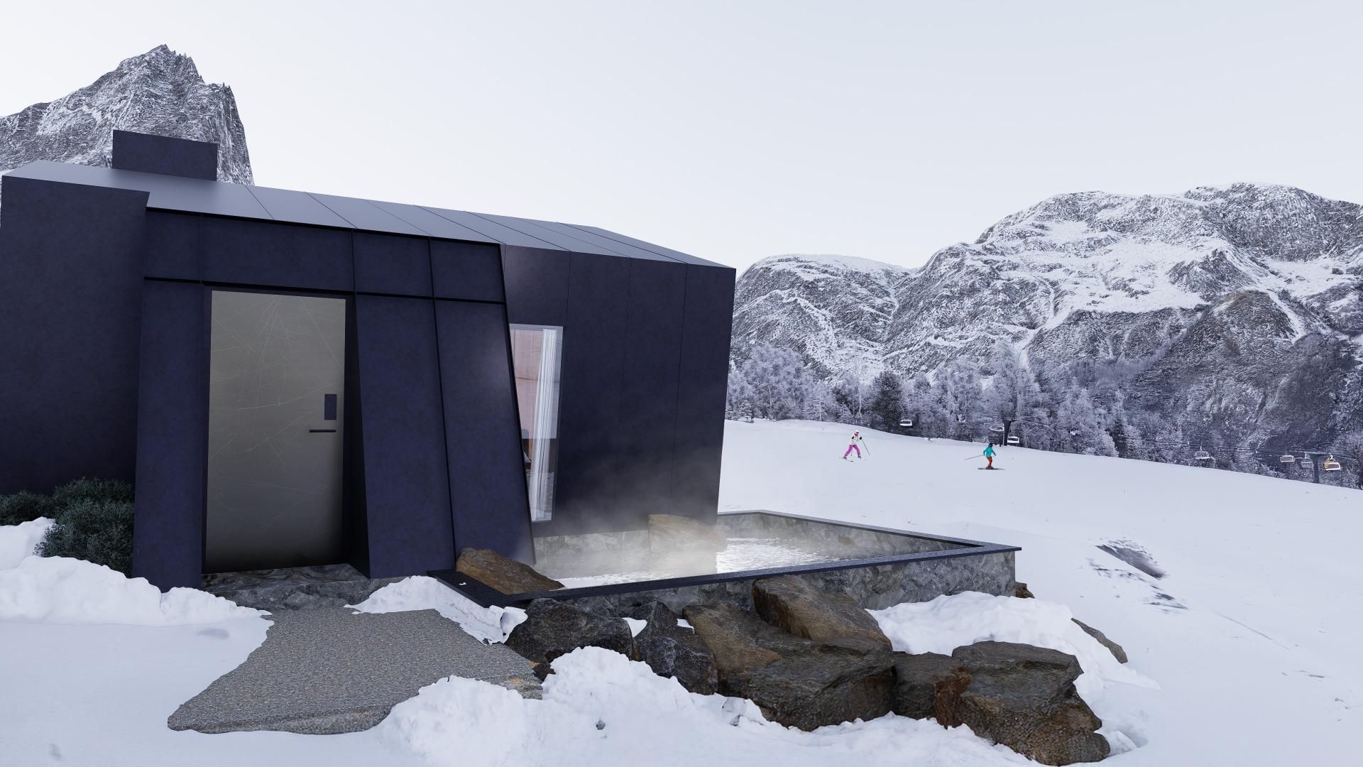 Nestled in the heart of the alpine wilderness, Obsidian is a tiny resort of modular ski-in/ski-out cabins, where the elements of skiing, snow, and geothermal wellness are seamlessly woven into a singular experience. Like shards of volcanic rock embedded in the landscape, its black metal facades contrast with the white terrain, standing bold against the snow. Designed for effortless access to the slopes, each cabin eliminates the transition between sport and rest, allowing skiers to step directly from the warmth of the interior onto the open trail. Within its compact 25 sqm footprint, the space is carefully crafted to include a sleeping area, seating, a compact workspace, and designated ski storage, maximizing efficiency without sacrificing comfort. A geothermal-assisted hot spring provides a natural recovery space, enhancing relaxation after a day on the slopes. Prefabrication allows for low-impact construction, enabling rapid assembly in remote locations. Multiple cabins form a community with centralized public bath and restroom facilities, balancing the privacy of individual retreats with a shared experience of alpine living. Obsidian is more than a winter shelter—it is an immersive retreat where movement, landscape, and architecture become one.