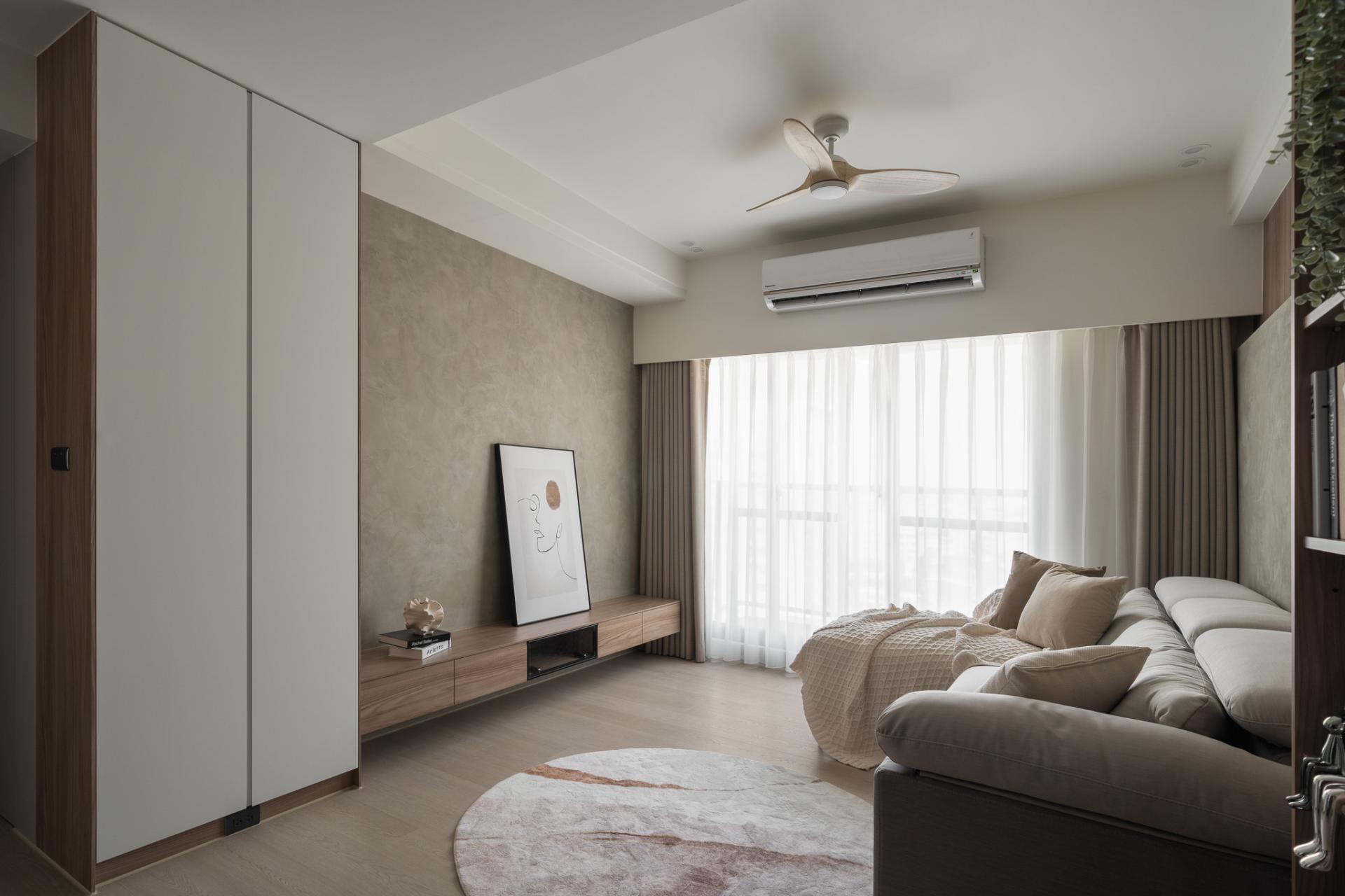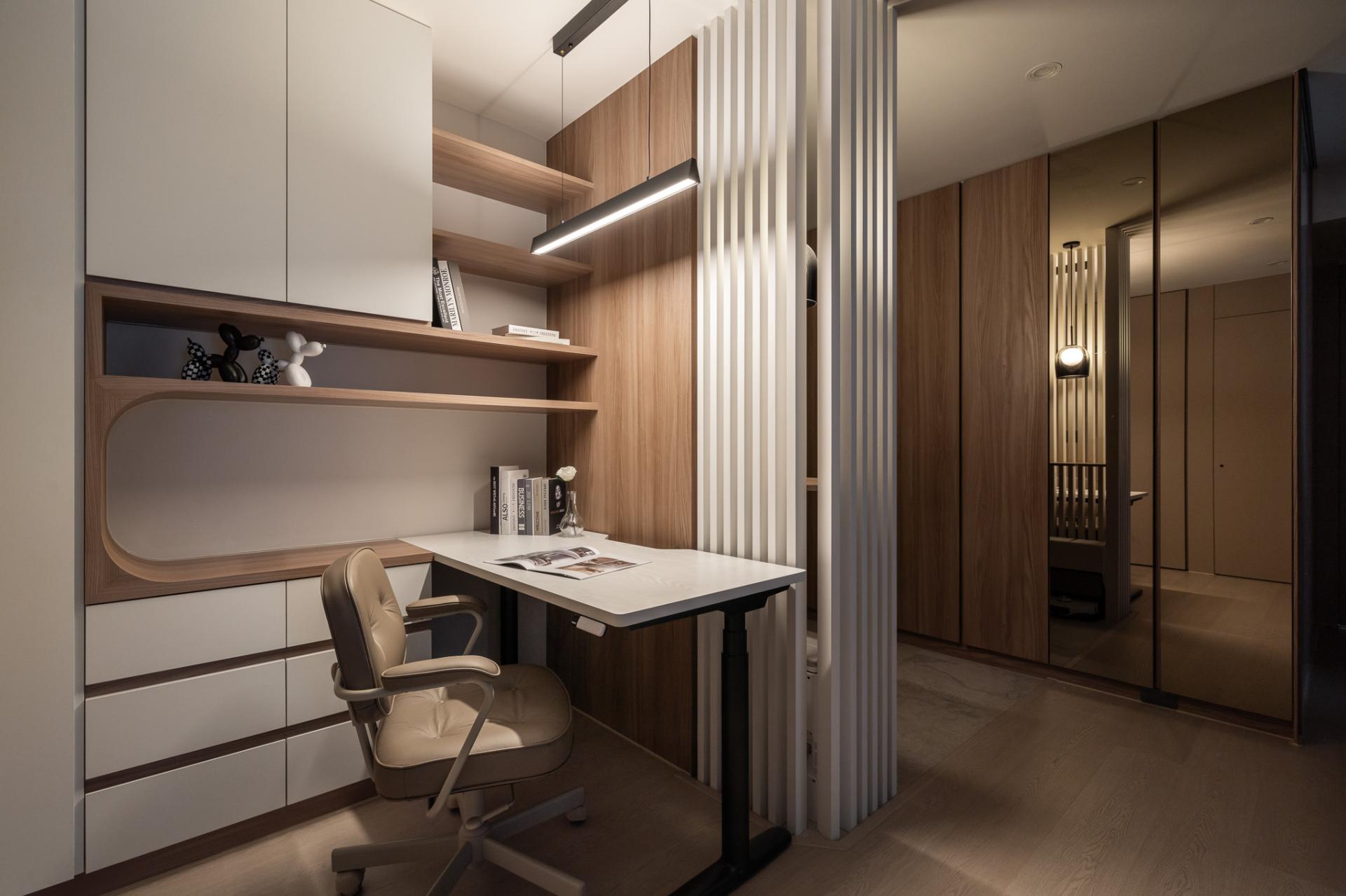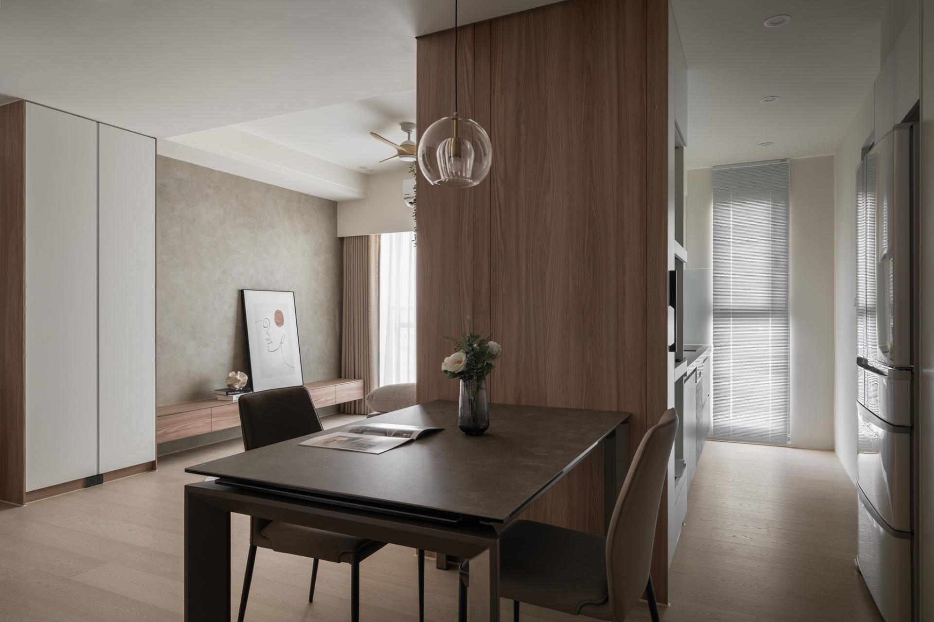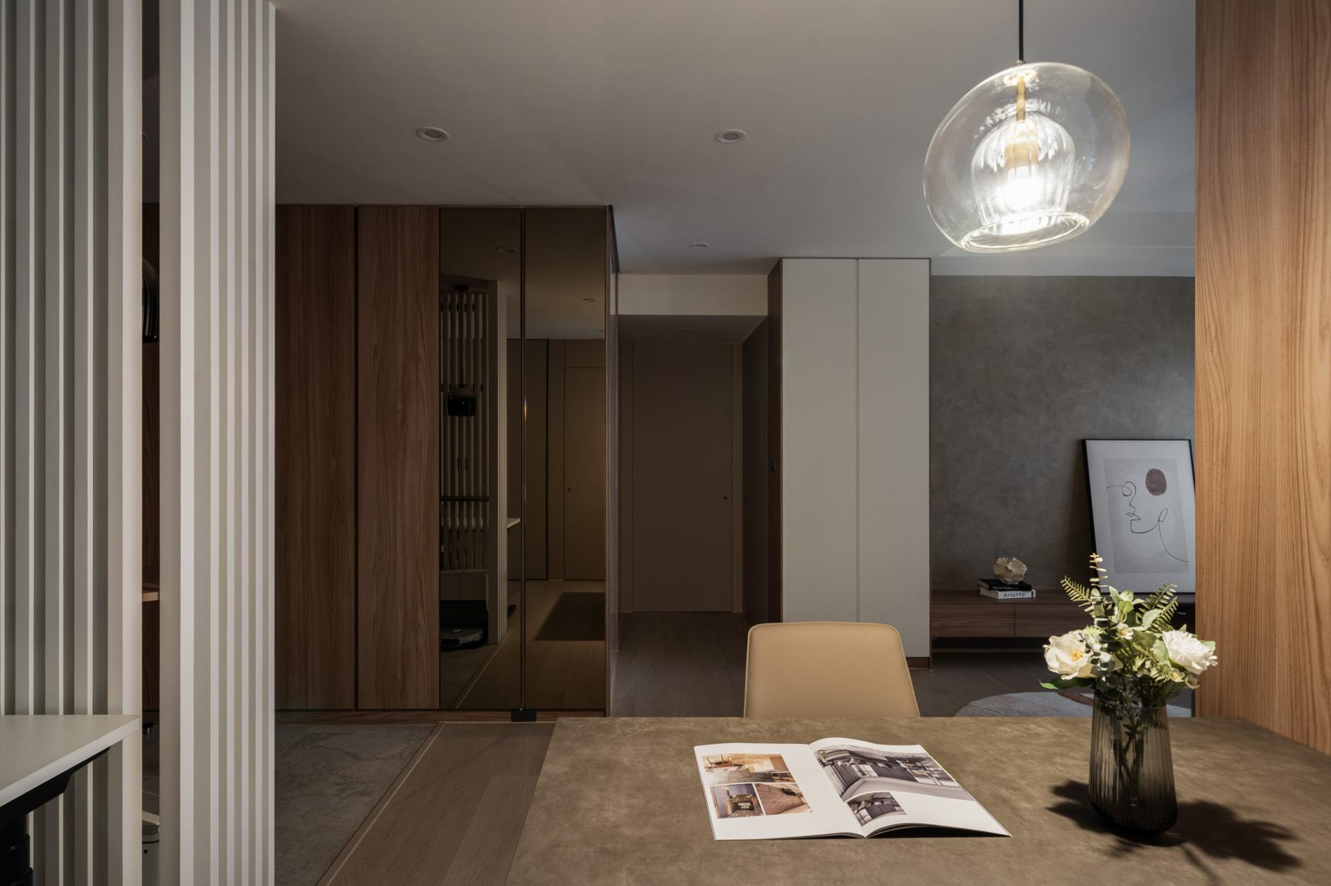 This 12-ping (approximately 39.6 square meters) home belongs to a young couple and their infant child. Through thoughtful design, they aim to create a cozy and inviting space filled with warmth. The overall design features soft color tones, curved elements, and warm lighting, balancing aesthetics and functionality. Rounded corners ensure safety as their child learns to walk, while the open layout seamlessly connects the living and dining areas, enhancing the sense of spaciousness. The extendable dining table symbolizes the continuity of family bonds, and the entryway is equipped with storage cabinets for organization and convenience. The wife’s workspace is subtly separated by a lattice partition, maintaining both independence and connection. A home is more than just a place to live—it is a vessel for happiness, capturing life's precious moments and allowing love and memories to flow naturally.