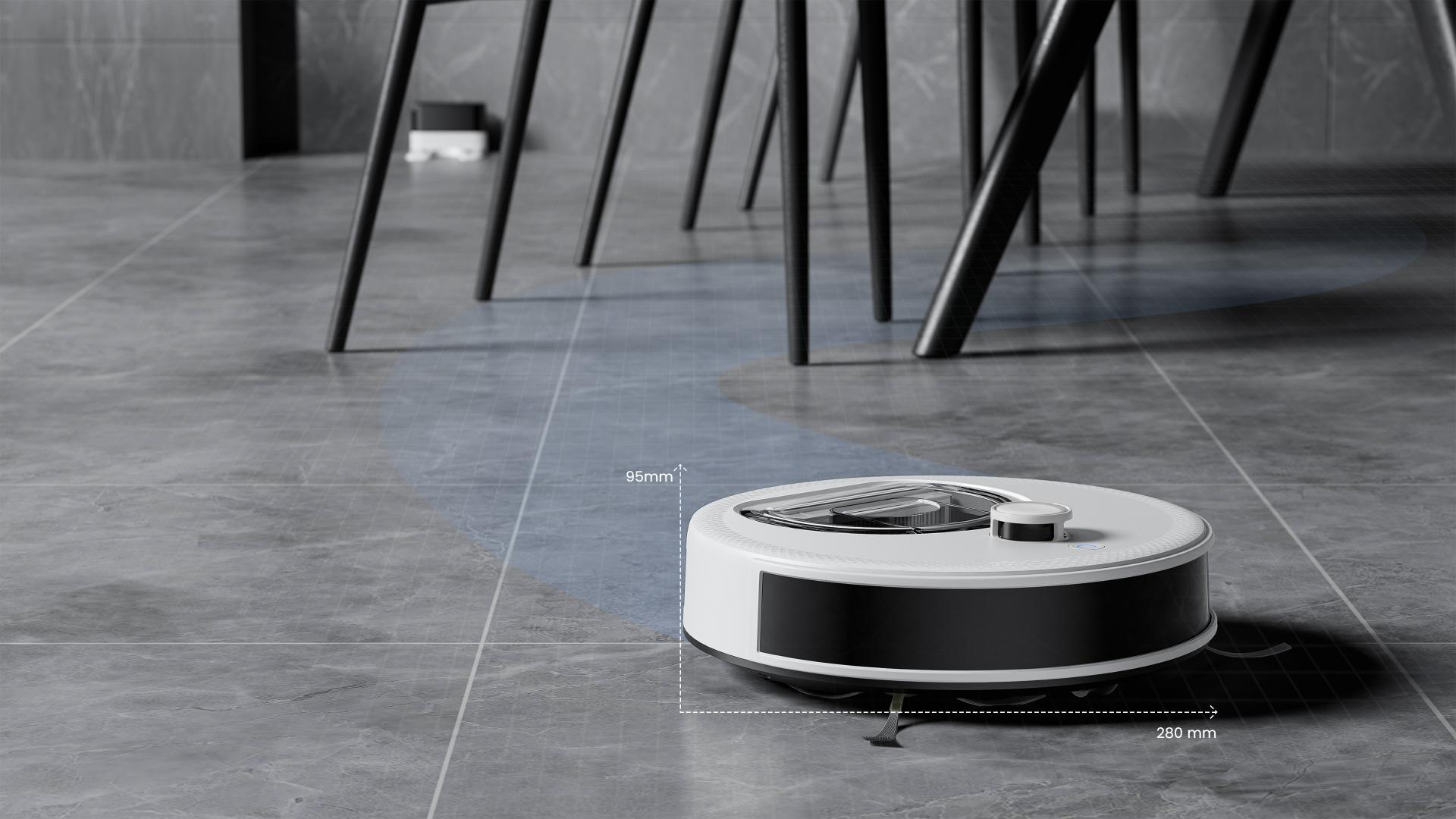 The L6 breaks through the common pain points of traditional robot vacuums, such as large size and frequent collision malfunctions. Featuring a minimalist Freemove integrated body design, it simplifies redundant structures, ensuring better stability. Its compact size (only 280*280*95mm) makes it space-saving and easy to move. With highly flexible obstacle-avoidance technology, the L6 effortlessly navigates under low sofas, beds, furniture legs, and in tight corners, providing an efficient whole-house smart cleaning experience. Equipped with a large-capacity vacuum nozzle and an exposed dustbin, the L6 perfectly meets cleaning needs in limited spaces.