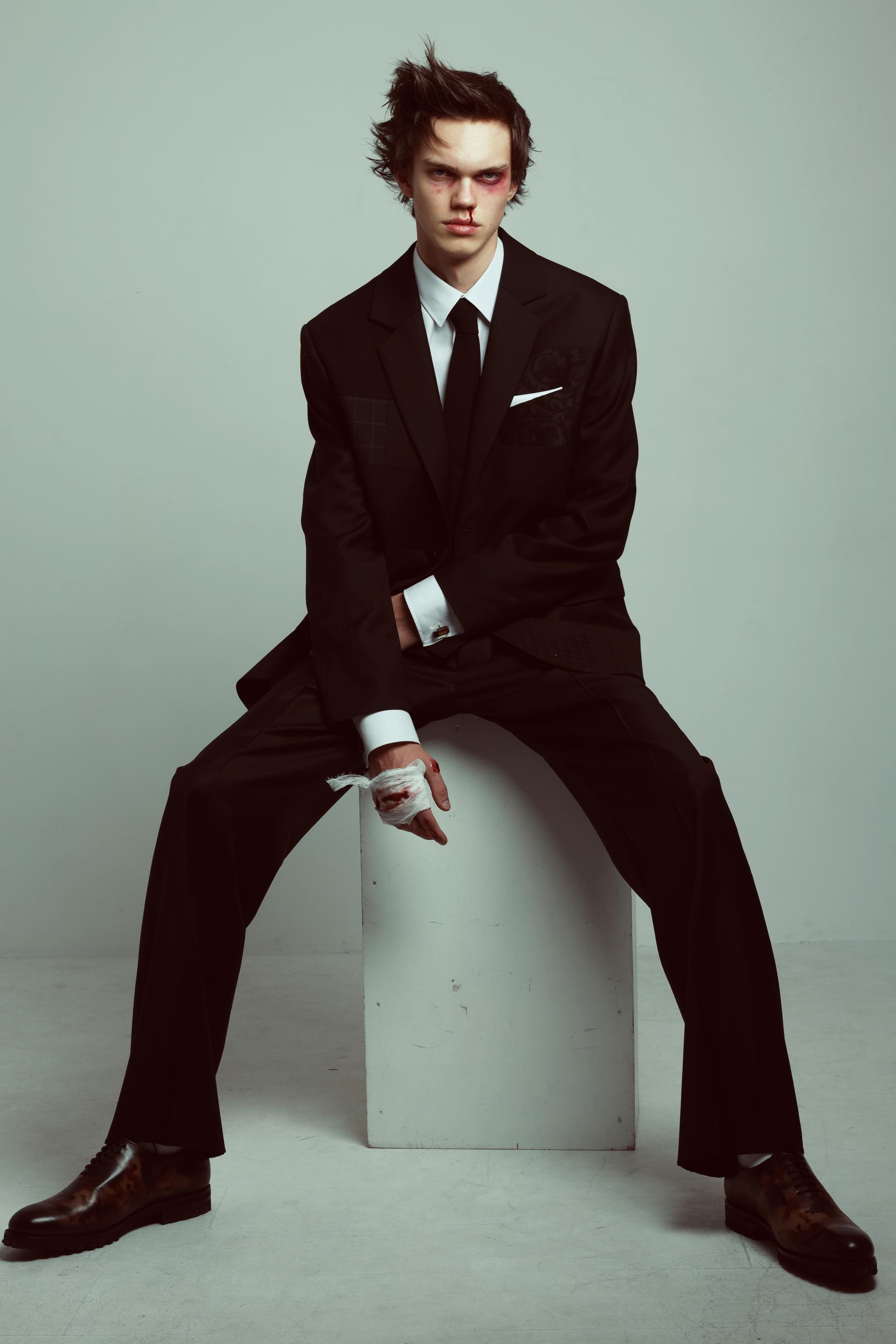 This is about me and you, about our choices and their consequences. The battlefield is a metaphor not only for physical but also for internal wounds left by the modern fashion industry: excessive consumption, environmental pollution, and exploitation. The modern suit, inspired by national identity expressed through subtle design solutions, becomes not only an outfit but a social statement—it embodies the system itself, power, political games, but also resistance. In the context of fashion, it represents one of the most long-lasting garments, closely aligned with the philosophy of slow fashion, transcending any fleeting trends with its visual impact.