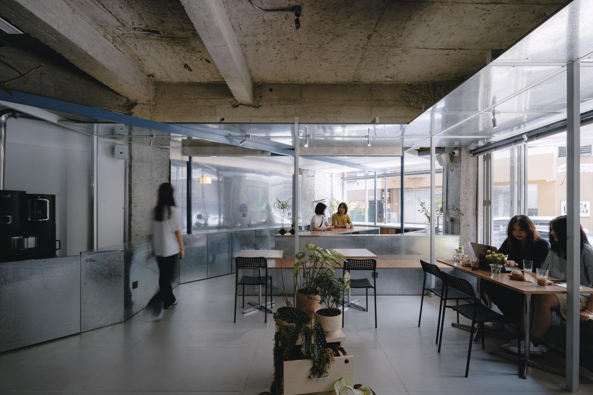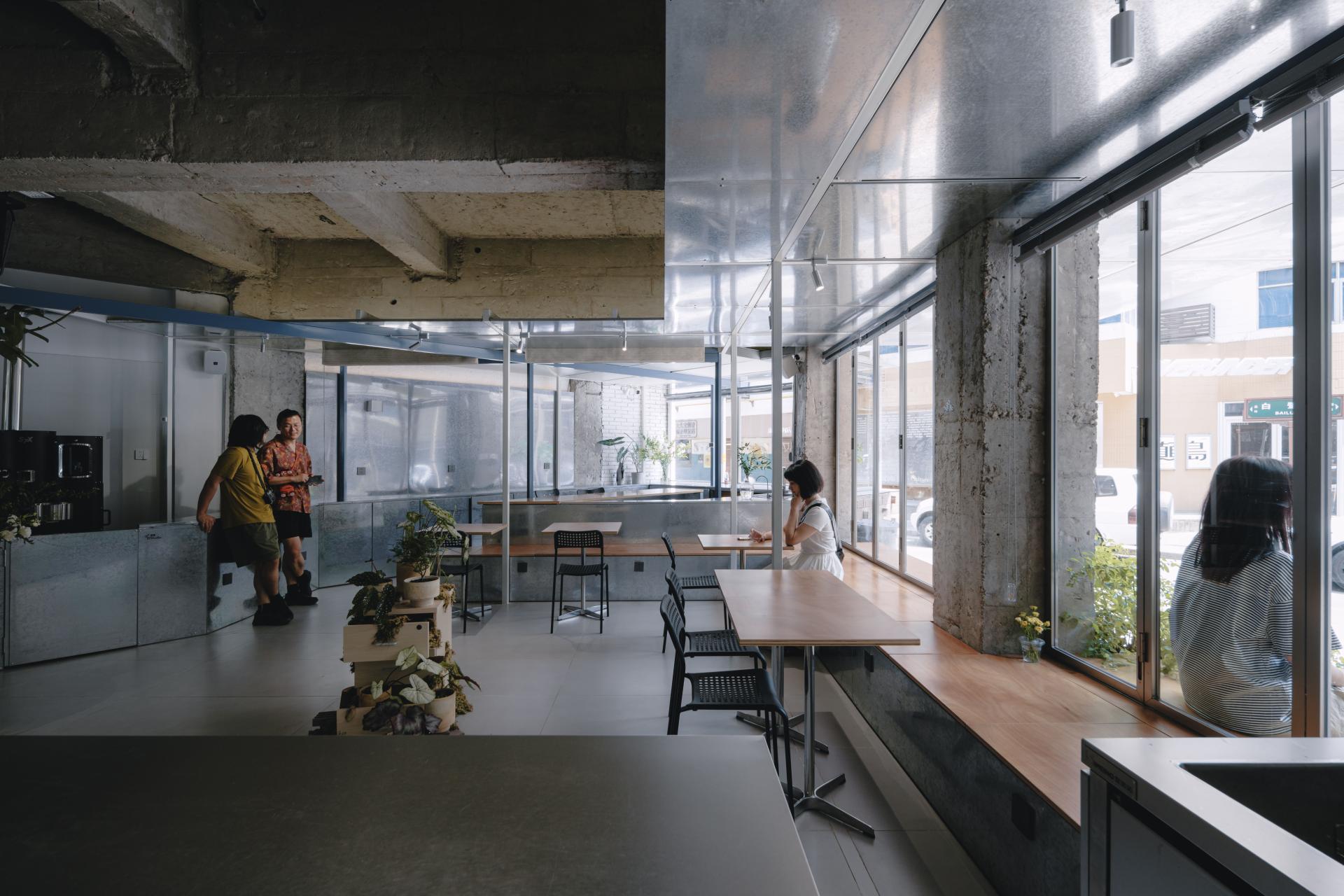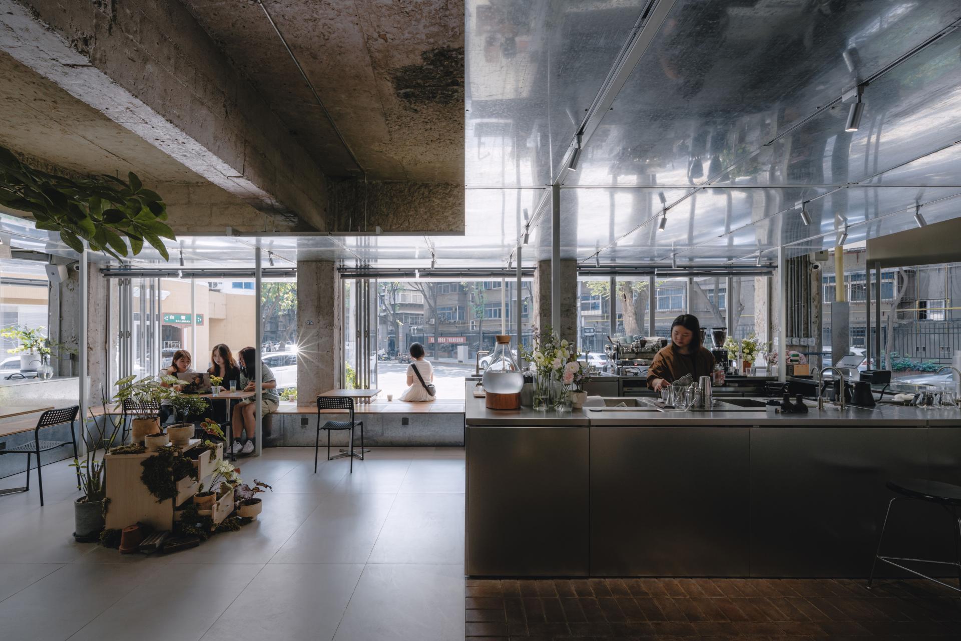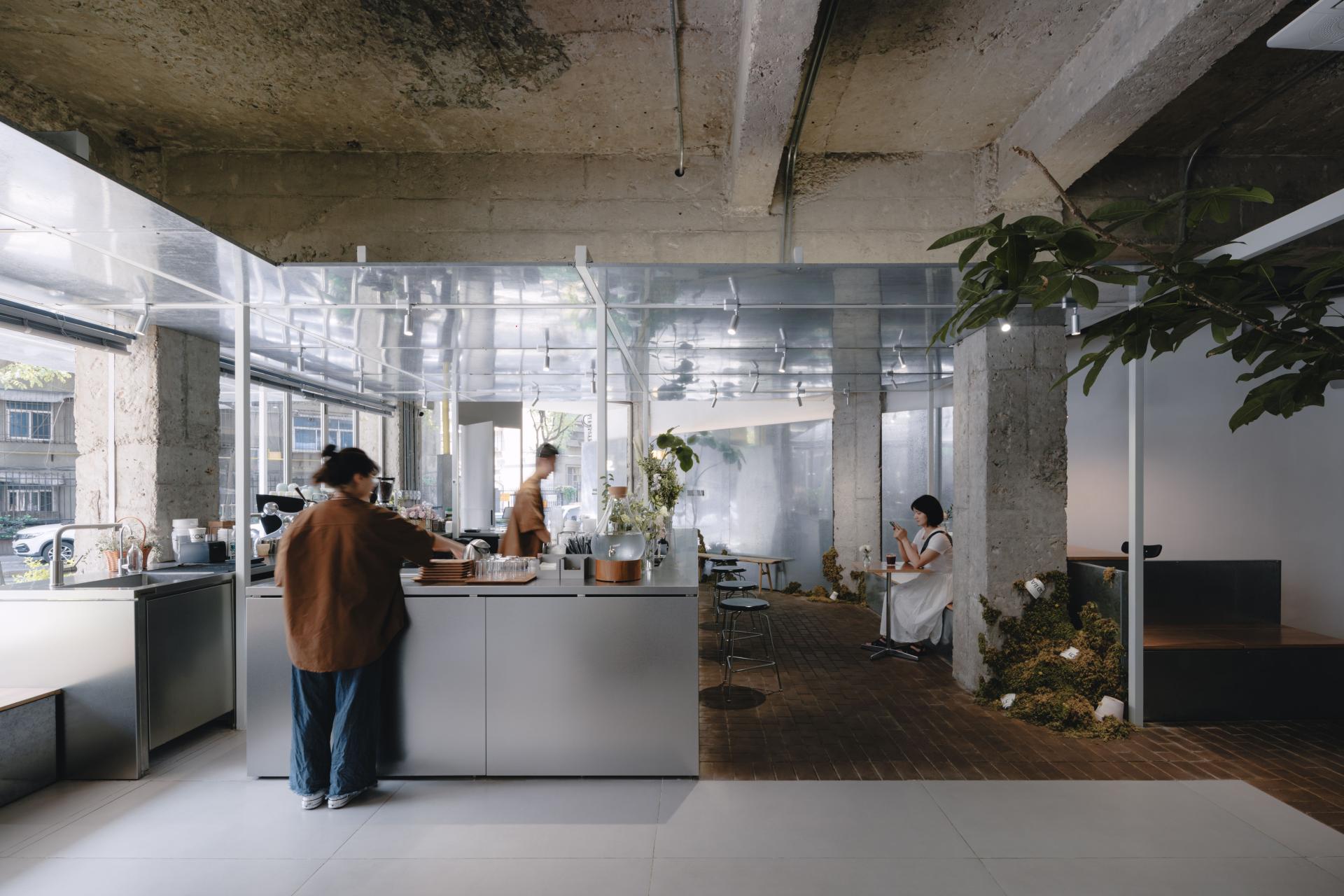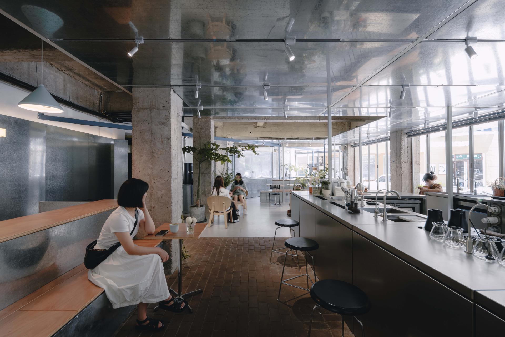 The project is located at a street corner within the Bailuwan Community, inside the southwestern corner of Xi'an's Ming City Wall. The design redefines the relationship between the building and the street, blurring the boundaries between inside and outside. Through the introduction of a new 2.4-meter-high lightweight steel structure, a contrast is created with the old concrete structure, together forming a new spatial relationship. Along the spatial boundaries, folded galvanized iron sheet walls are integrated with furniture, further defining different functional zones (coffee area, bean roasting area, omakase area, and office/study area) while enclosing a central "void" – a multifunctional activity space.This central area serves as a coffee shop during regular hours and transforms into a flexible gathering space during events. These functions are both independent and interconnected, coexisting within the same continuous space. The galvanized iron sheet roof of the lightweight steel structure extends from the interior to the exterior, reflecting the bustling street life into the interior, becoming a visual focal point that enhances the fluidity between indoor and outdoor spaces.