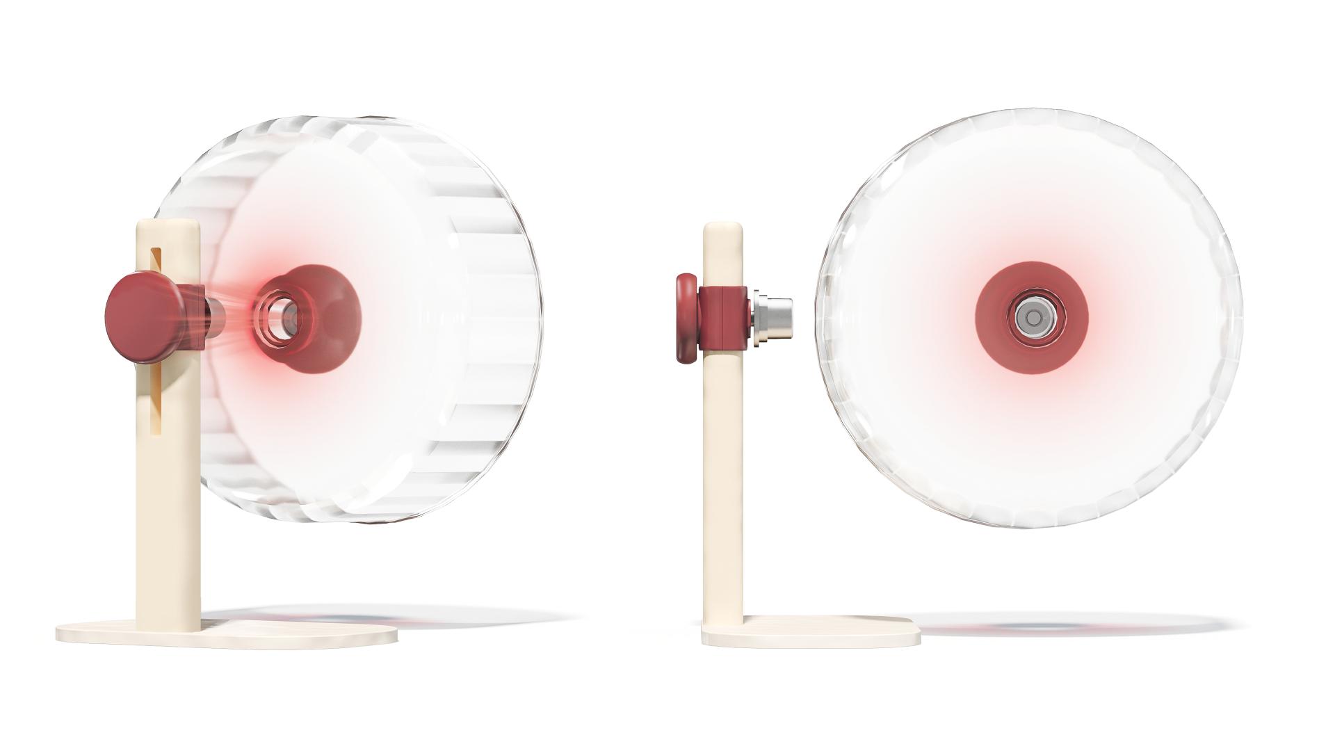 The CC wheel adopts a minimalist screwless design that creates a harmonious and unified aesthetic. The beige stand pairs with a red knob cover to continue the brand’s warm vibrancy. The knob surface is coated with a rubberized finish, providing a comfortable, non-slip grip. The transparent gradient PC wheel is visually striking and seamlessly integrates into any environment, allowing for easy monitoring of pet activity to prevent overexertion and ensuring both functionality and style.