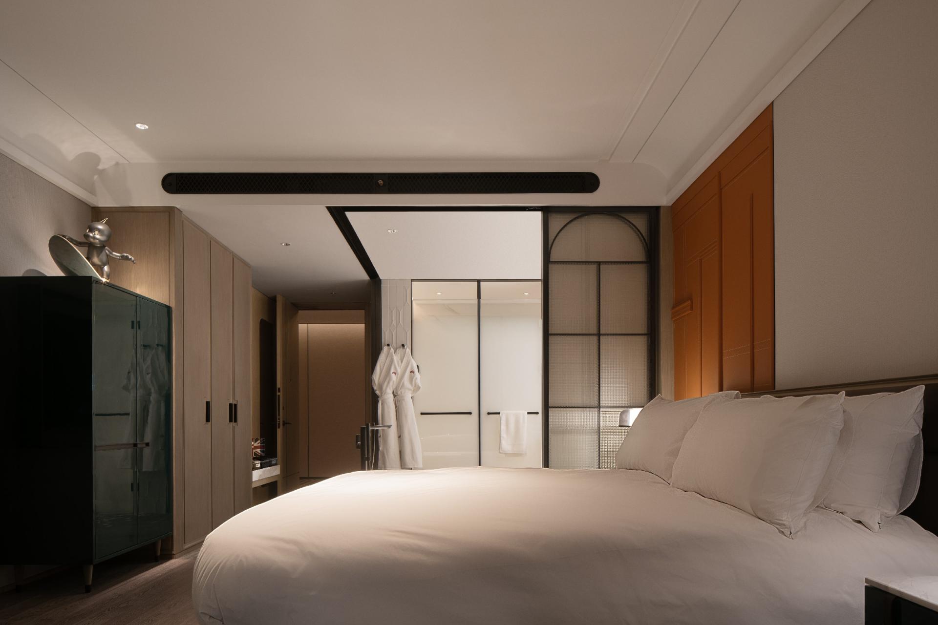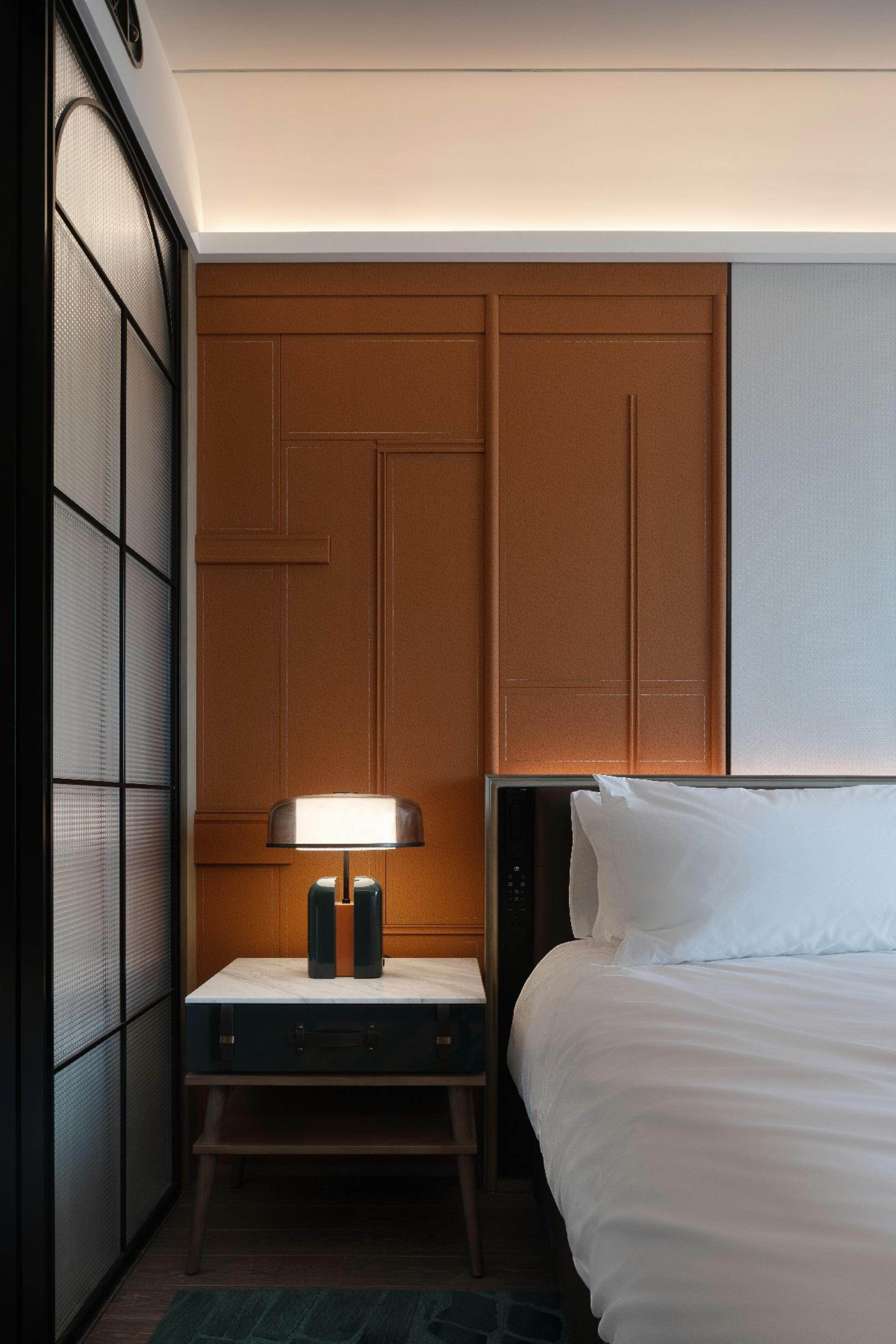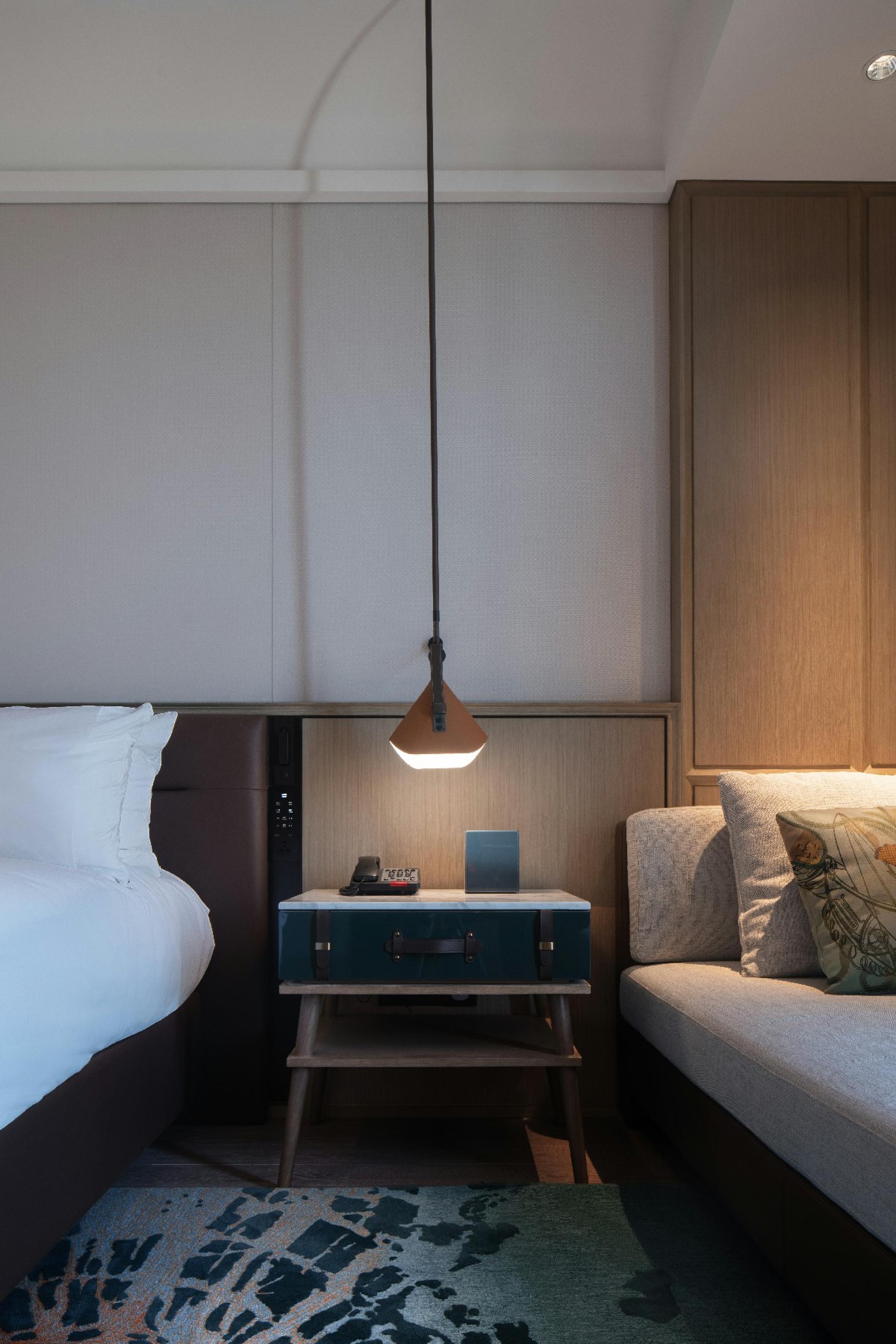 From the perspective of travelers, the design team uses film records to present traces of Qingdao's streets, docks, old stations and other cities in each space of the hotel. For example, in the lobby area of the hotel, Qingdao's most important dock culture is used and named "Urban Adventurers". The elements of dock culture, such as the station, the crowd, and the singer, are reflected through the highly saturated colors.