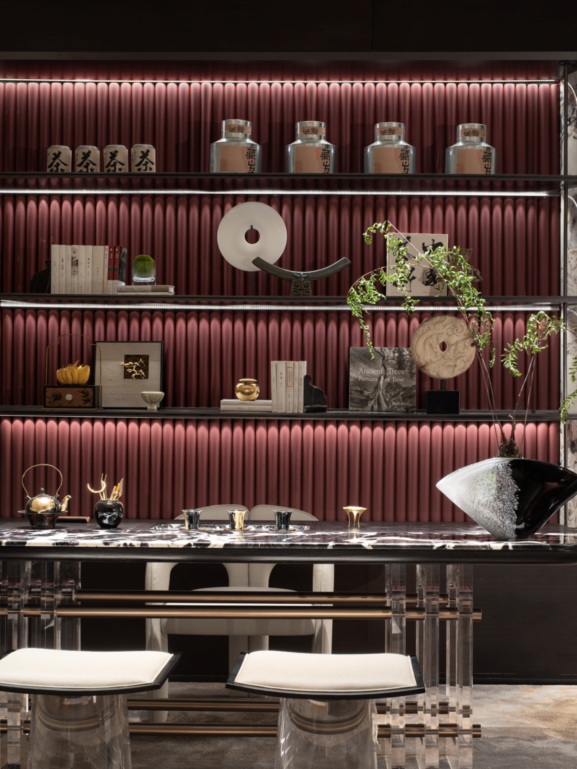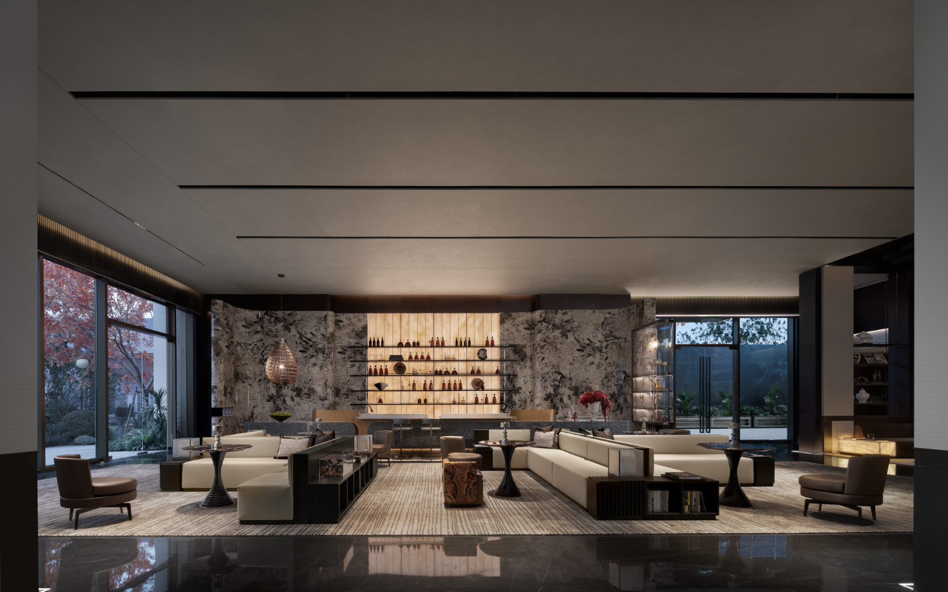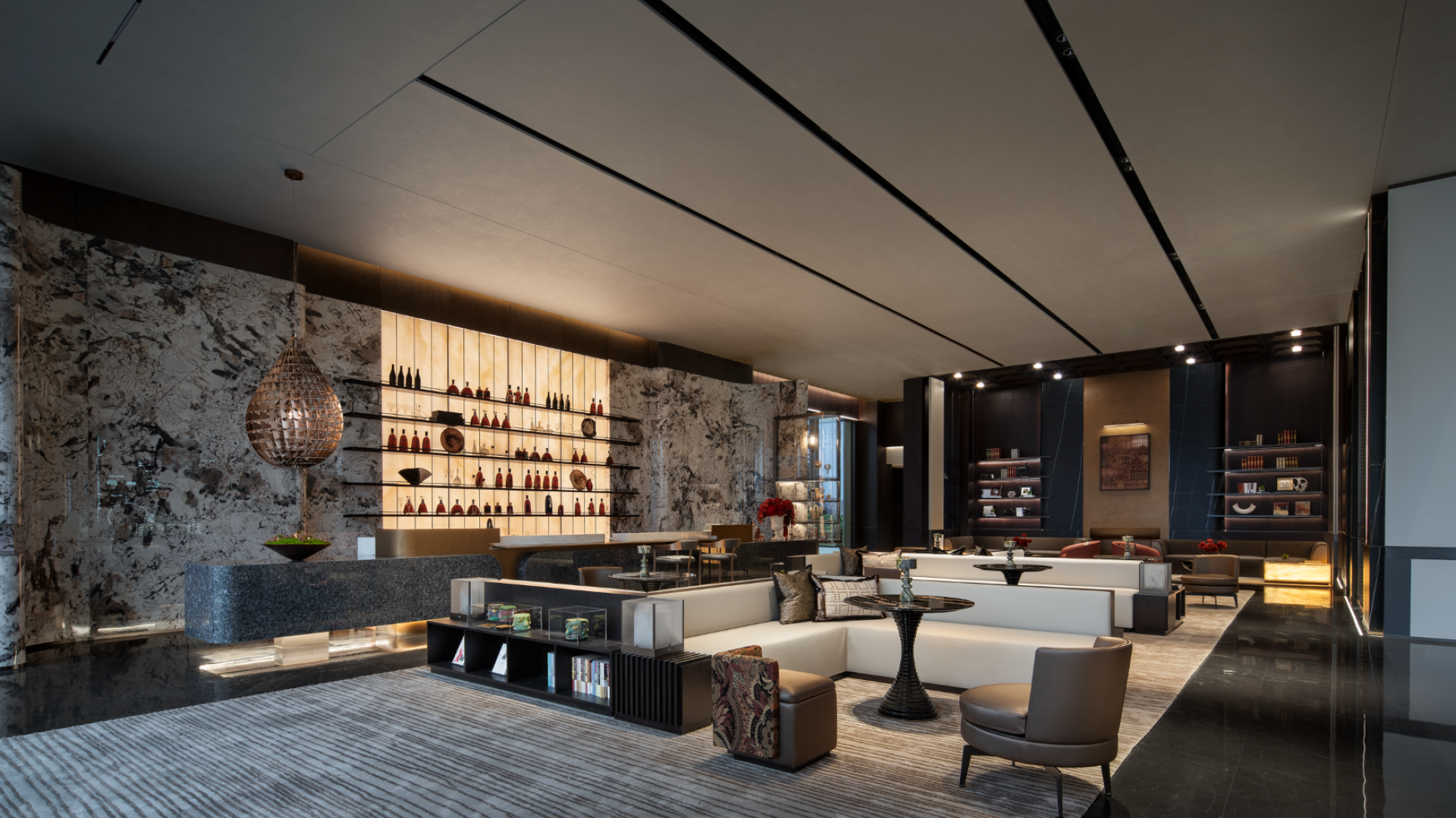 CSCEC STAR OF JINGCHENG draws inspiration from the century-old urban genes of Deyang, absorbing the concept of coexistence with nature and history. It perfectly blends traditional and modern design. The building's exterior takes "flowing stars" as its design theme, combining streamlined glass curtain walls with metal materials and dynamic light and shadow installations. At night, the building resembles a brilliant starry river in the city, shining brightly. The interior space mainly features light gold and gray tones, ingeniously integrating local cultural elements of Deyang, such as the abstract art wall of Sanxingdui patterns, creating an atmosphere of high-end elegance. It not only showcases the weight of history but also highlights the refinement of modern art.