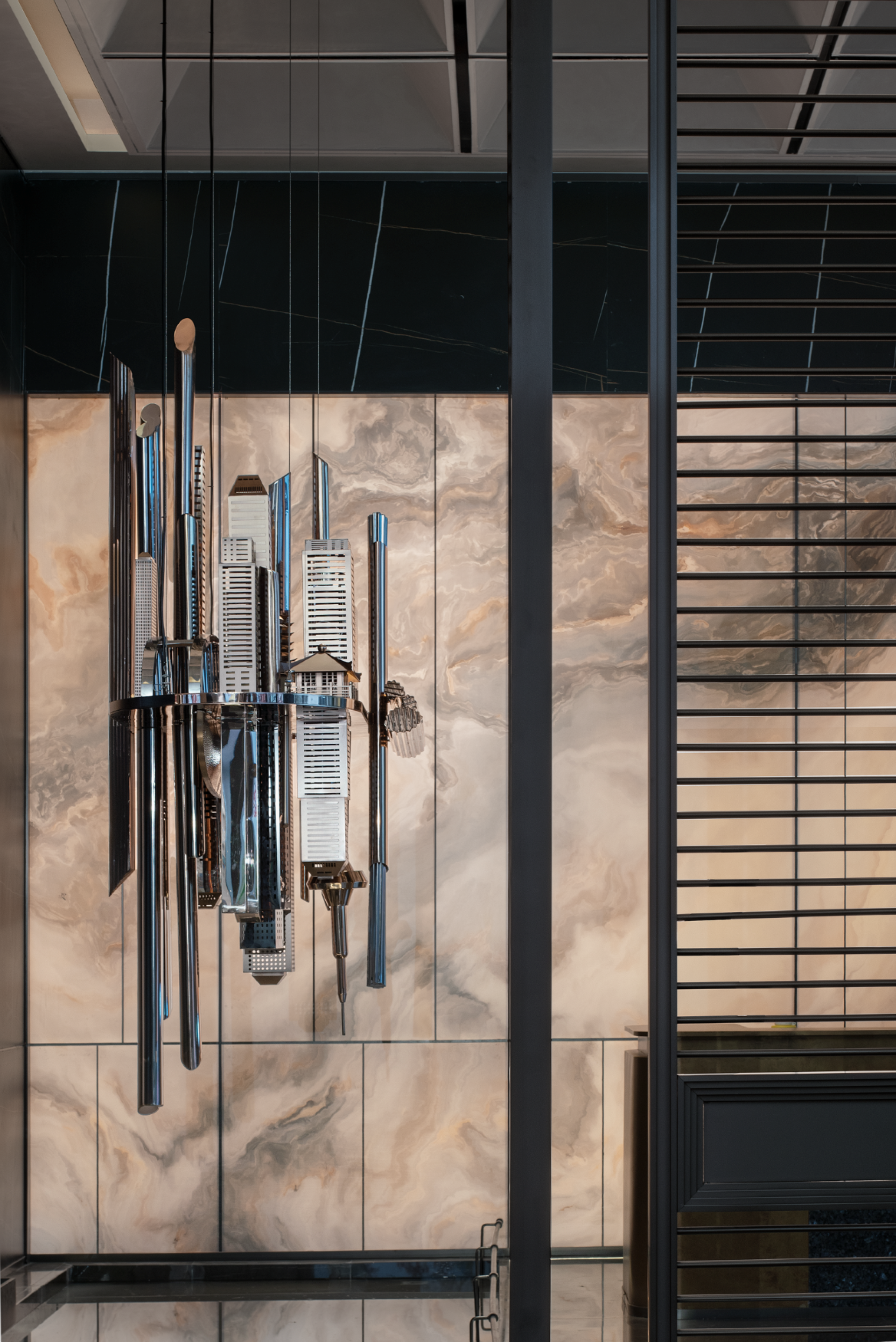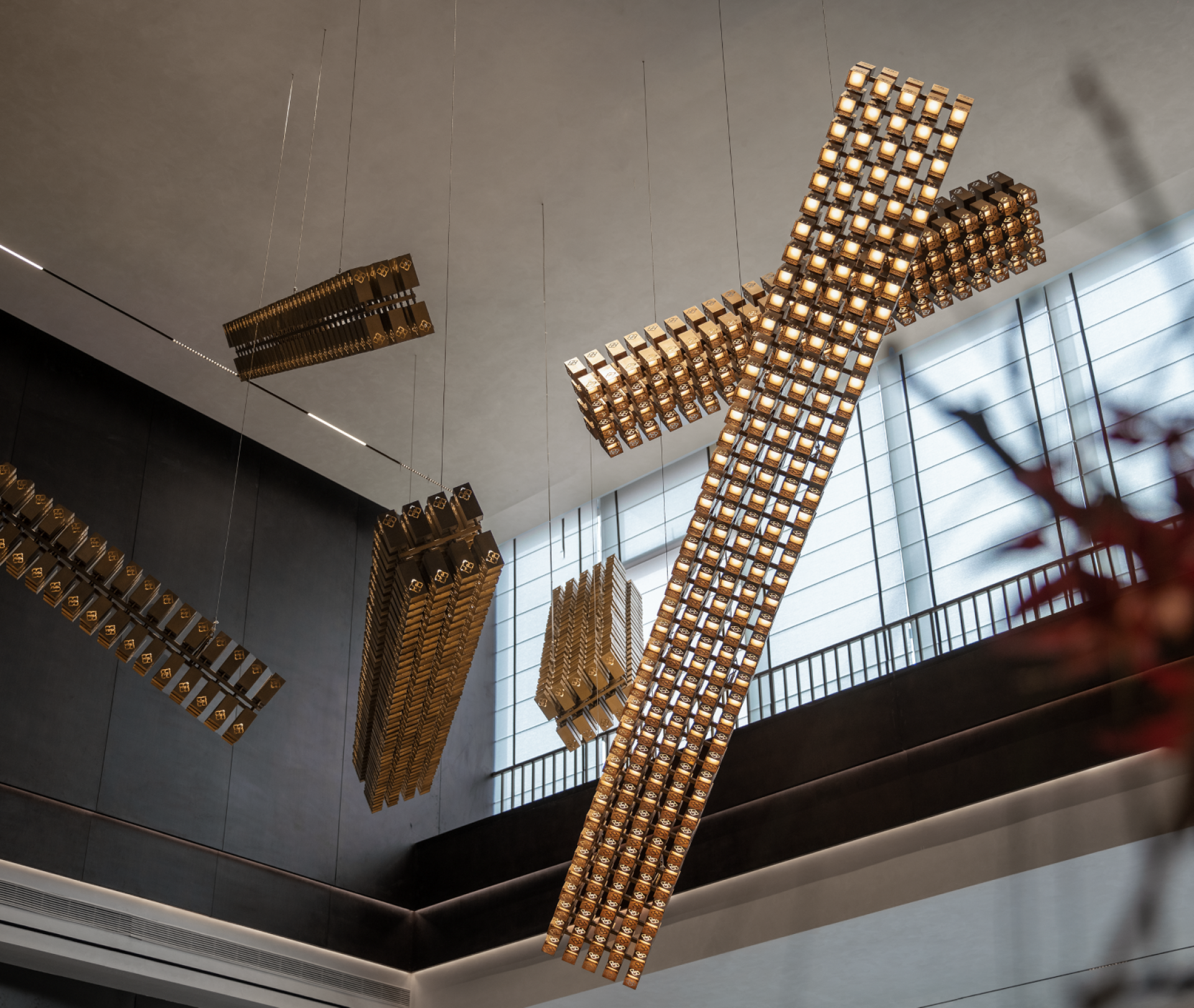 Through the deconstruction and redesign of the landmark buildings in Deyang, the project vividly showcases the charm of the city's culture with a unique artistic form and profound cultural connotation. The historical context and the city's rebirth collide and blend here, playing a symphony that is unique to Jingcheng. The main art piece is designed with a collision of various materials such as brushed metal, mirror-finished metal, and traditional forged copper, creating an electrically operated lifting device with a strong visual impact. The motor is ingeniously hidden inside the sculpture, and dynamic effects are achieved through precise programming. To ensure smooth lifting and operation of the sculpture, the team conducted repeated experiments and optimizations in aspects such as motor selection, noise control, operational stability, and lifting path. Eventually, the motor was perfectly integrated into the overall design of the sculpture, saving space and making the device as light and elegant as a suspended artwork, demonstrating a perfect blend of technology and art.
