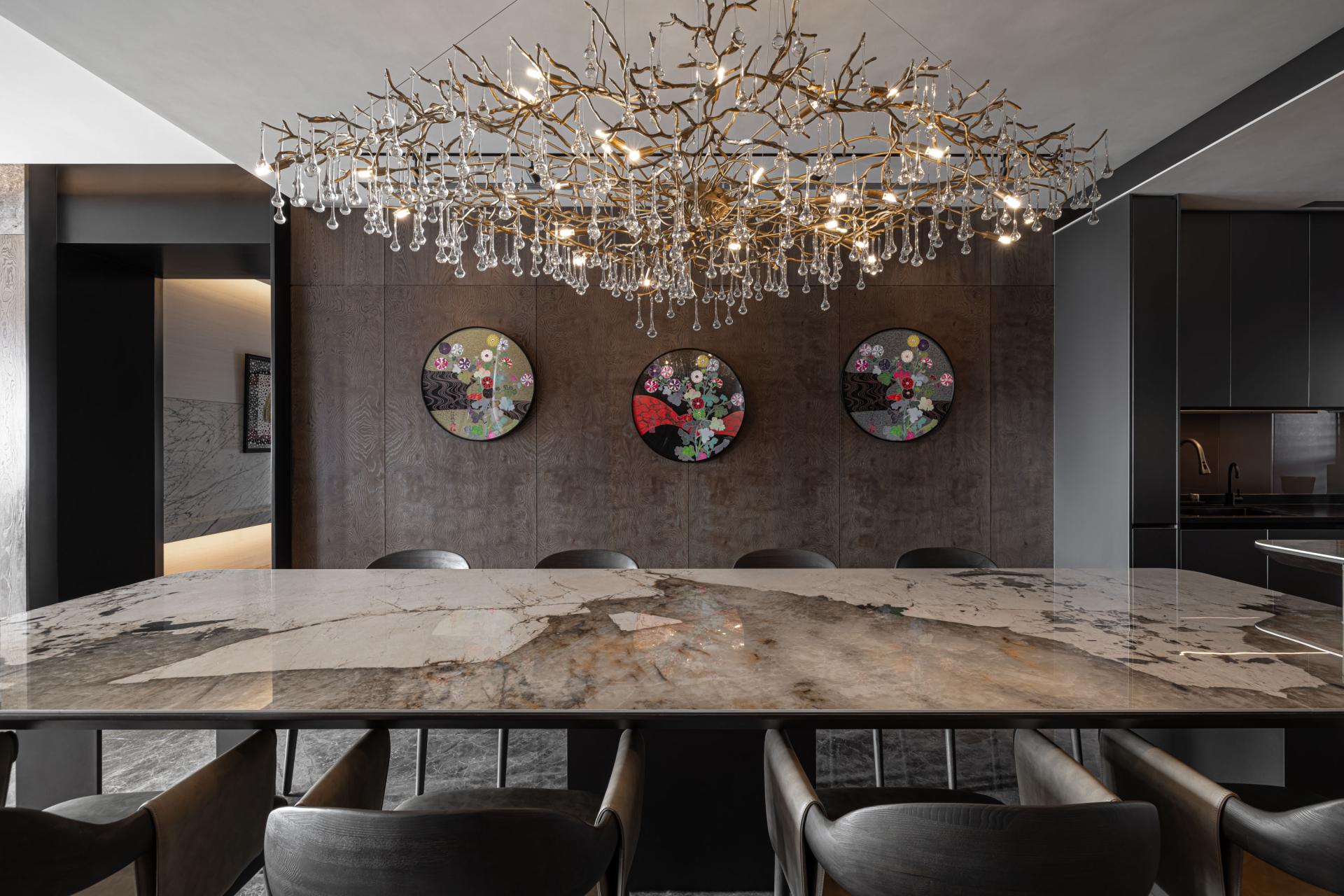 This project centres around our view on spatial Montage which allows viewers to construct his/her imagination of the property owner's character while experiencing the space, and we focus on deconstructing and recombining characteristics of spatial elements from the pattern of our client's art and furniture collection. We aim to create an unexpected balance of spatial experience by combining different finishes on materials and architectural elements. From contemporary to classic, the elements reshape the spatial scene and lead to an immersive balance reflecting the essence of the space that we love and believe.
