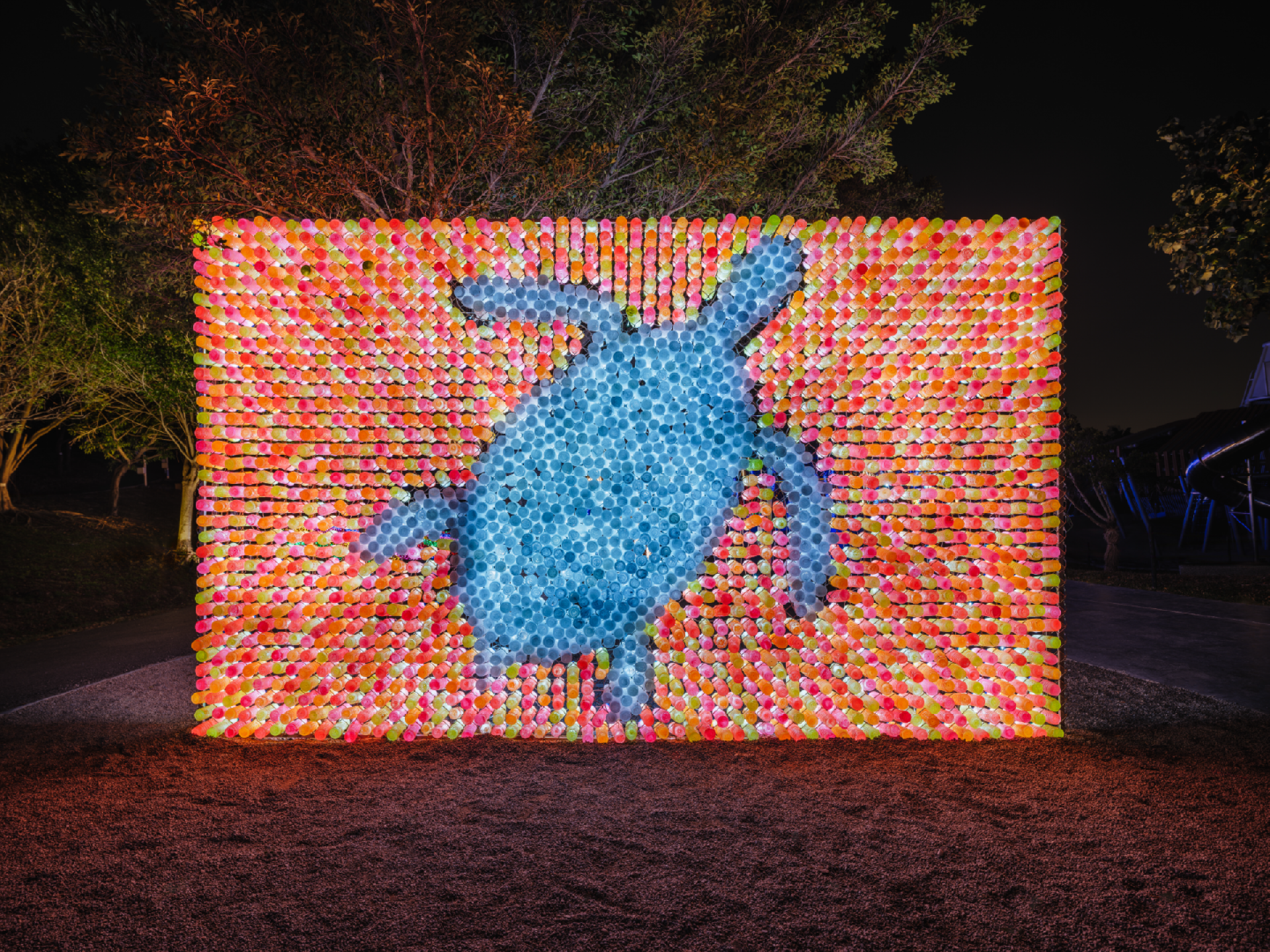 燈區除了傳統花燈外,更結合回收寶特瓶作裝置藝術燈組,傳達著永續環保理念