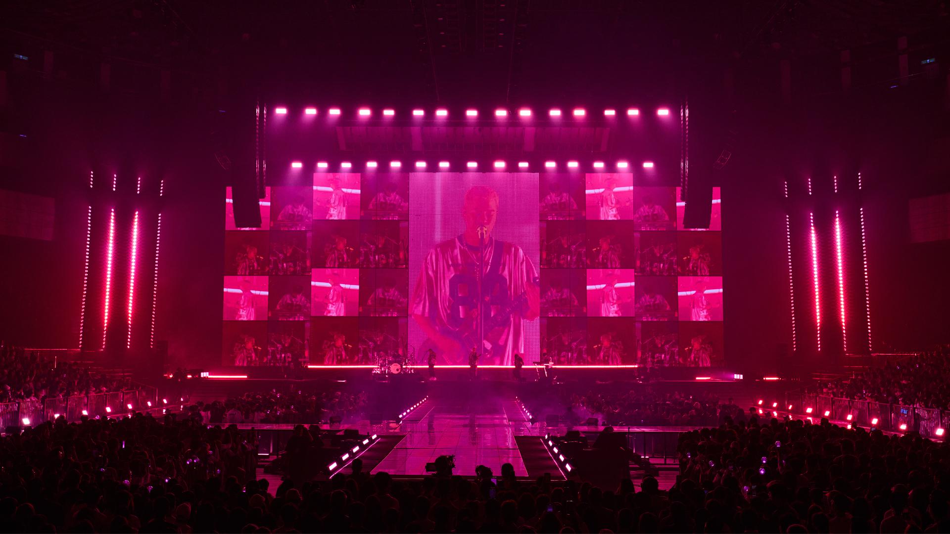 Nick Chou’s concert stage design seamlessly blends fashion elements and minimalist concepts. At the center of the stage stands a 15-meter-tall silver display, accompanied by an elevating light structure that extends throughout the audience area. The lighting design revolves around fashion and minimalism, using clean light and shadow layering to create a stylish atmosphere. By integrating monochrome lighting with the music style, the concert delivers a striking contrast of light and dark, enhancing the multi-dimensional visual experience.